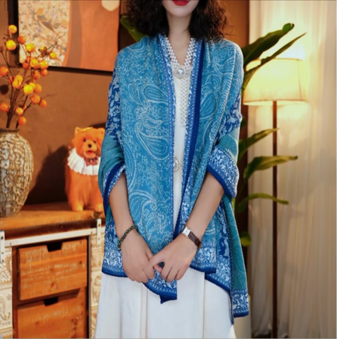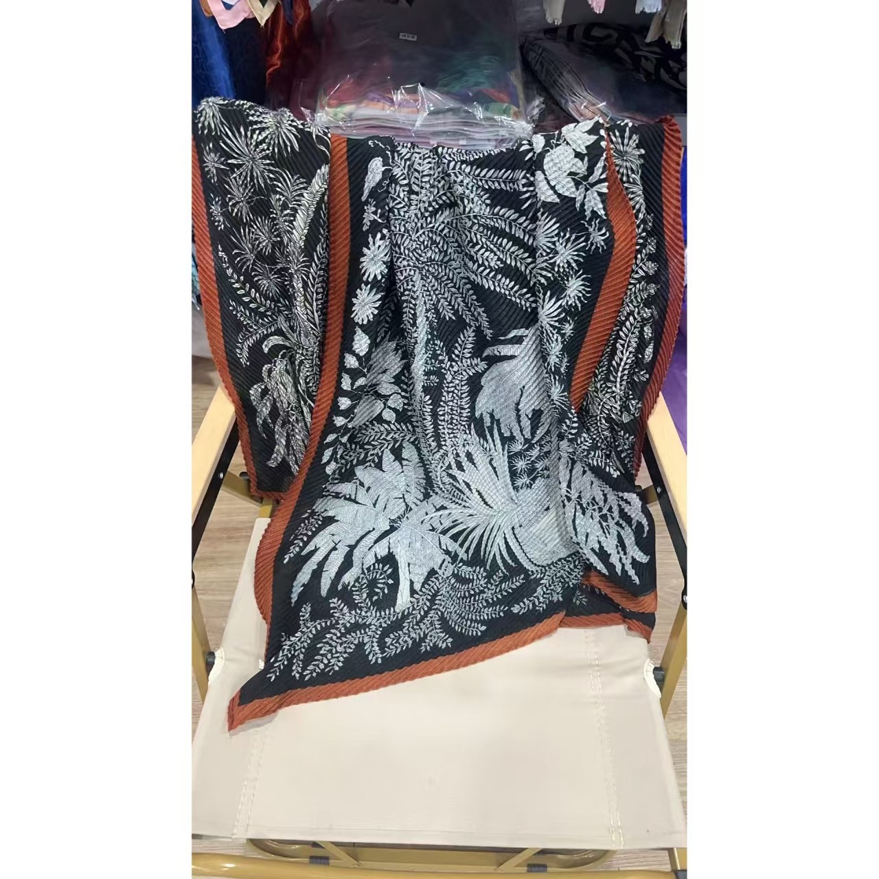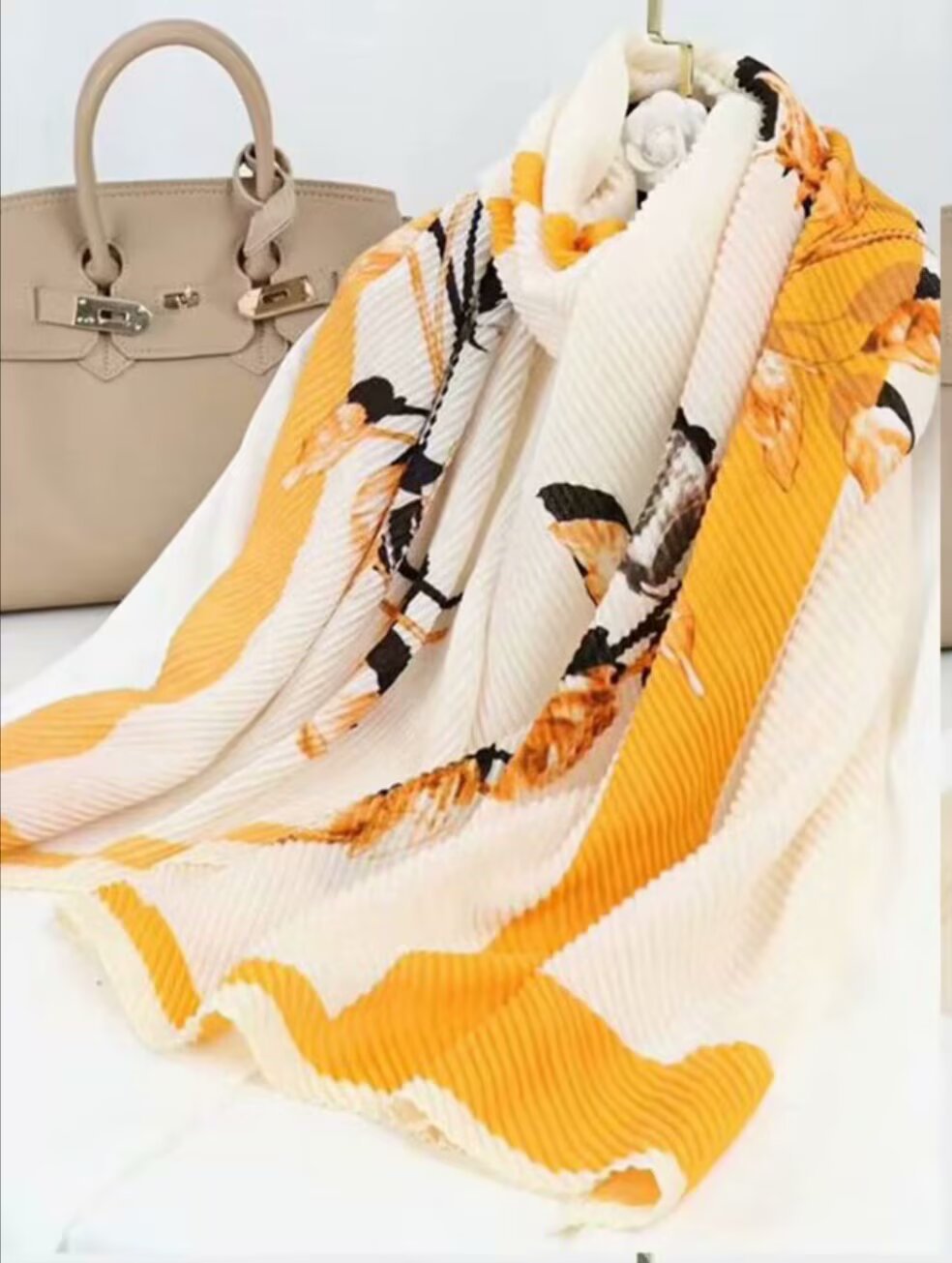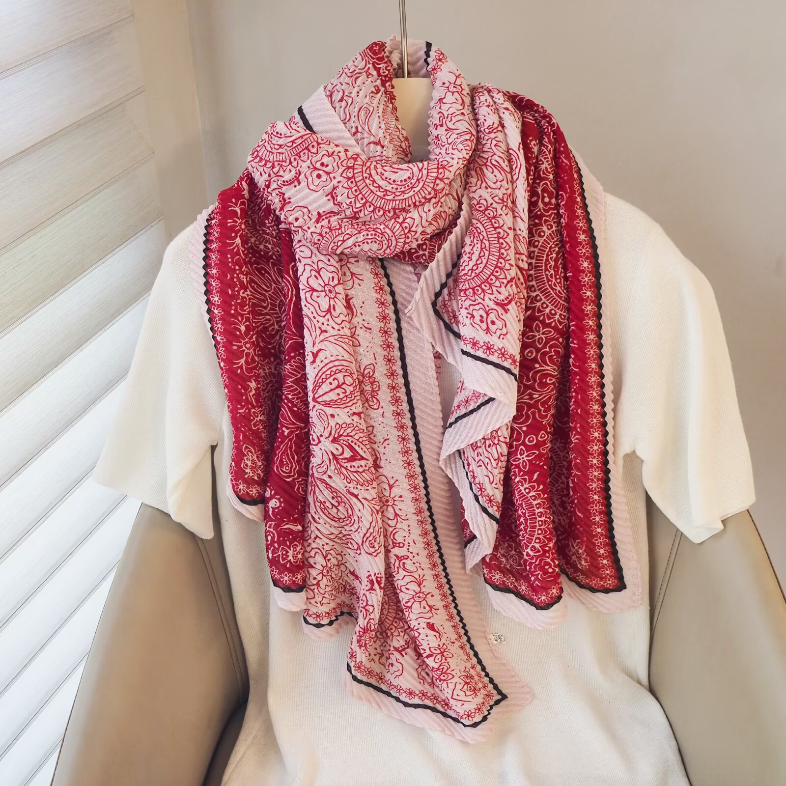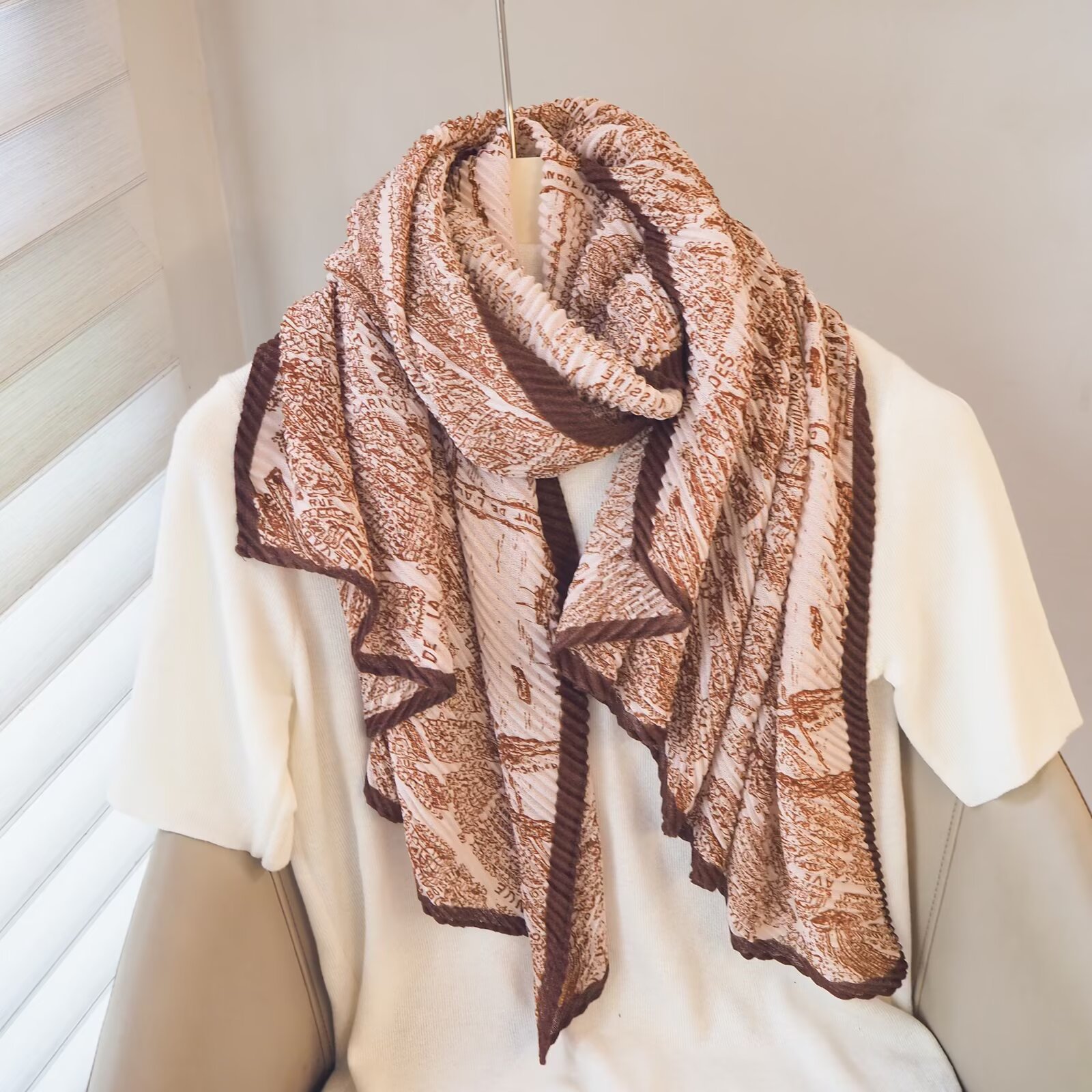 인터넷 연예인 새 스타일 구겨진 스카프와 리넨 긴 스카프 여성 한국 스타일 유행 서양식 대형 목도리 이중 목적 인쇄 주름 스카프스토어 가기