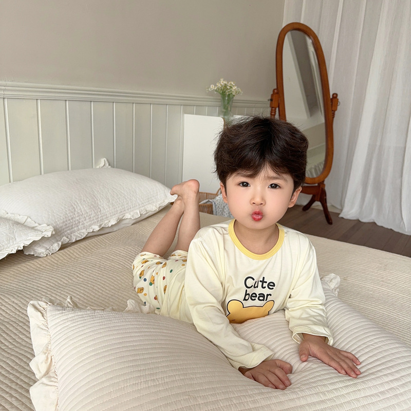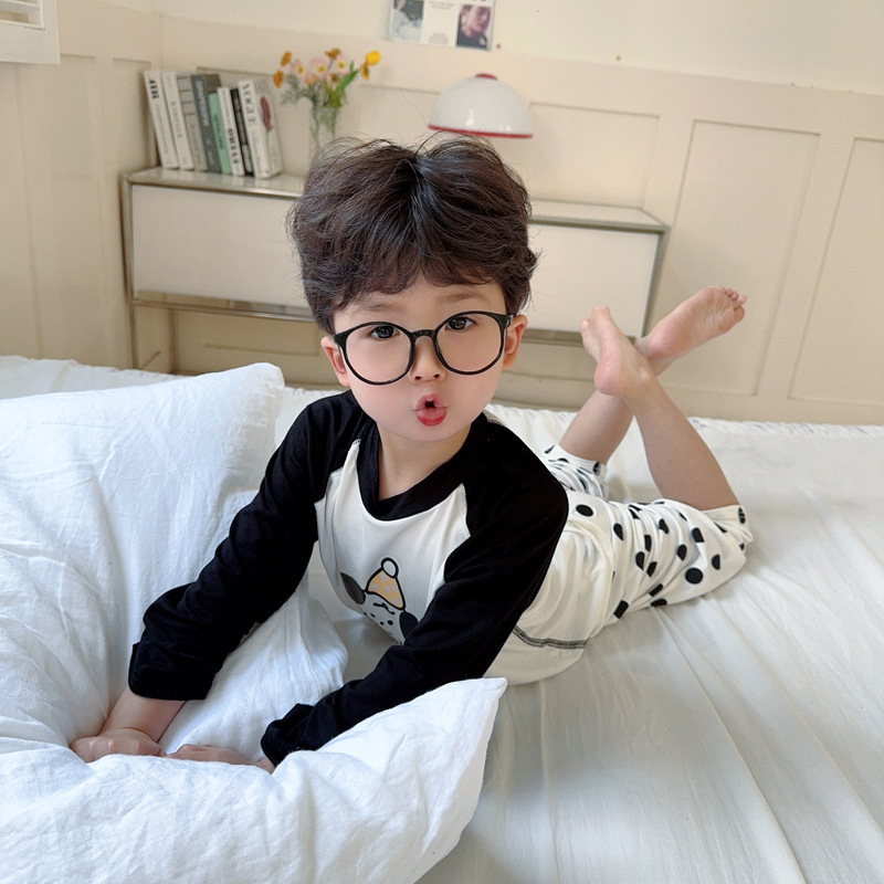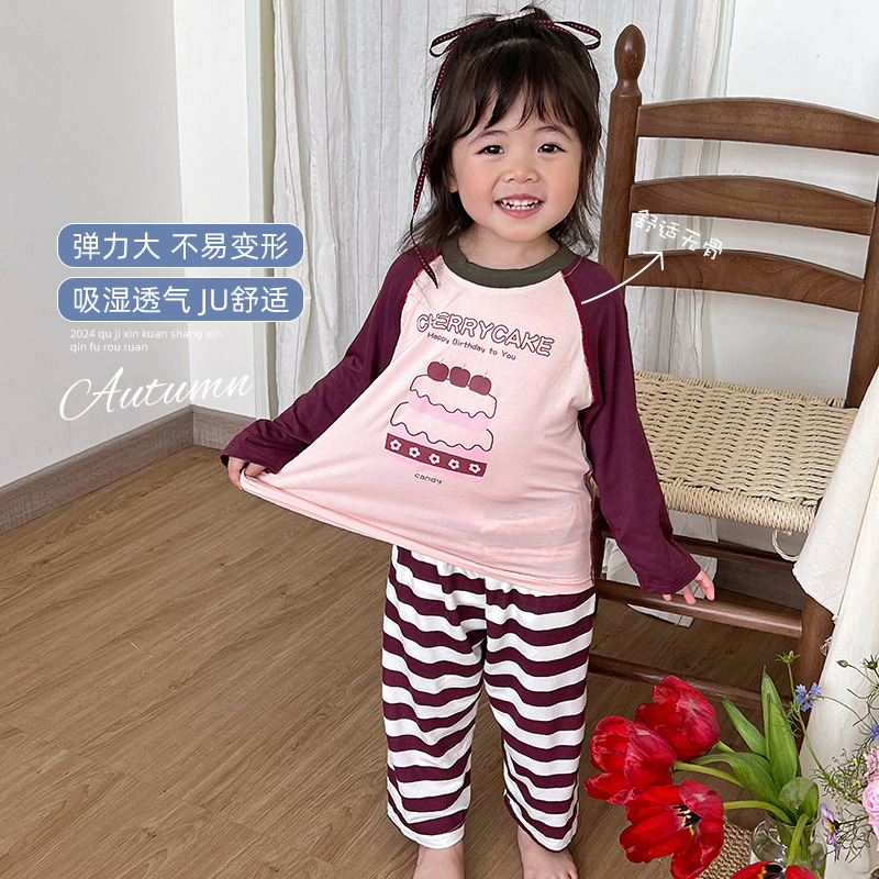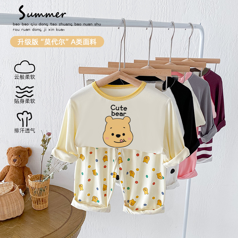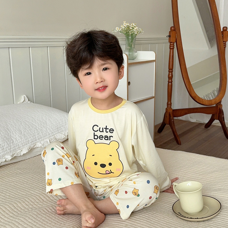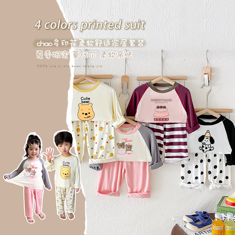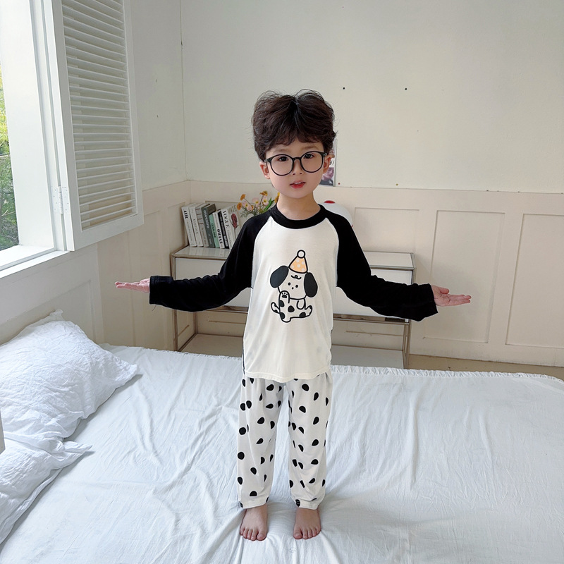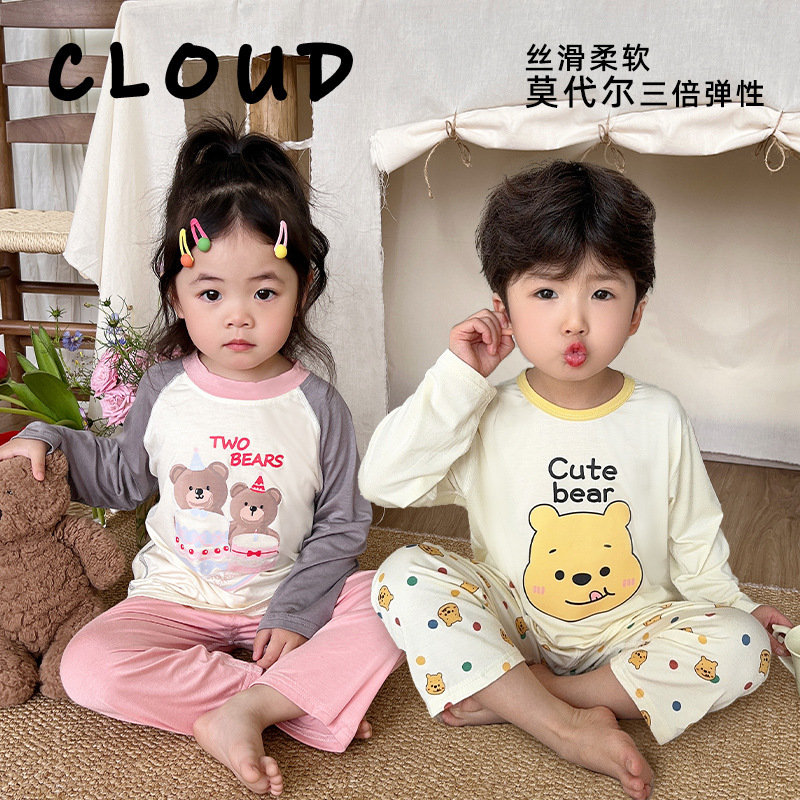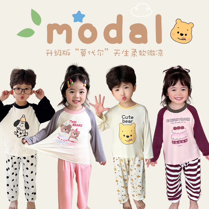 소년 소녀를위한 봄 가을 긴 소매 바지 모달 얇은 어린이 잠옷 에어컨 홈 세트