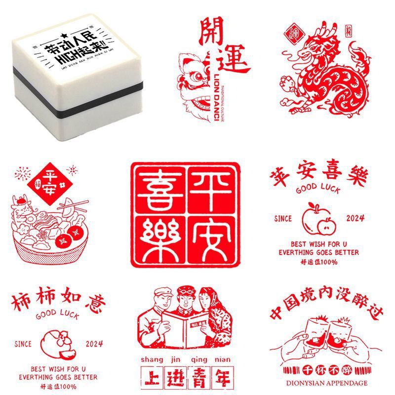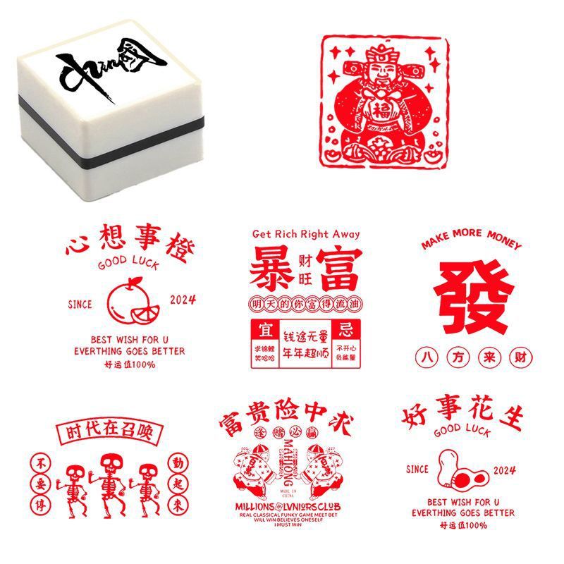 국가 조수 중국 스타일 캐릭터 씰 드래곤 년 공 Xi Fa Cai 향수 리치 마작 운세 패턴 직사각형 씰스토어 가기