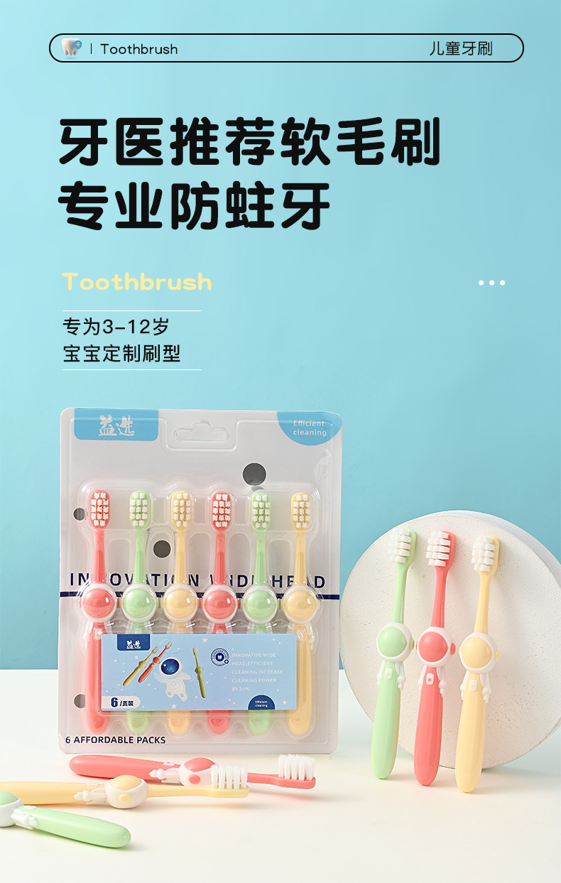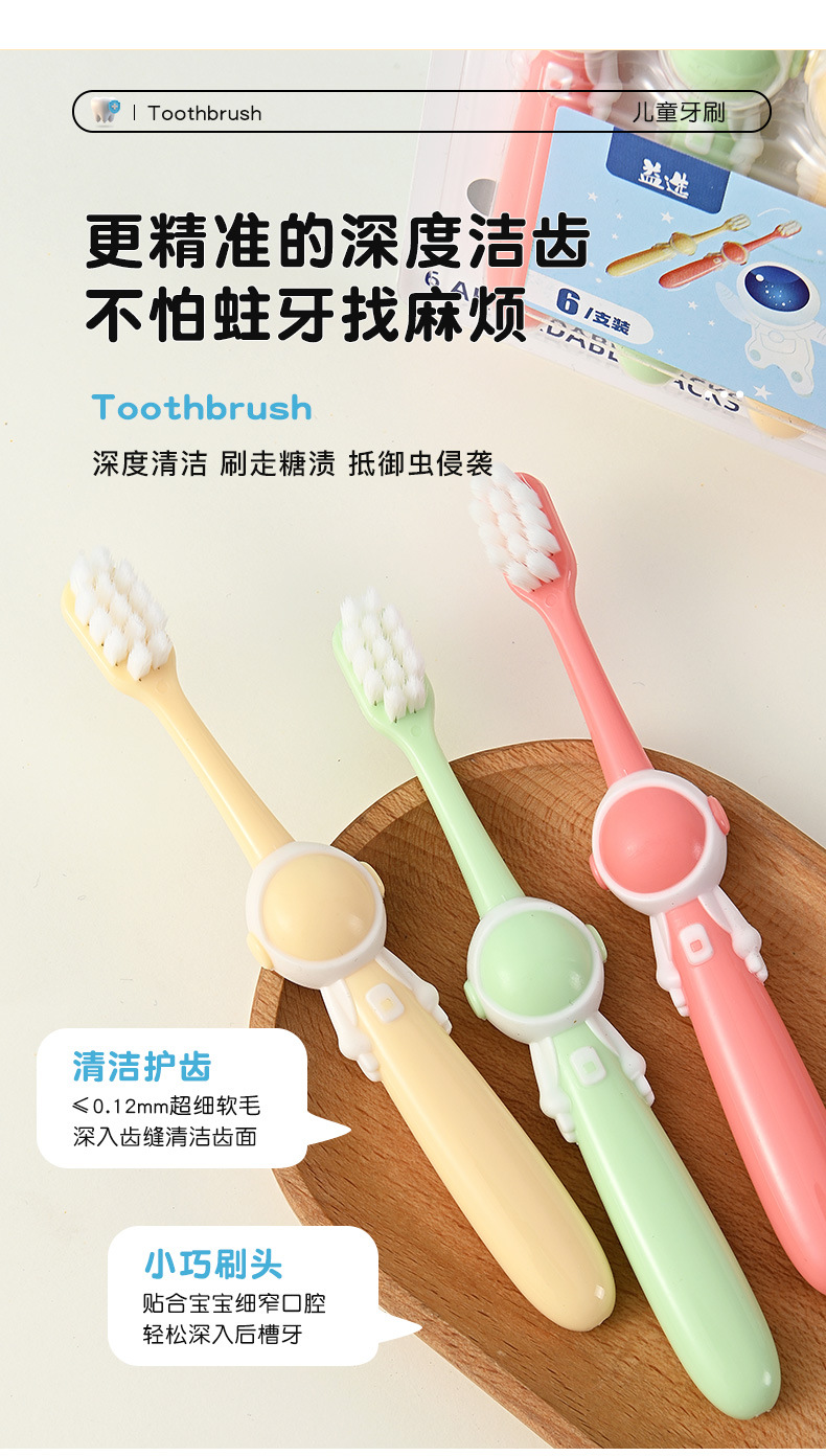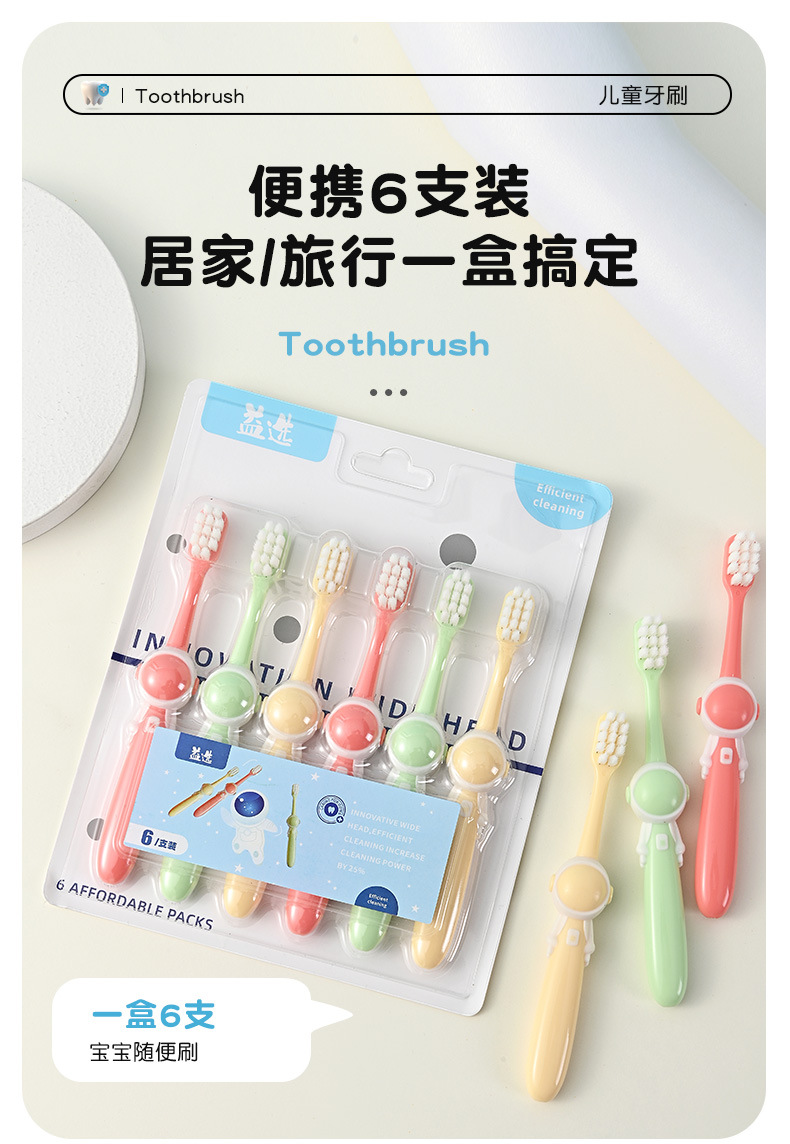 우주 비행사 어린이 부드러운 머리 칫솔 6 팩 3-6-12 세 아기 가정용 칫솔 도매 이우 매일스토어 가기