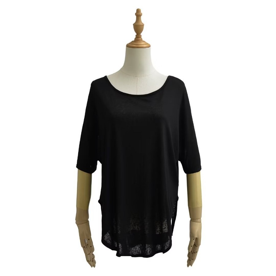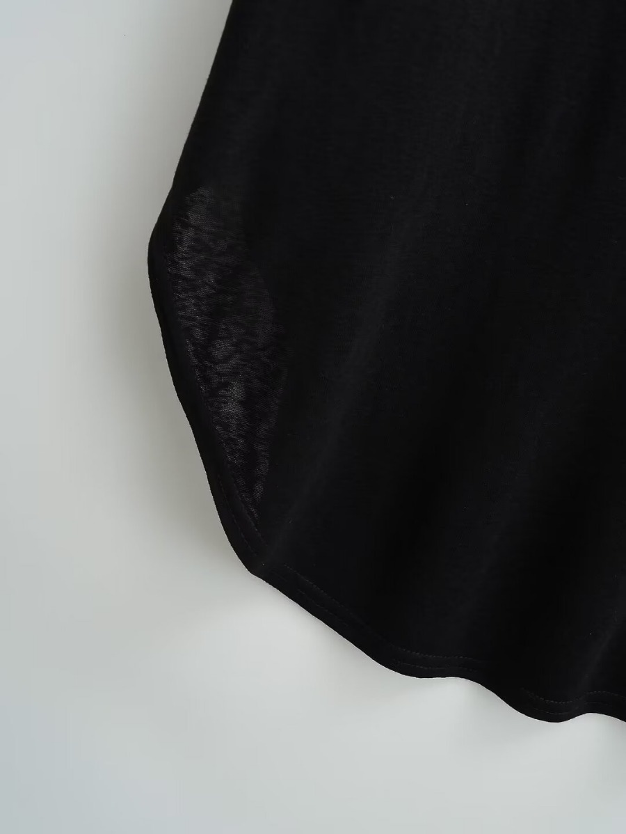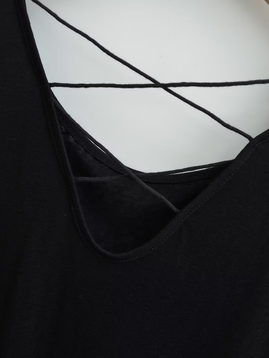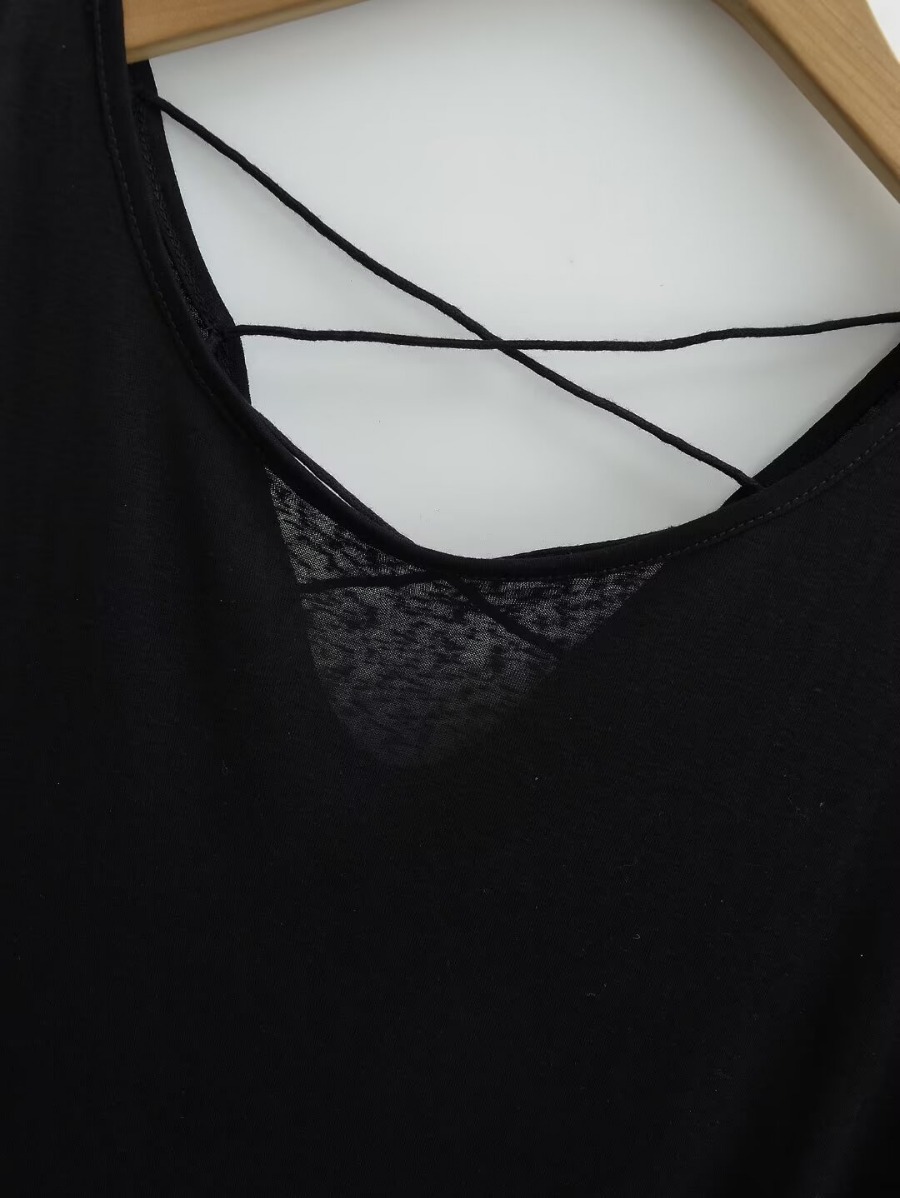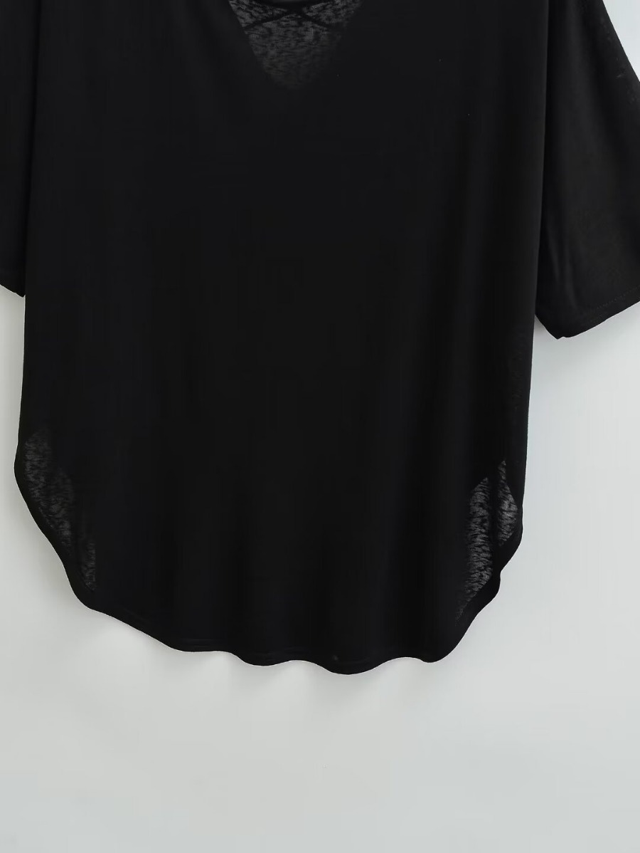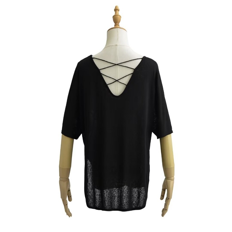 유럽과 미국 스타일의 백 크로스 로프 루즈 커브 헴 게으른 반팔 티셔츠 여성의 2024 여름 새로운 탑