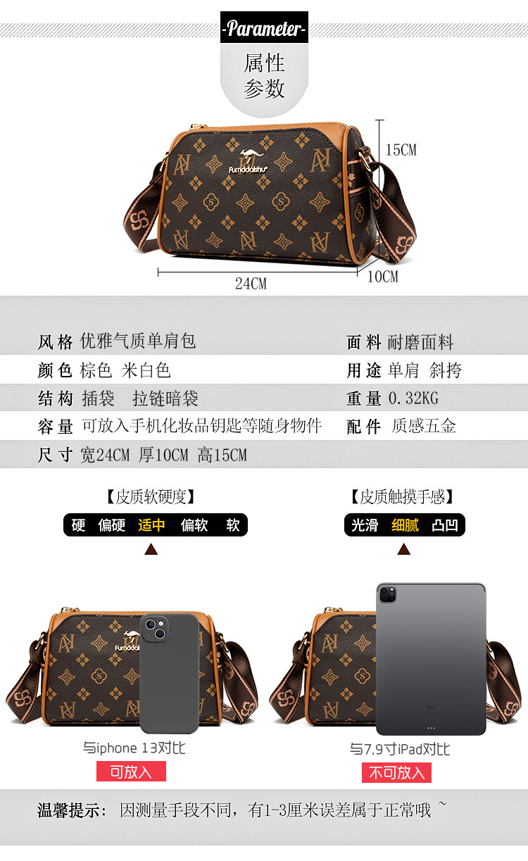 2024 여름 새로운 패션 레트로 인쇄 된 어깨 가방 클래식 간단한 유행 작은 광장 가방 우아한 크로스 바디 가방 여성용