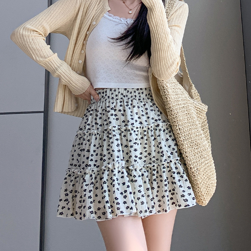 한국식 검은 꽃 치마 여자 여름 틈새 레트로 발레 스타일 스트레치 허리 A 라인 케이크 치마스토어 가기