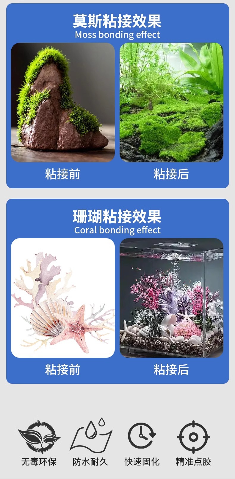 수족관 워터 스케이프 특수 강한 인스턴트 건조 접착제 물 뼈 발판 접착제 물 잔디 접착제 물고기 탱크 풍경 고착 자갈 바위 산 침몰 나무