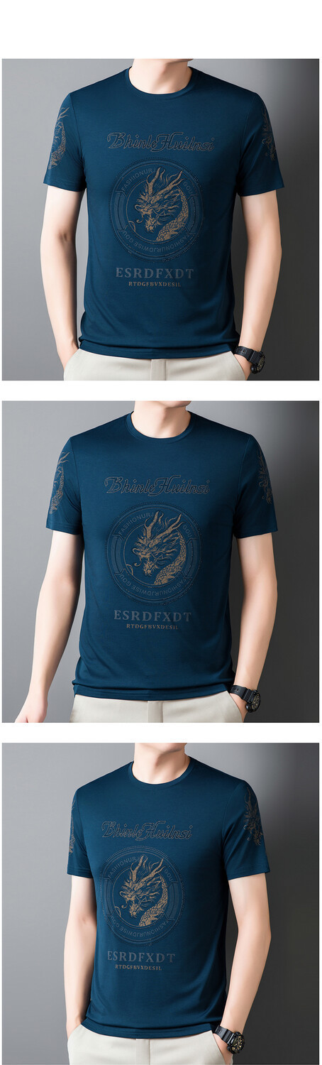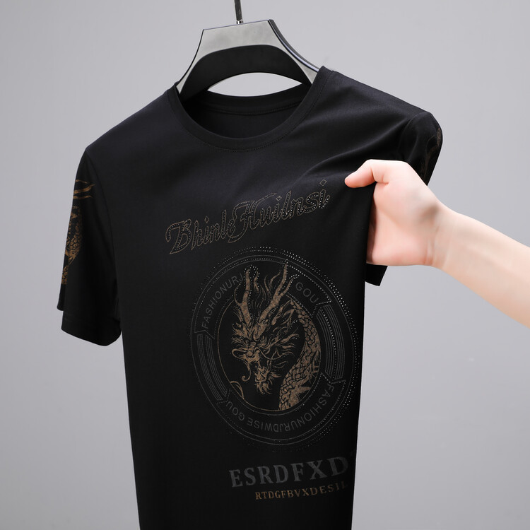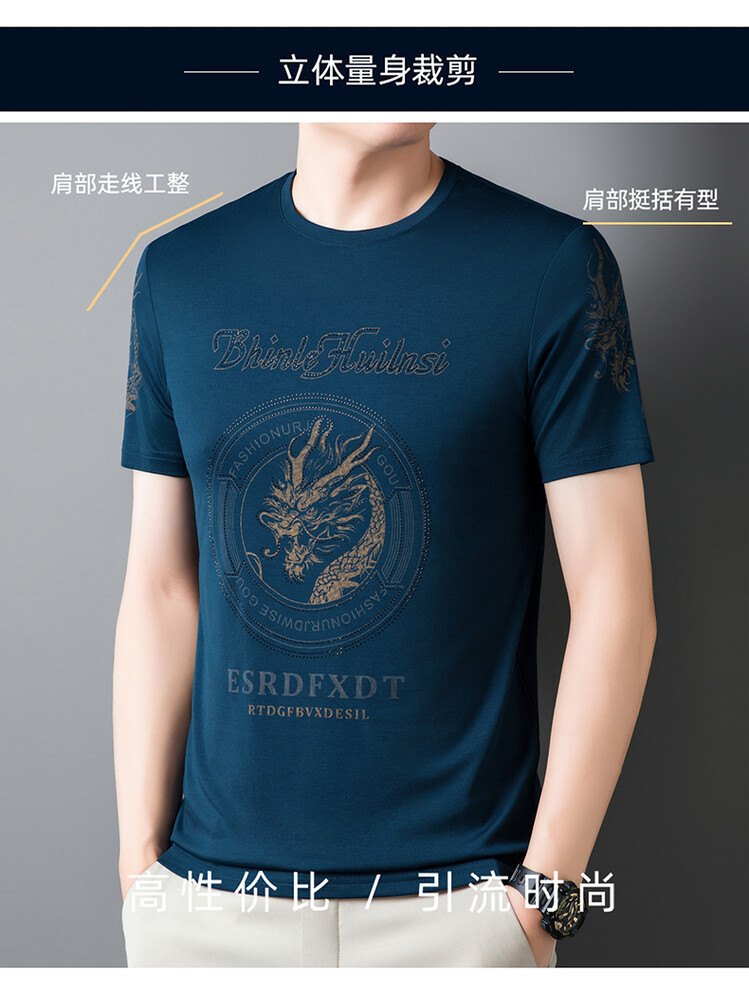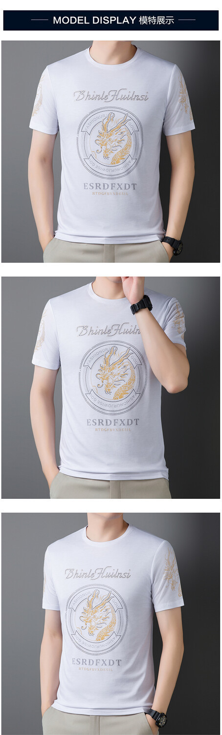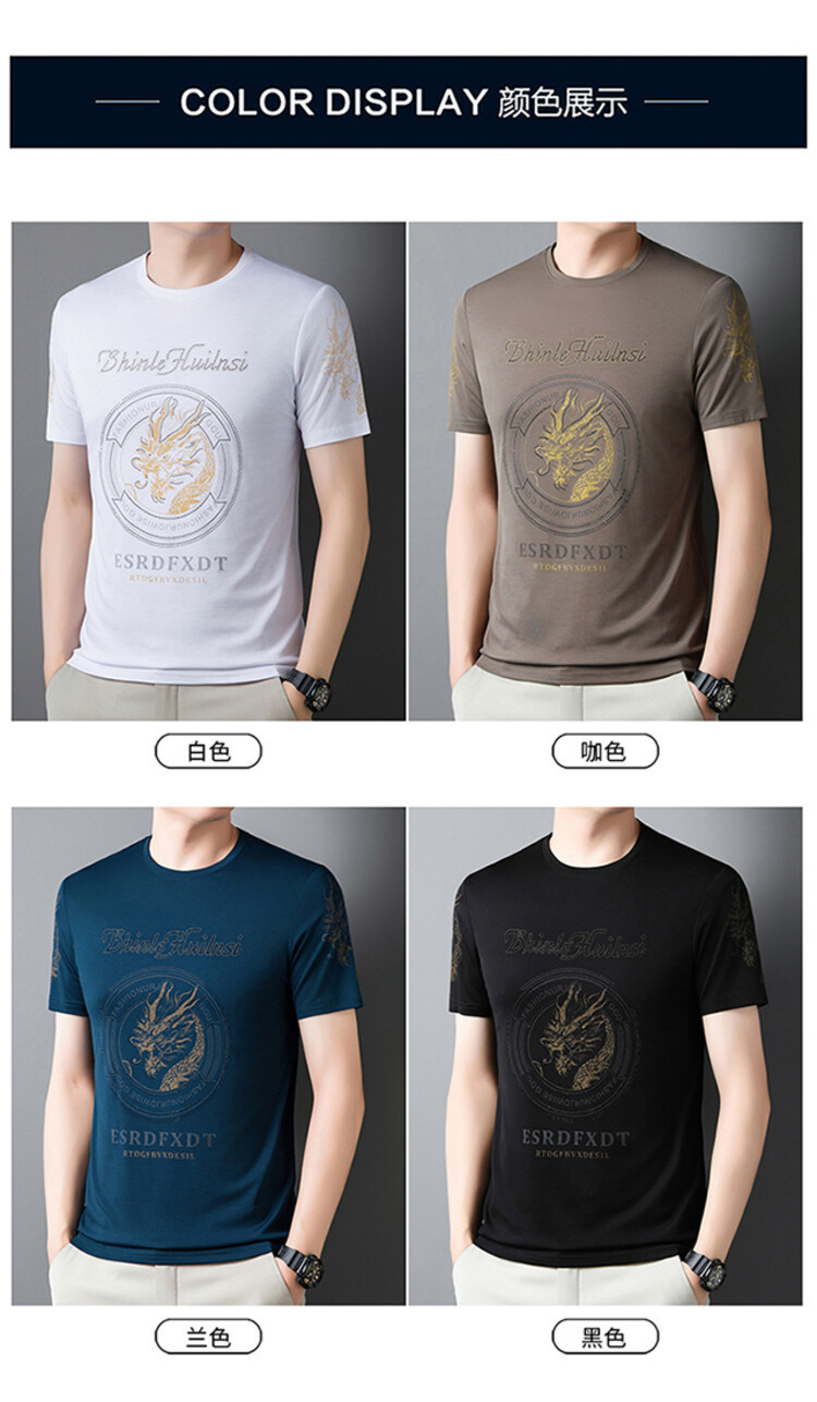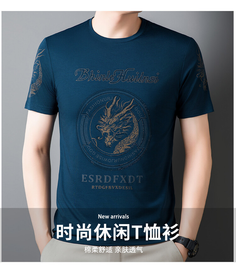 新款品质男士短袖t恤韩版圆领T修身半袖印花休闲体恤大码打底男装