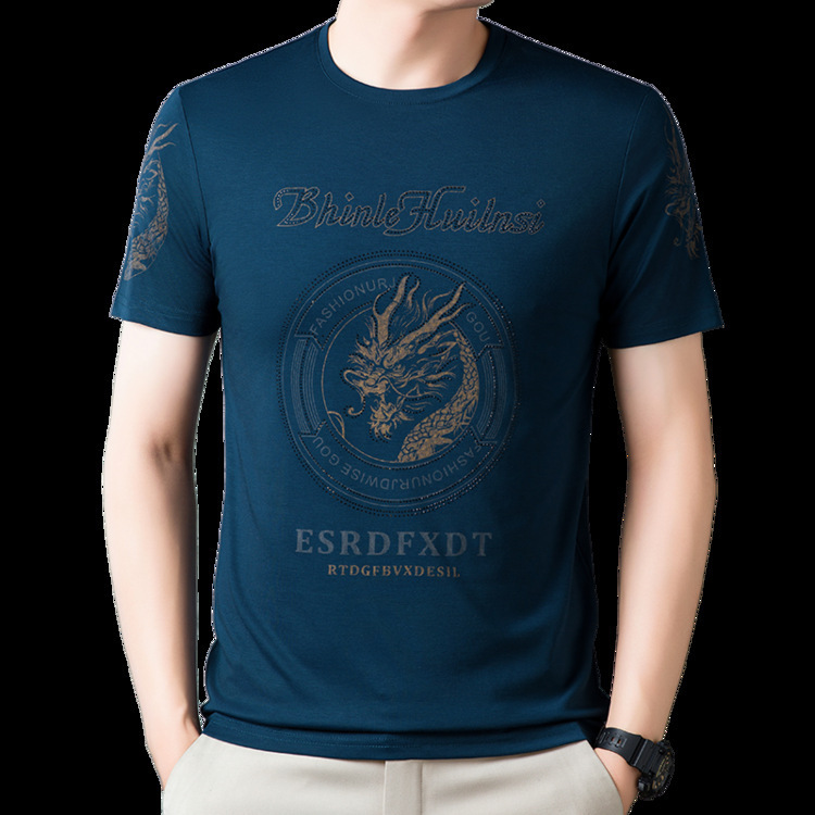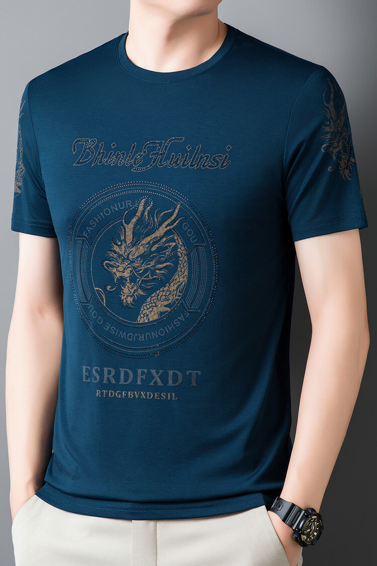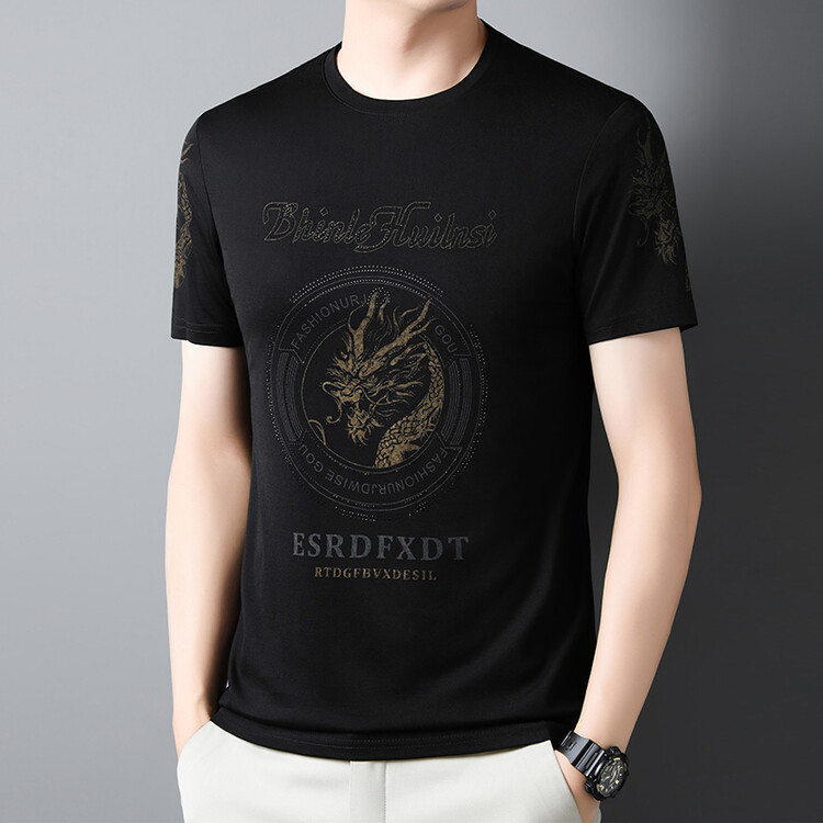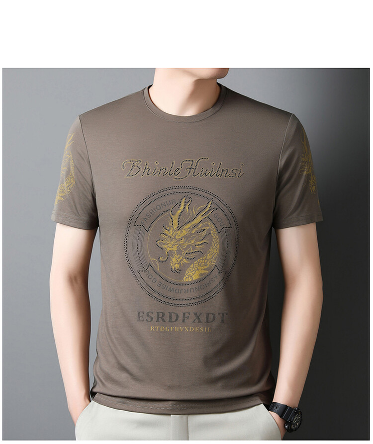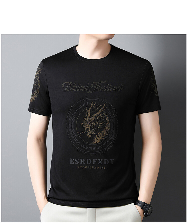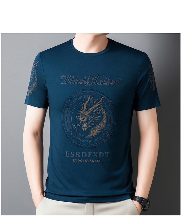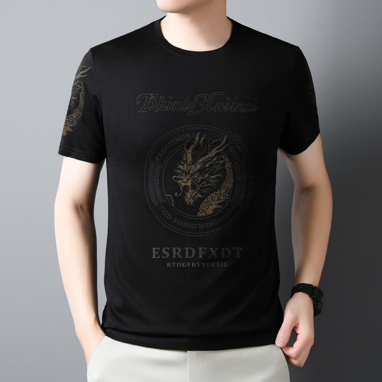 新款品质男士短袖t恤韩版圆领T修身半袖印花休闲体恤大码打底男装