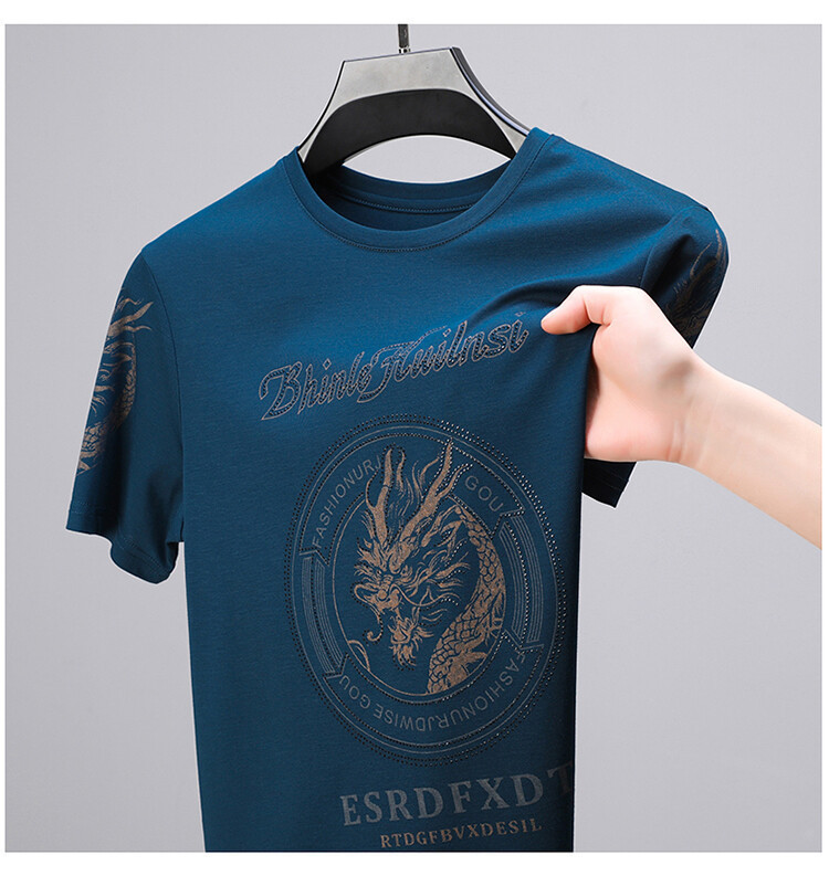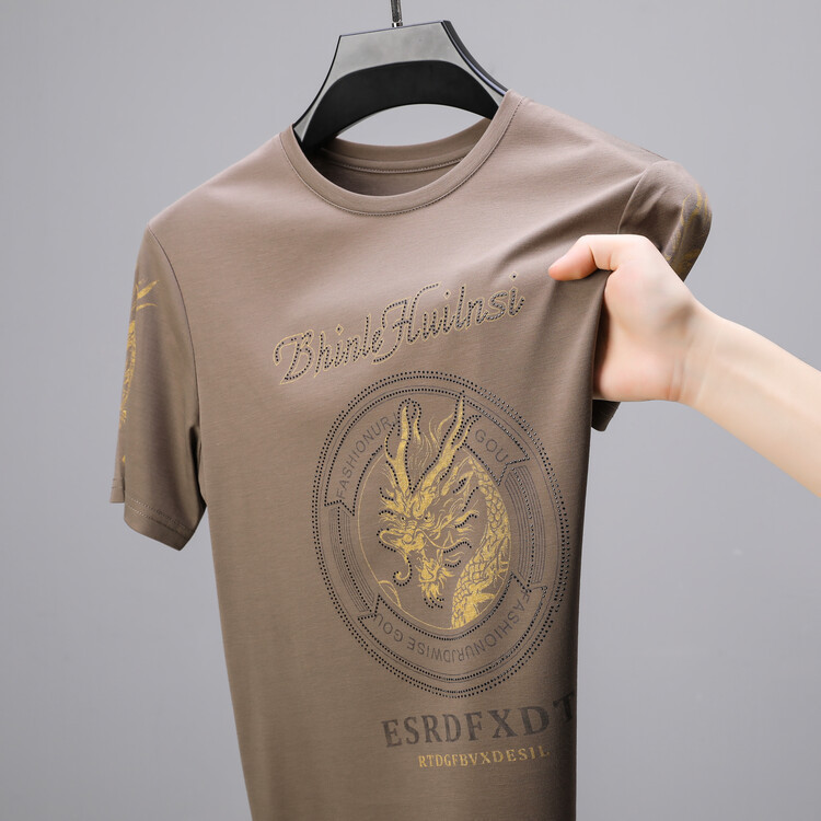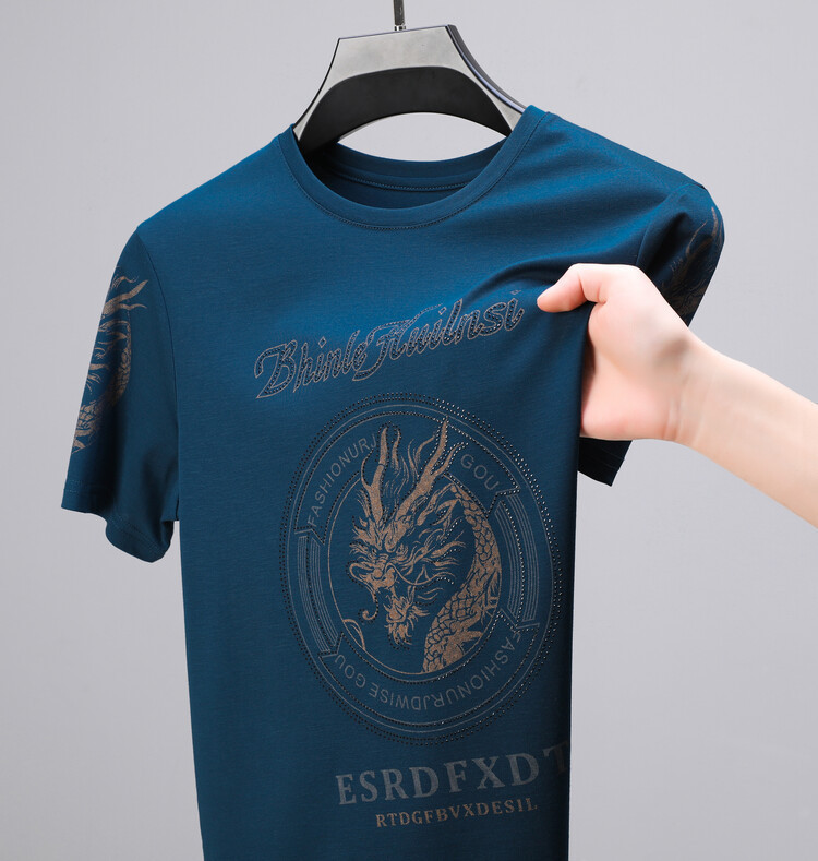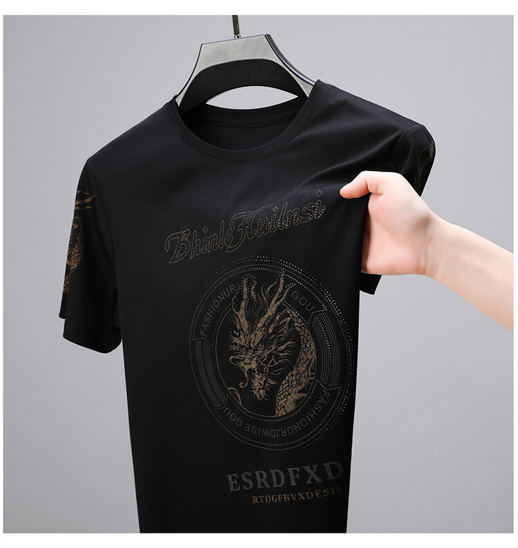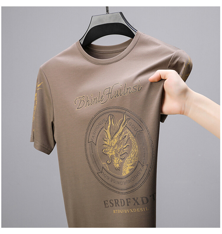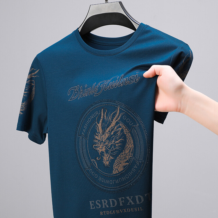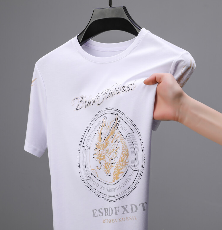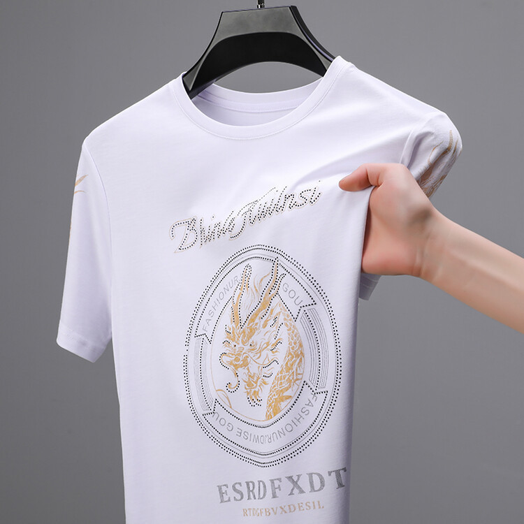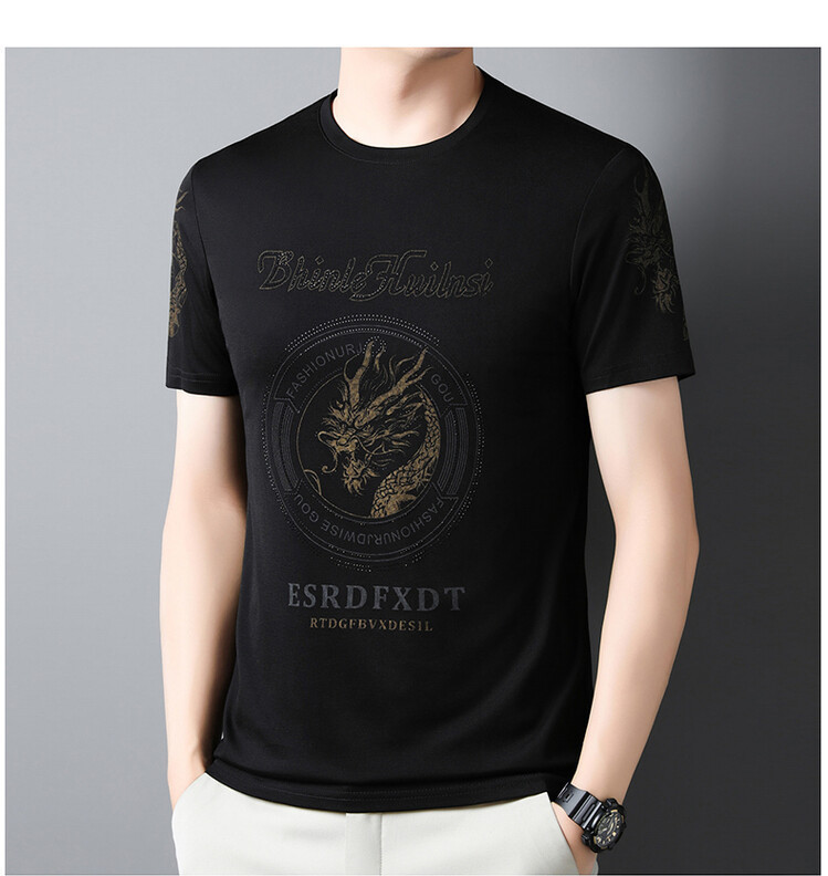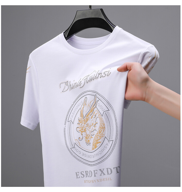 신품질 남성용 반팔 티셔츠 한국형 둥근 목 T 슬림 반소매 인쇄 캐주얼 티셔츠 대형베이스 남성복