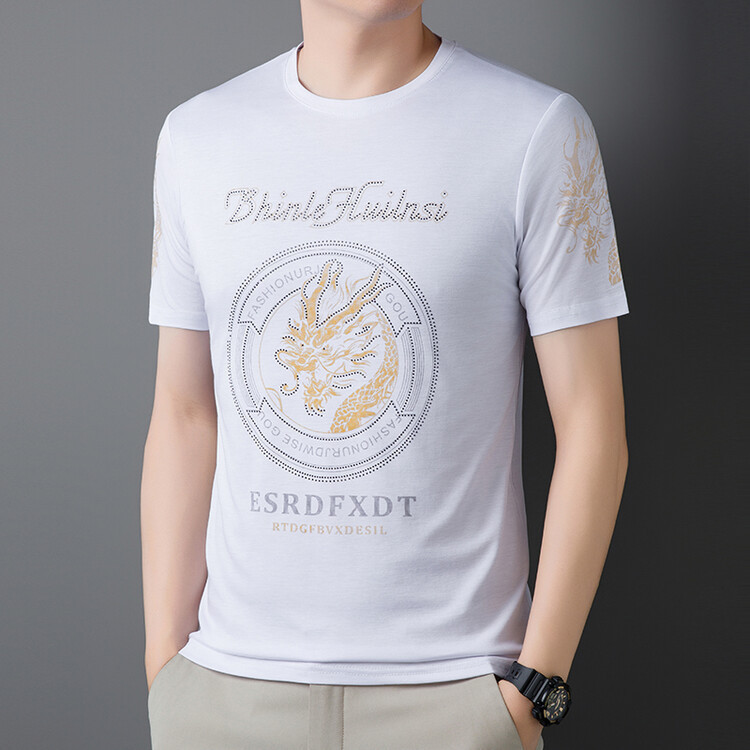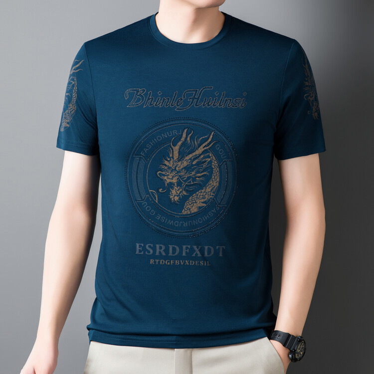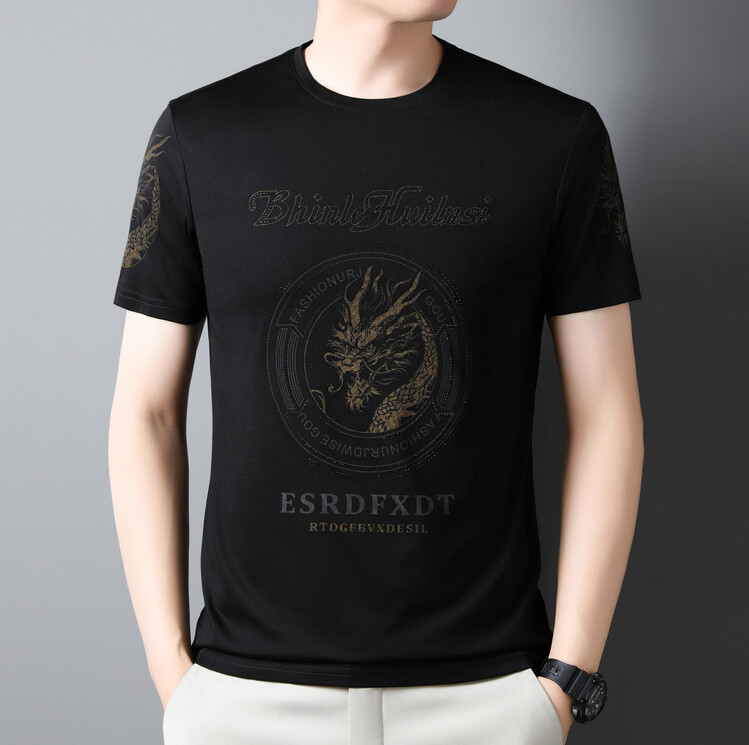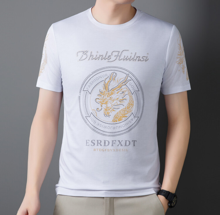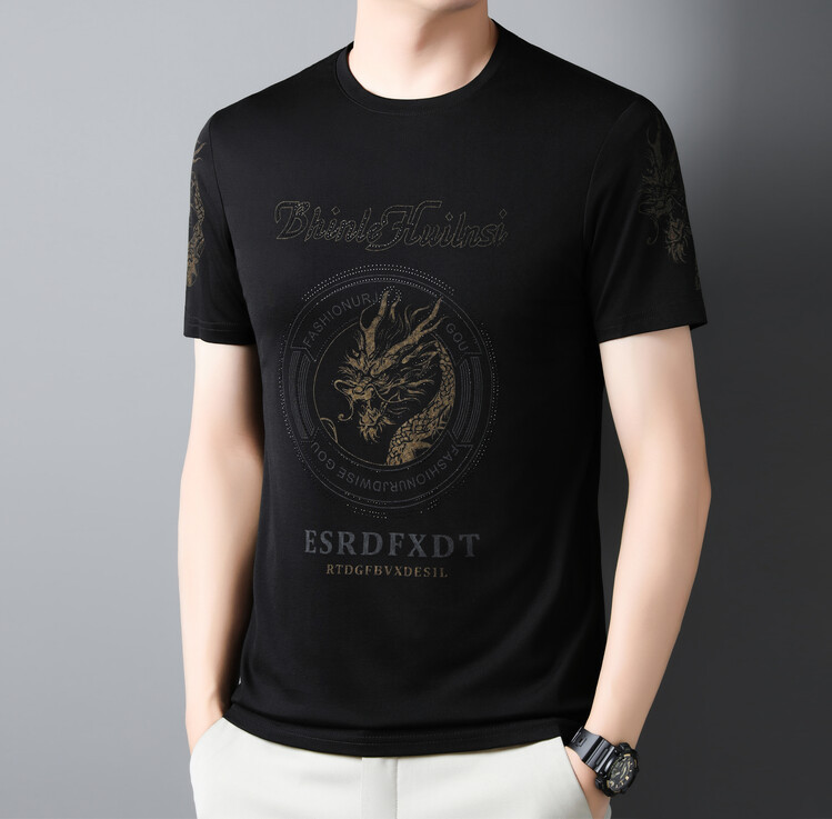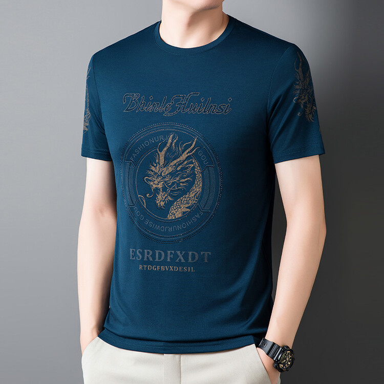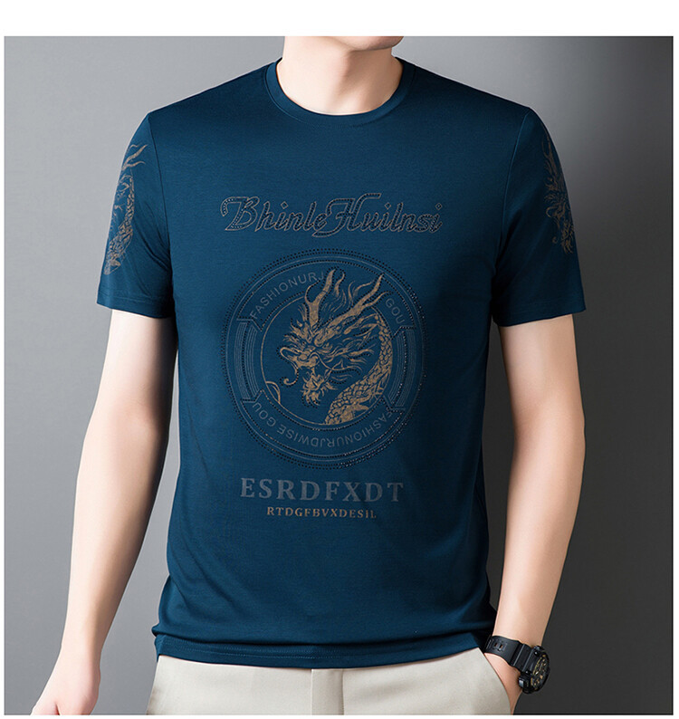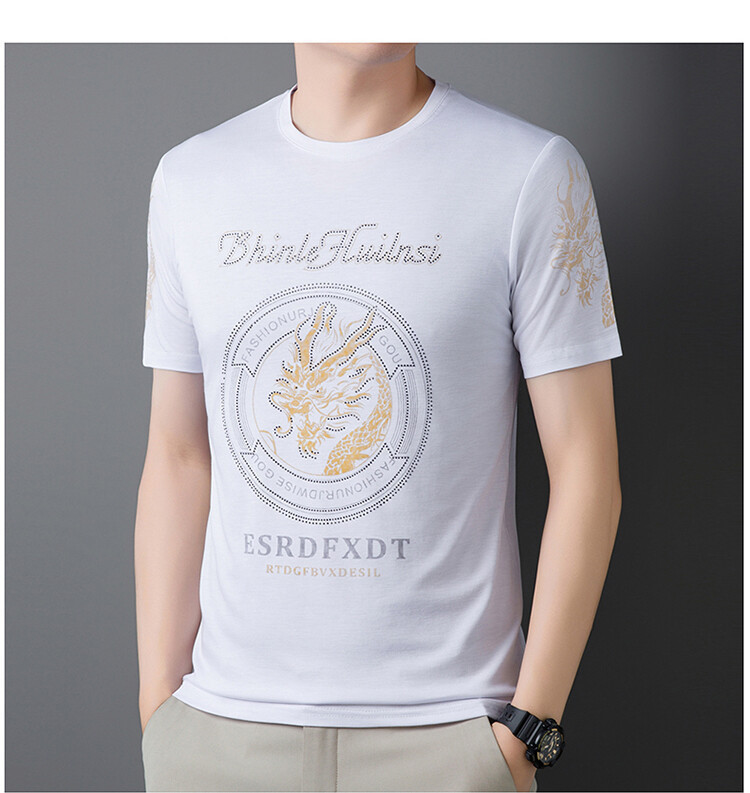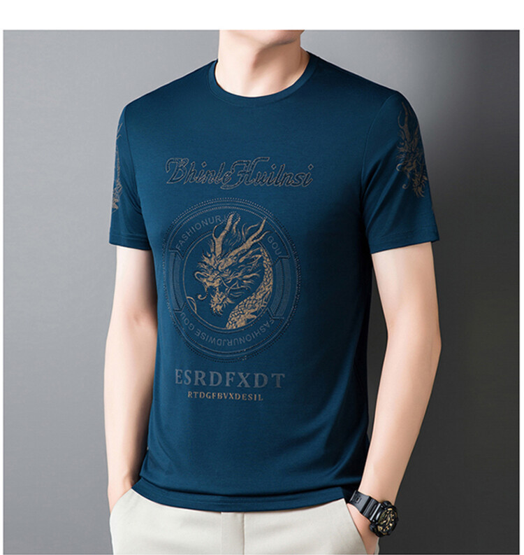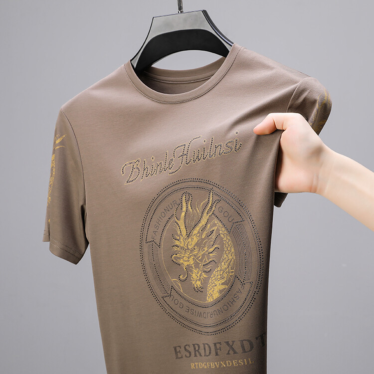 신품질 남성용 반팔 티셔츠 한국형 둥근 목 T 슬림 반소매 인쇄 캐주얼 티셔츠 대형베이스 남성복