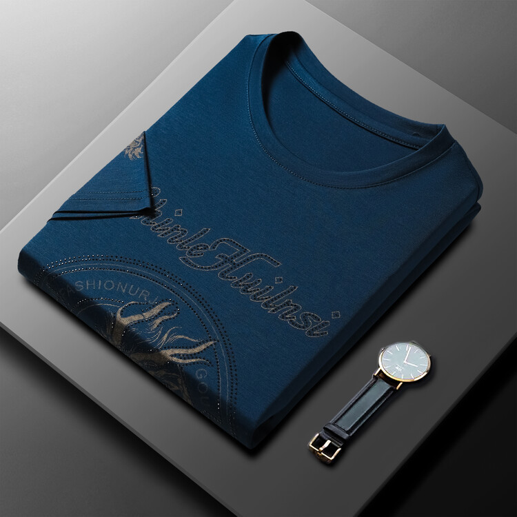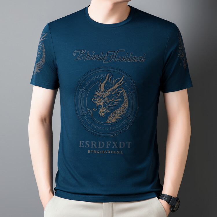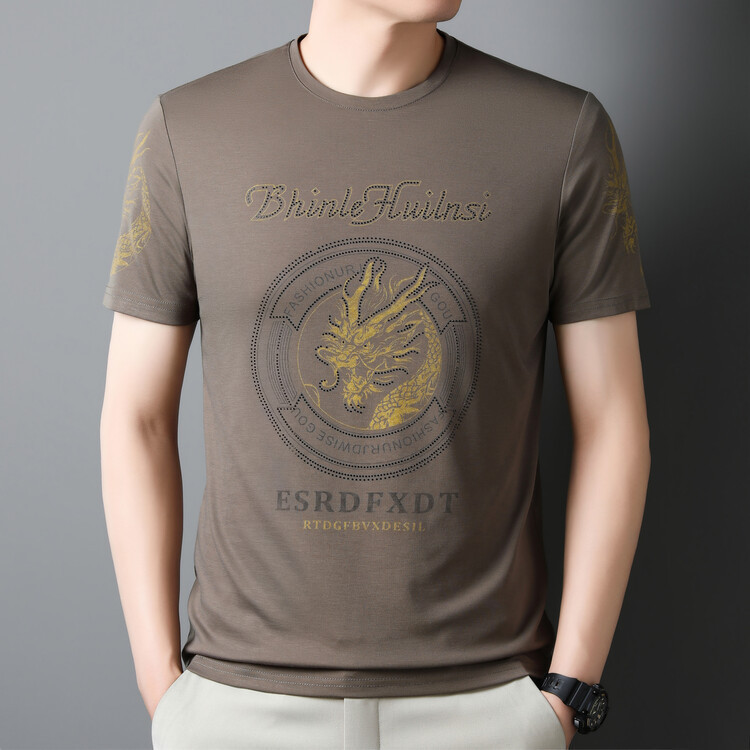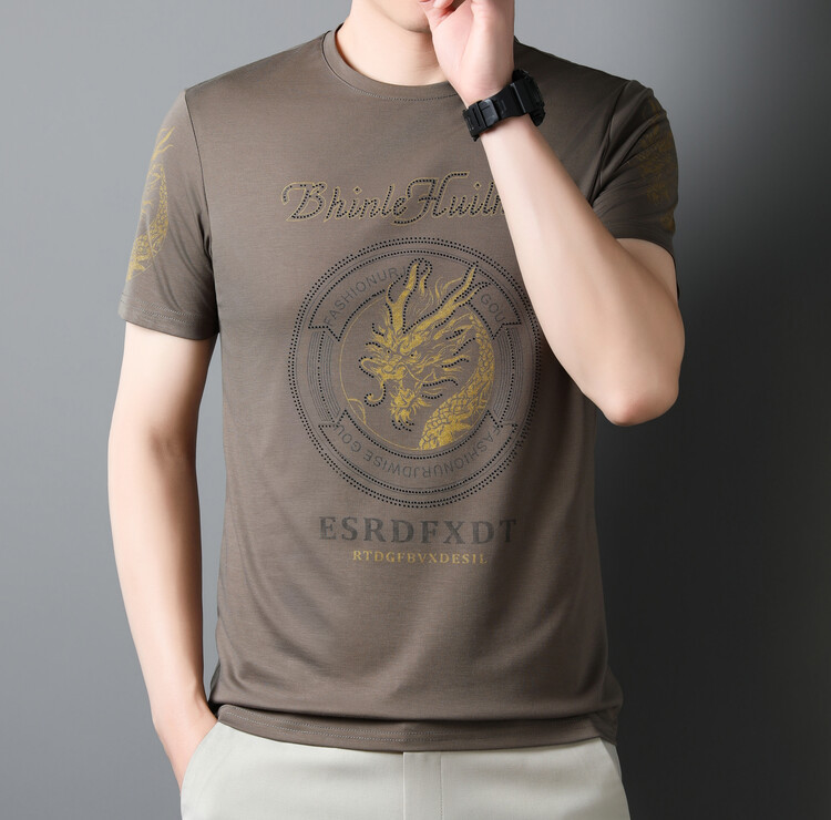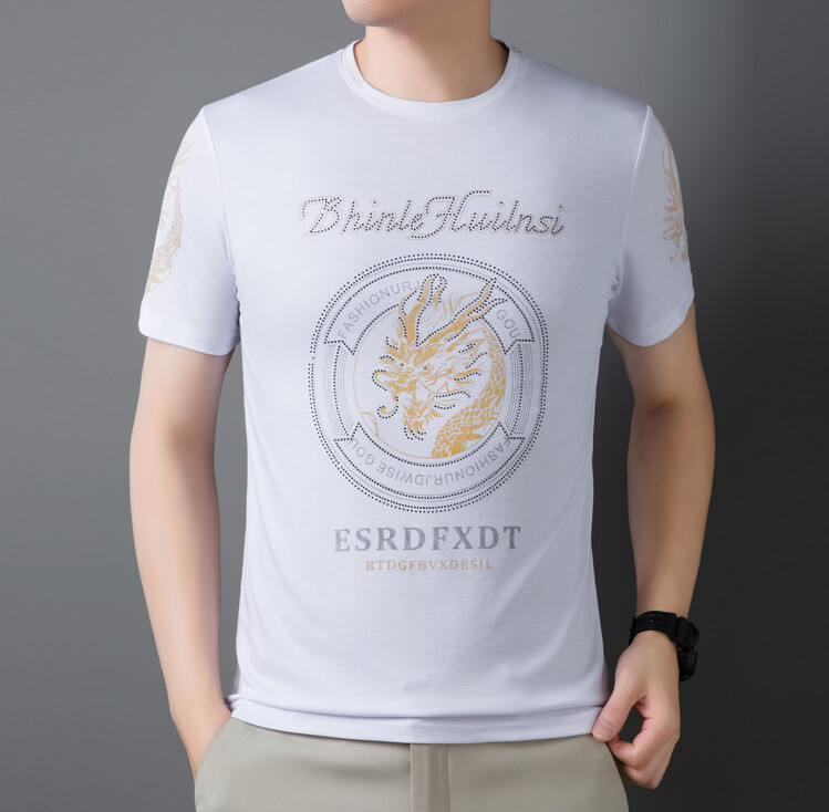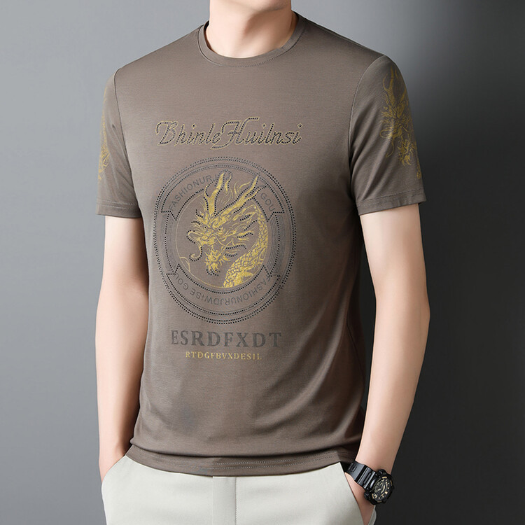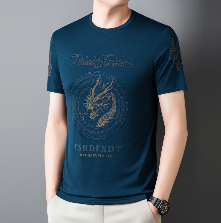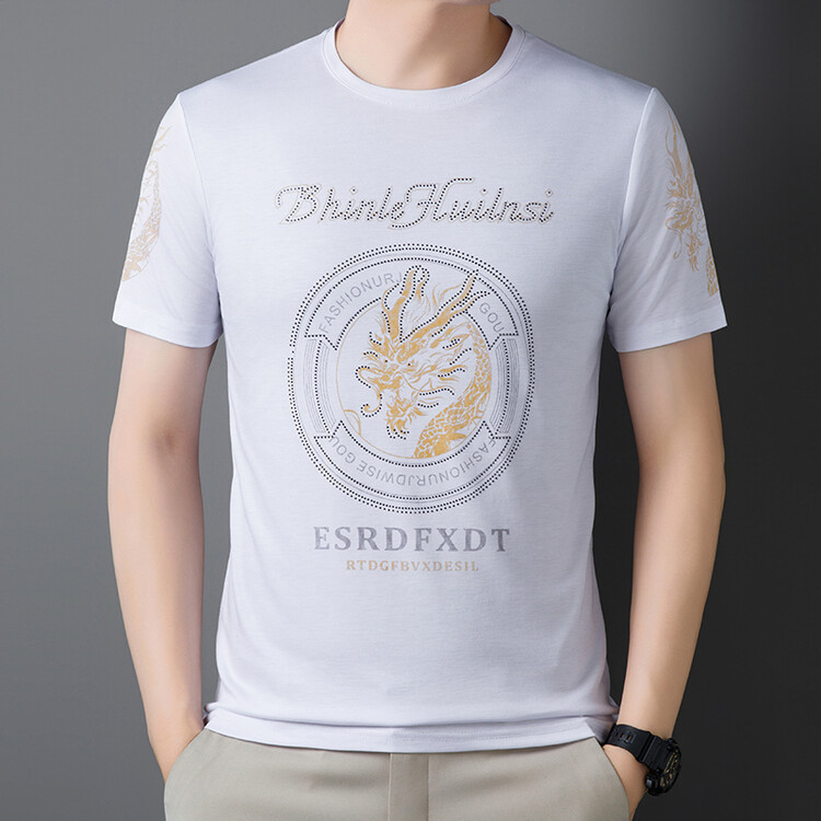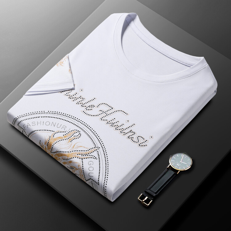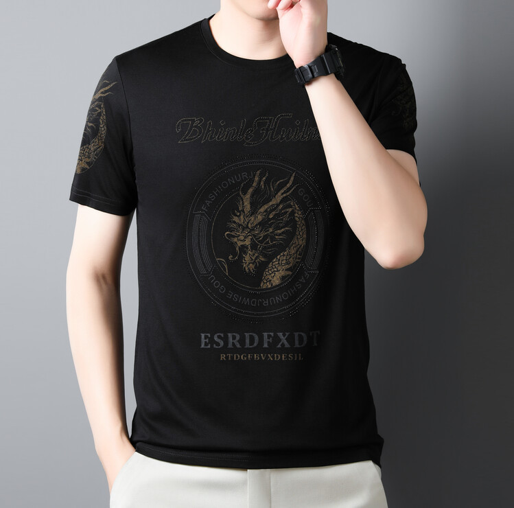 신품질 남성용 반팔 티셔츠 한국형 둥근 목 T 슬림 반소매 인쇄 캐주얼 티셔츠 대형베이스 남성복