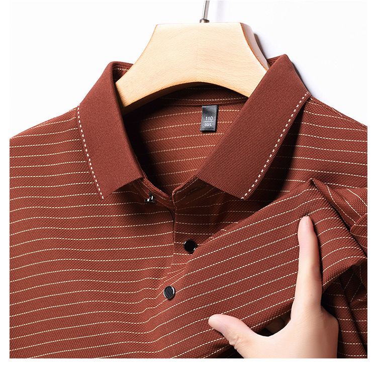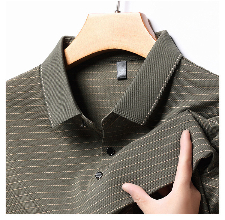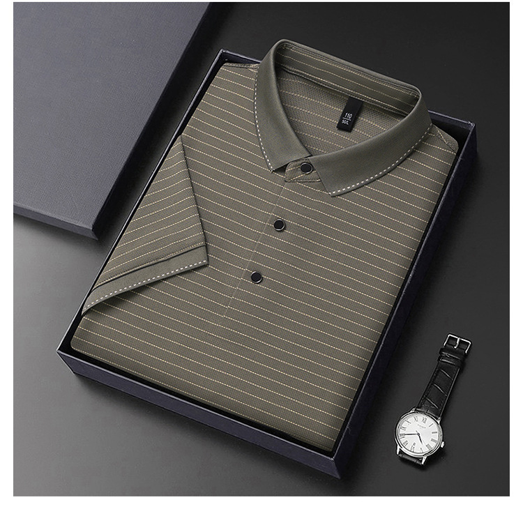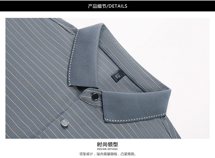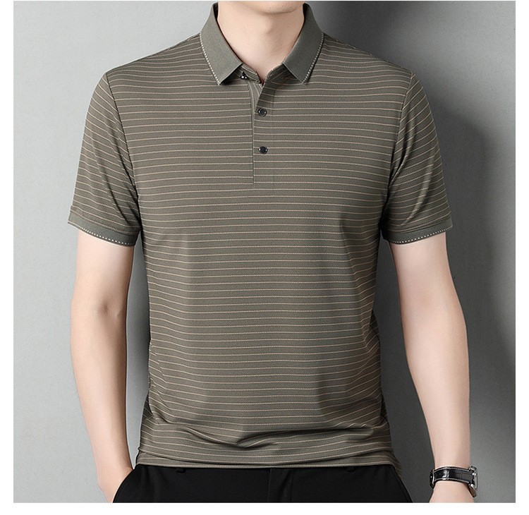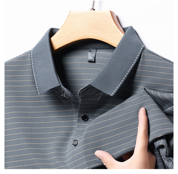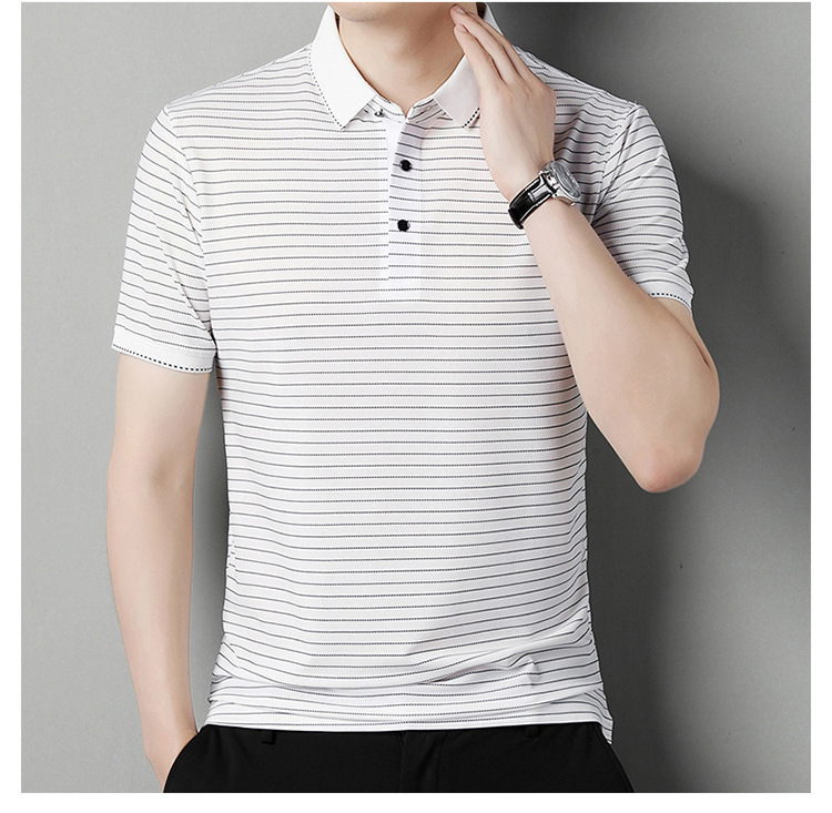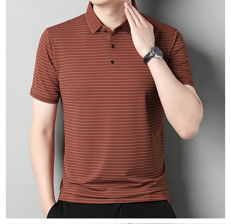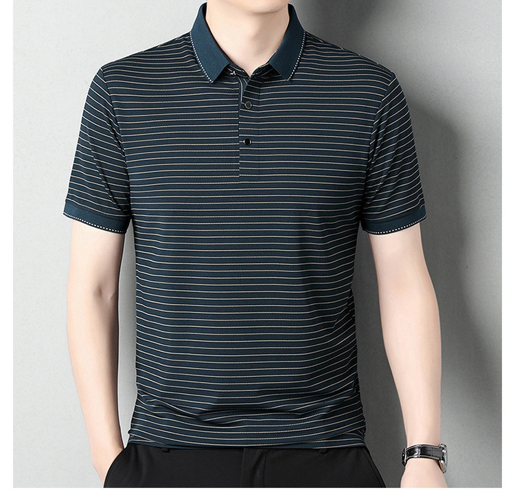 中年男士无痕翻领短袖T恤 横条纹免烫休闲半袖时尚冰爽夏装新款潮