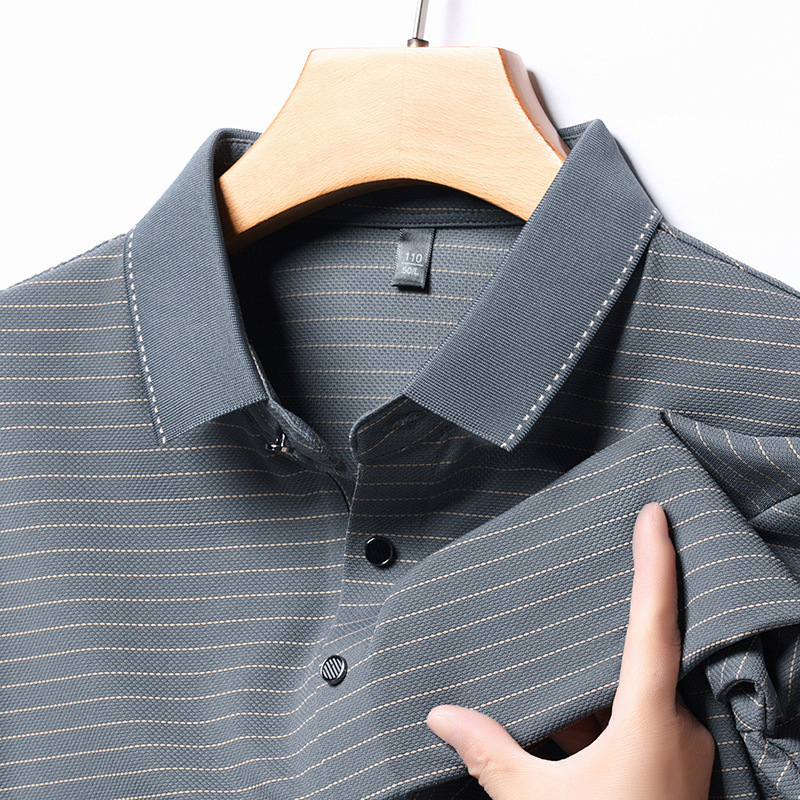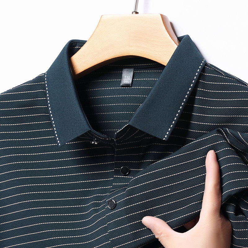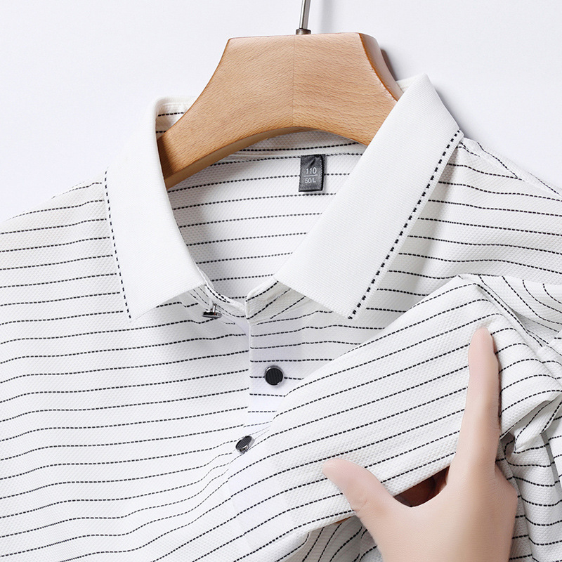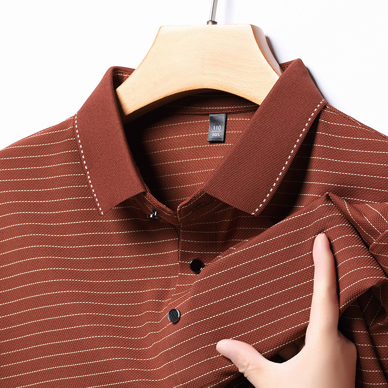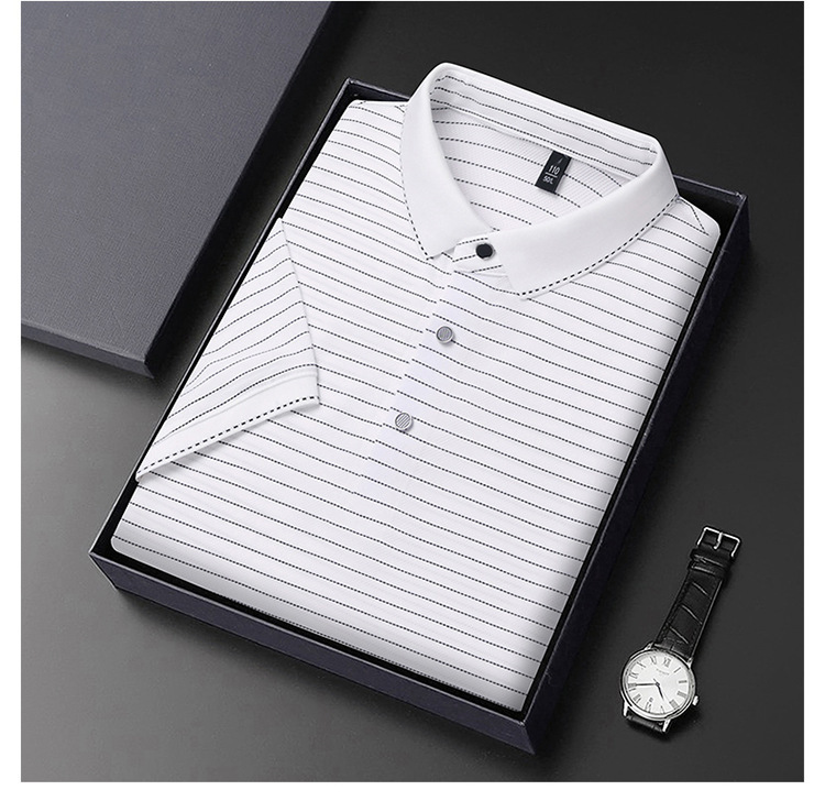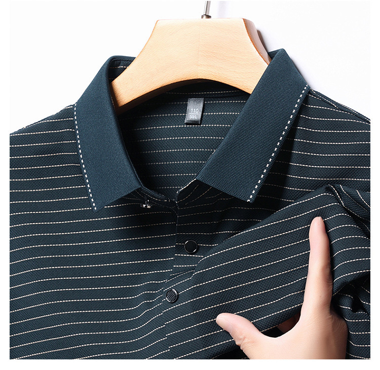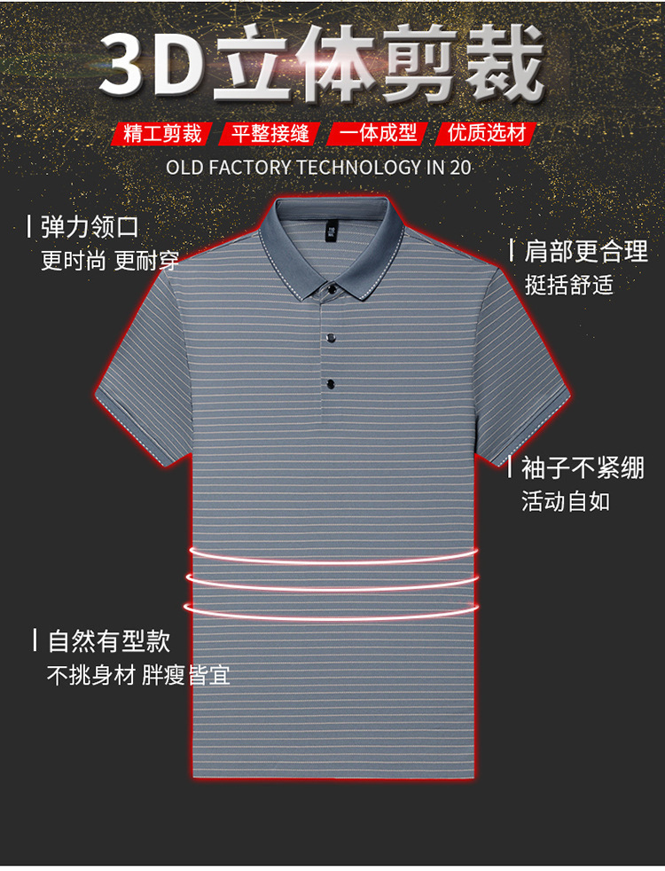 中年男士无痕翻领短袖T恤 横条纹免烫休闲半袖时尚冰爽夏装新款潮