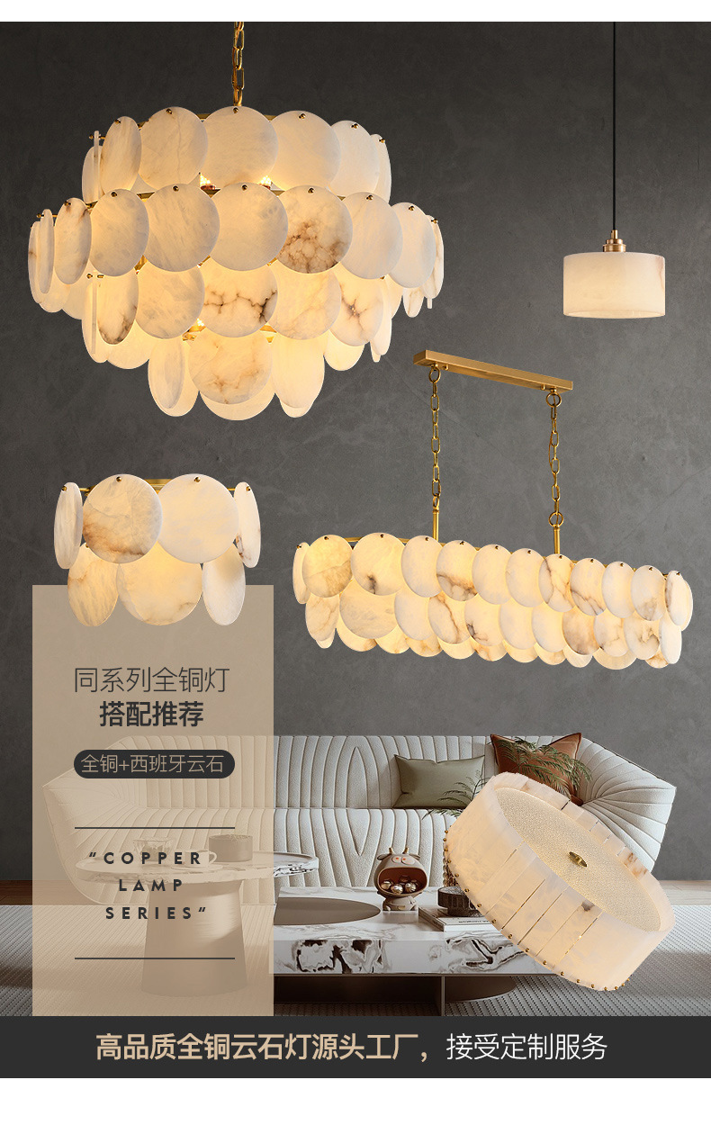 스페인 대리석 레스토랑 샹들리에 현대 간단한 빛 고급 디자이너 거실 침실 호텔 빌라 조명