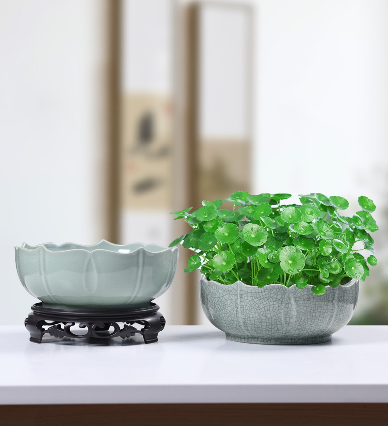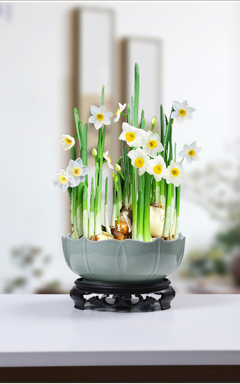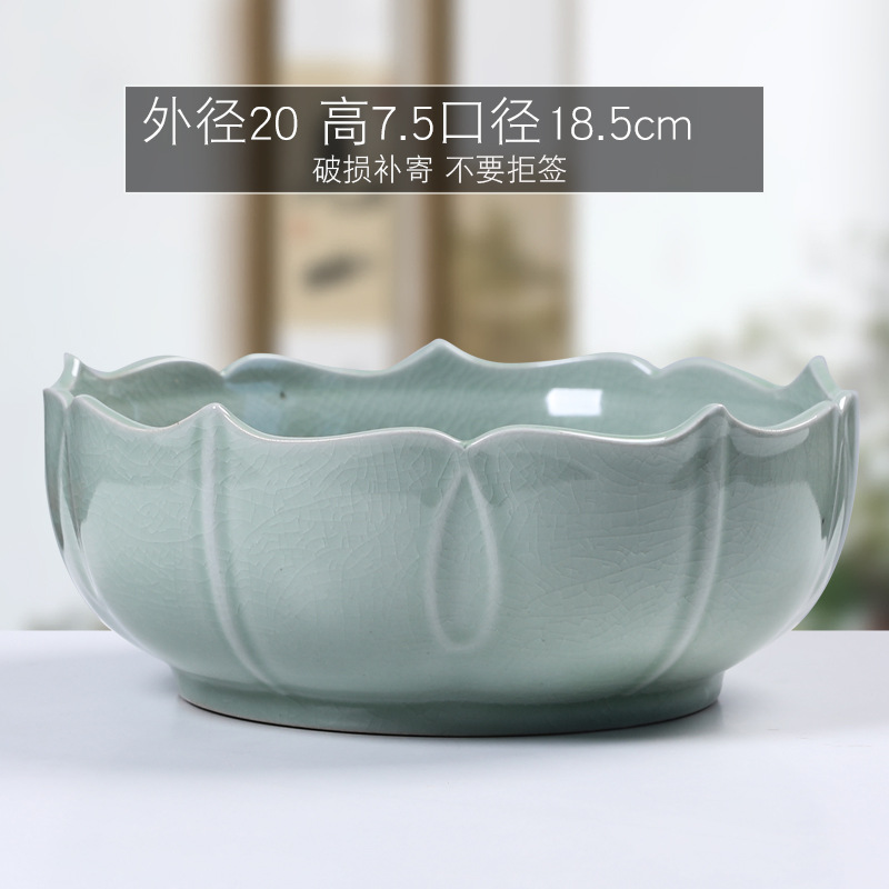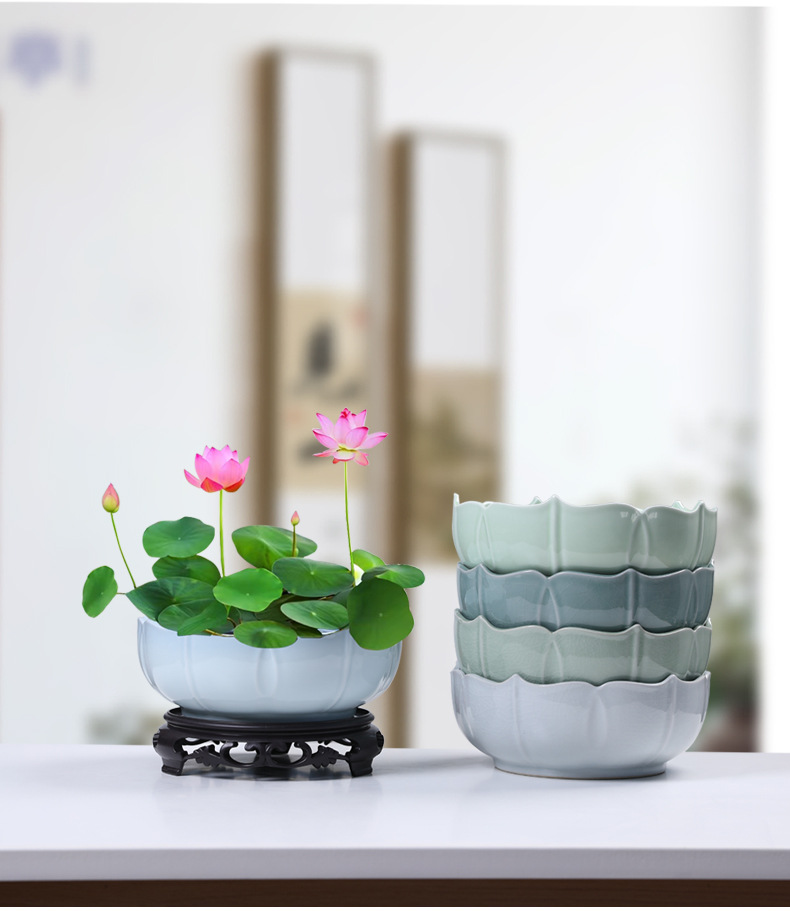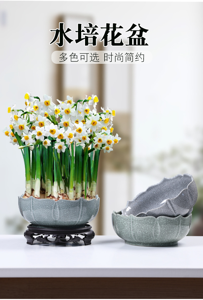 새로운 중국 스타일의 수경 꽃 냄비 가마 세라믹 대형 가정용 간단한 수선화 구리 돈 잔디 물 영양 수면 그릇 연꽃
