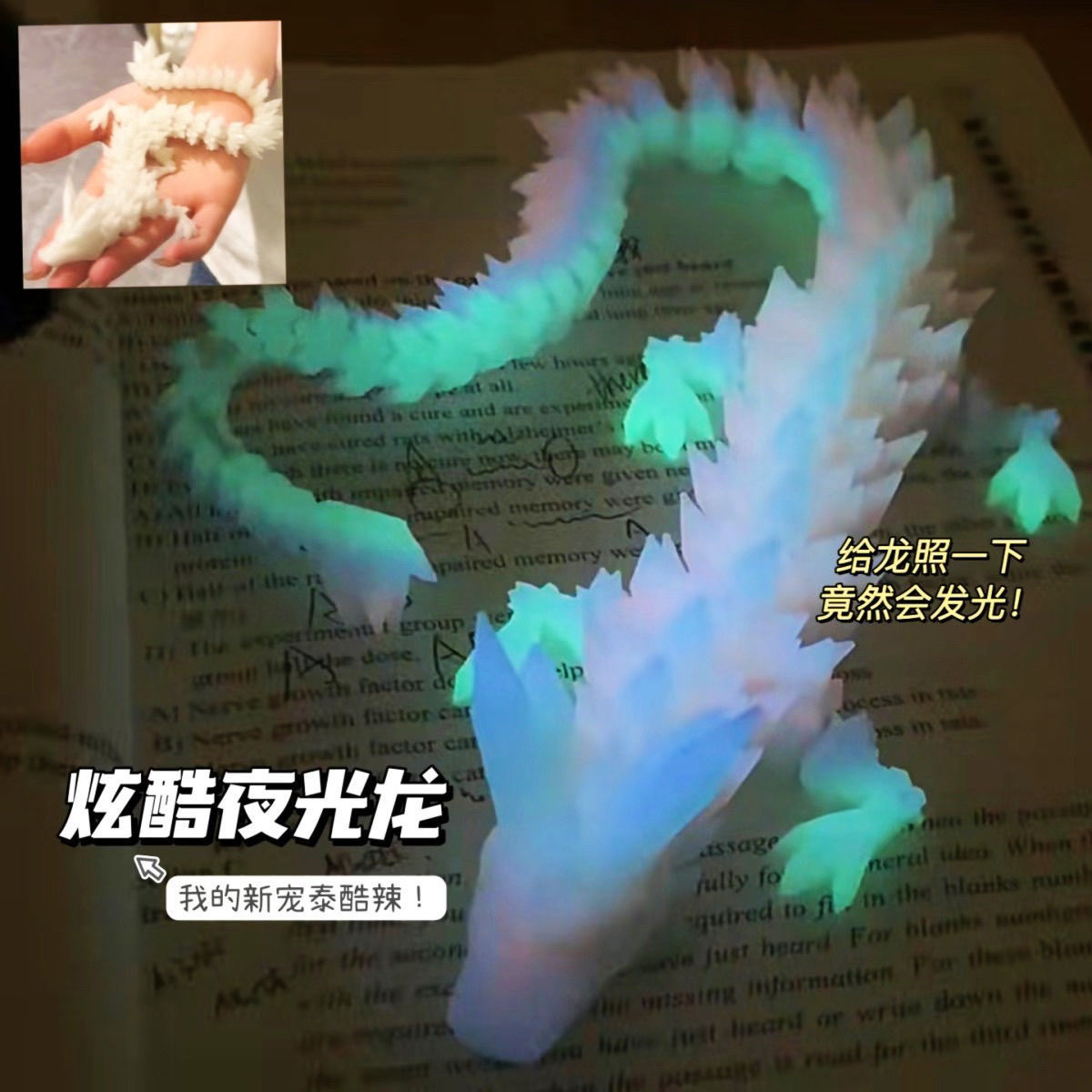 새로운 3D 빛나는 용 전체 공동 움직일 수있는 빛나는 용 흡수 자외선 발광 그라데이션 용 창조적 인 축복 장식품스토어 가기