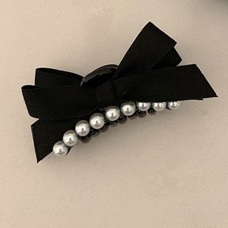 Hepburn 스타일 빈티지 진주 공주 머리 활 그랩 클립 반 넥타이 헤어 액세서리 스몰 사이즈 머리에 적합
