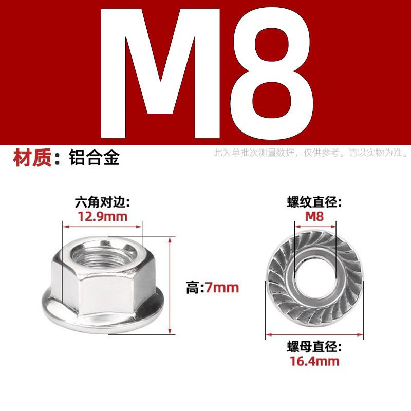 6061 알루미늄 합금 육각형 플랜지 너트 커넥터 알루미늄 패드 스크류 캡 미끄럼 방지 너트 M5M6M8M10mm