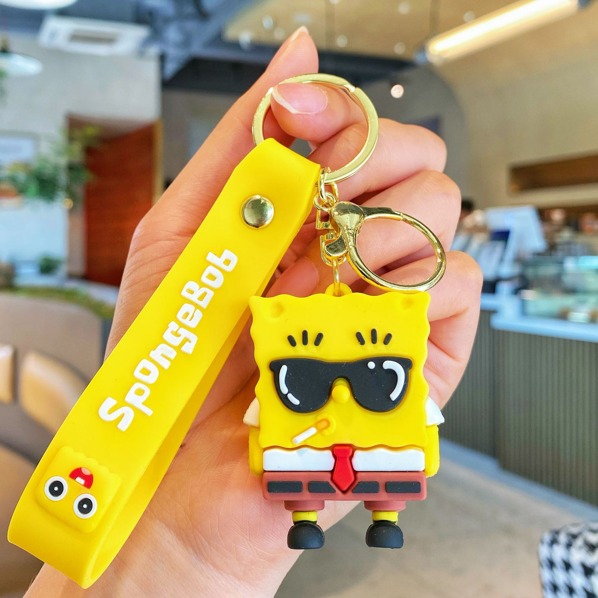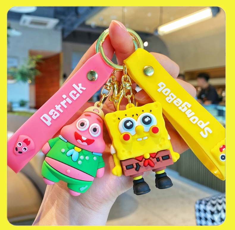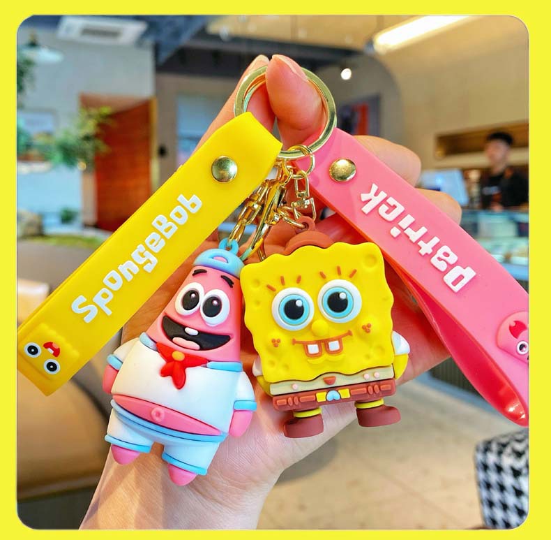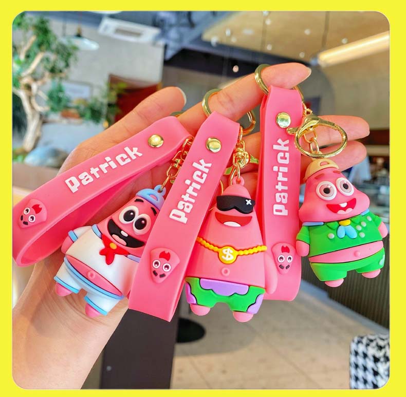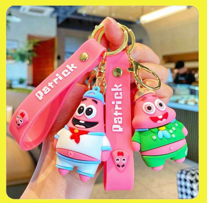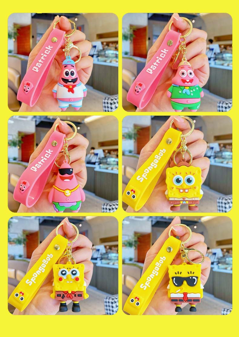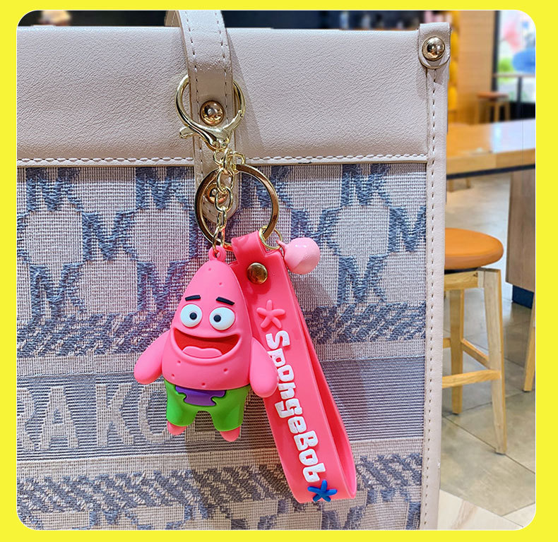 애니메이션 스폰지 밥 키 체인 귀여운 파이 다 스타 인형 펜던트 커플 보석 자동차 스쿨 백 키 체인스토어 가기