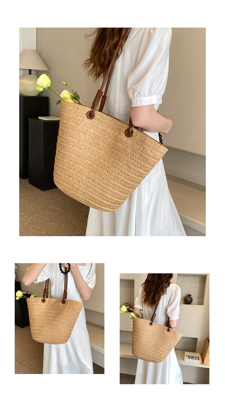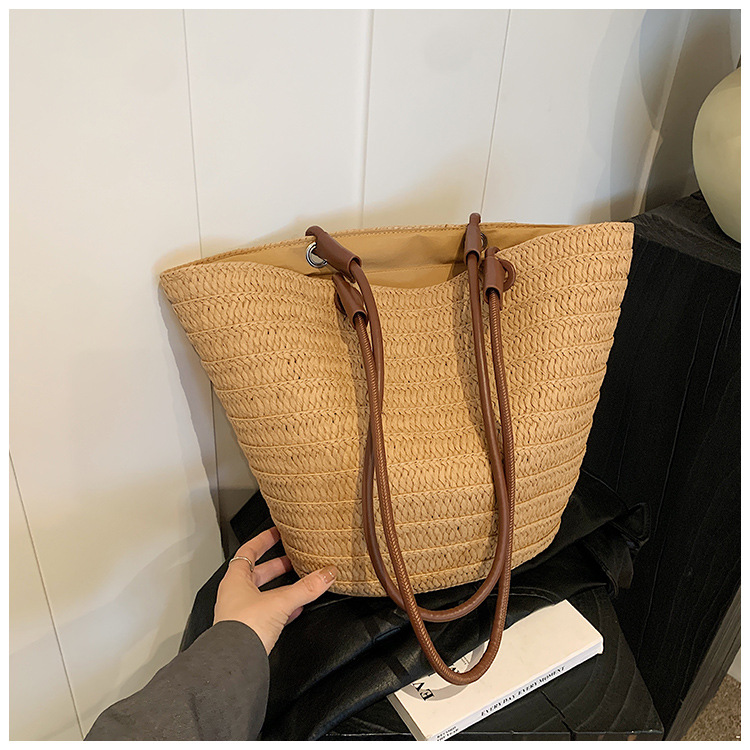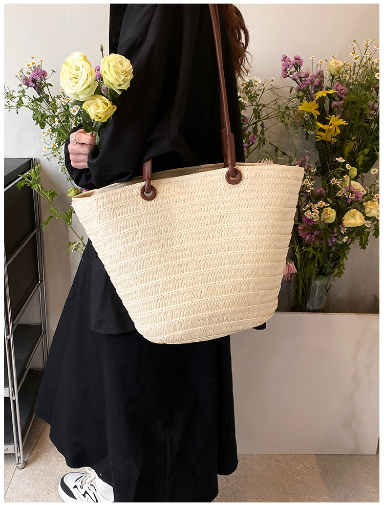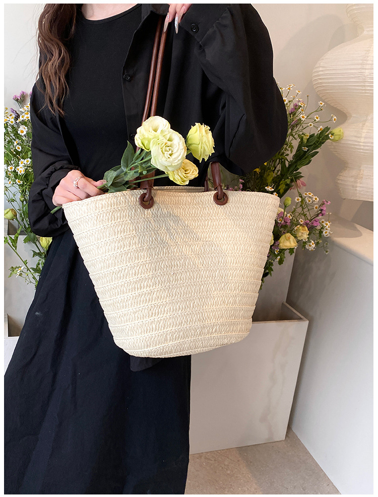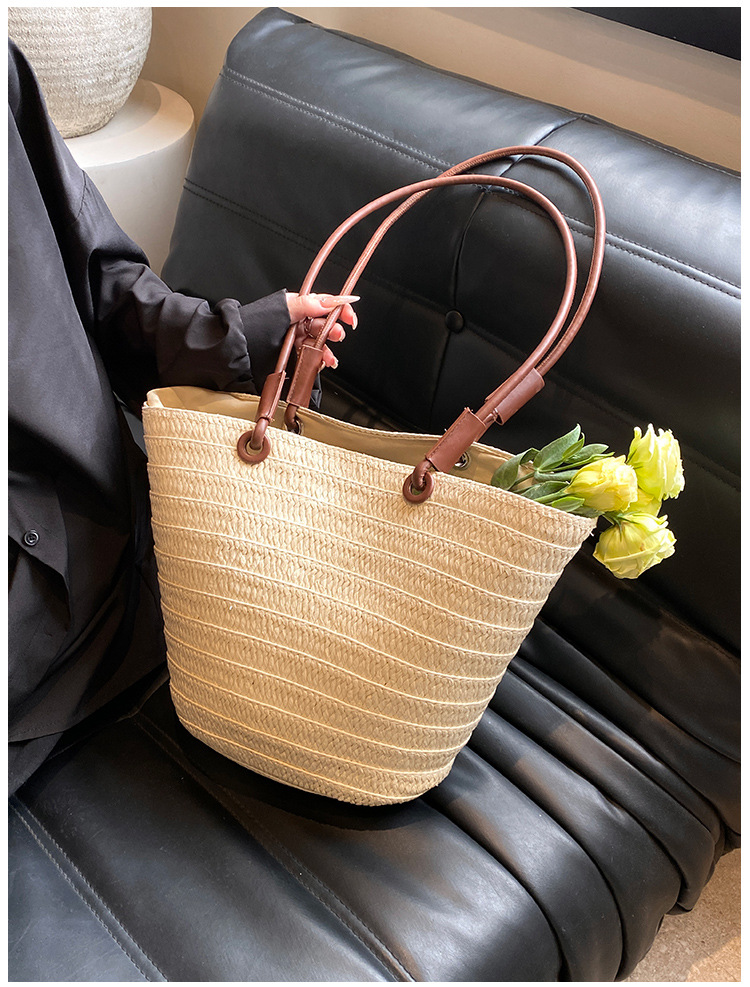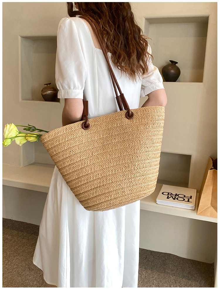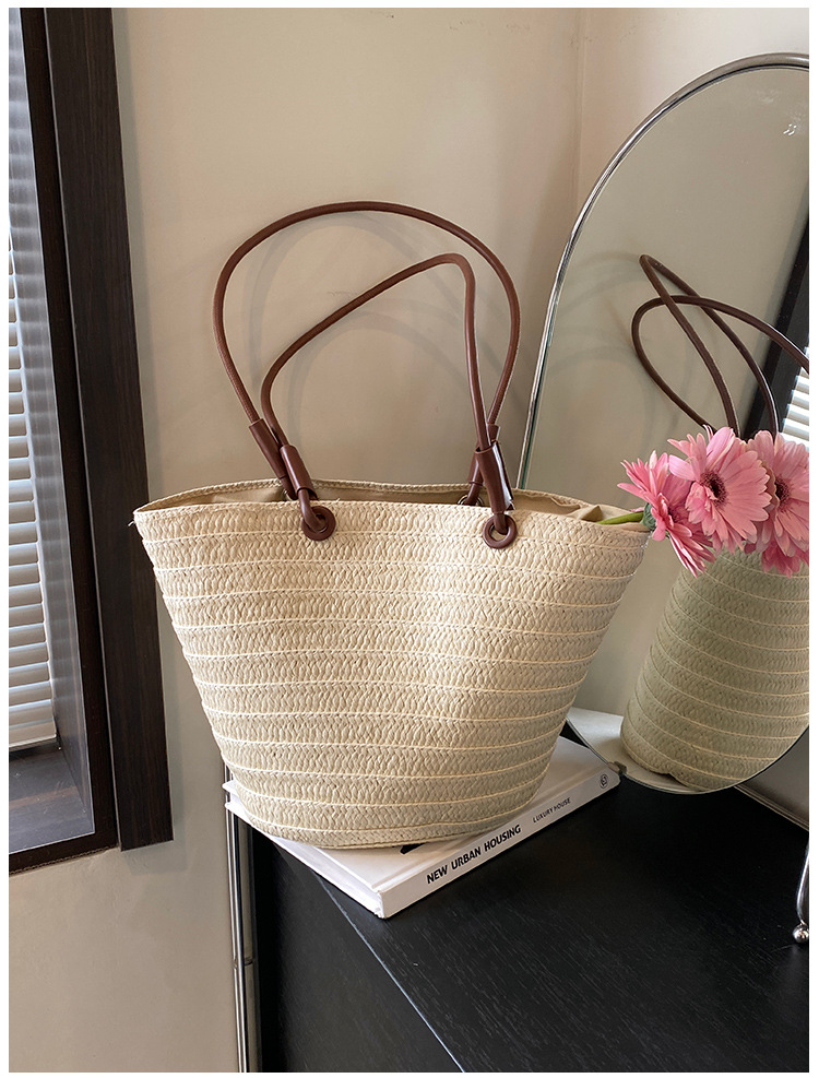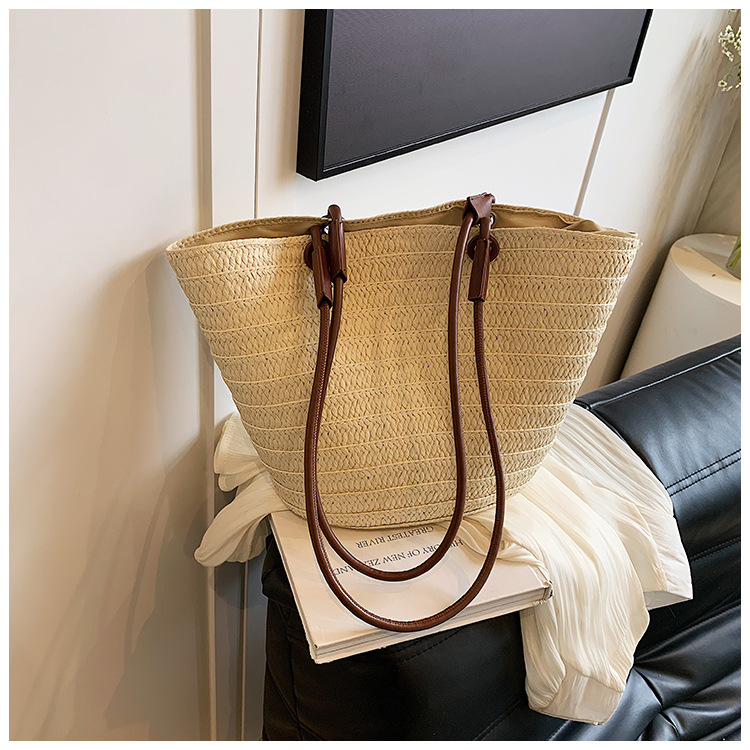 프랑스 스타일 밀짚 가방 여성용 2026 여름 신상 패션 브레이드 비치백 대용량 통근용 숄더 토트백