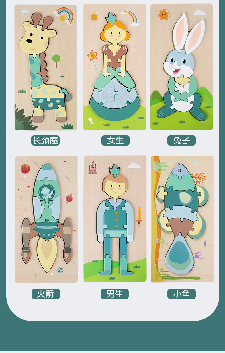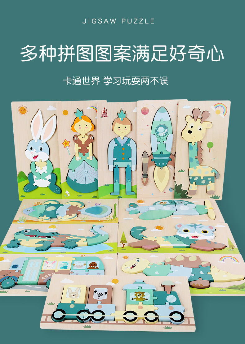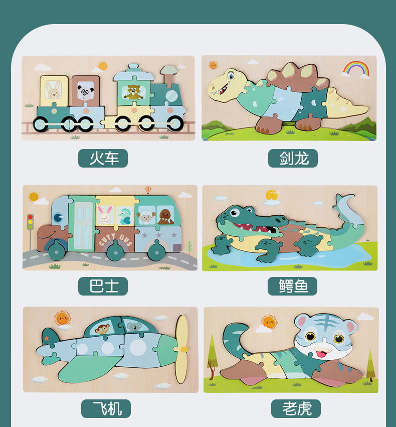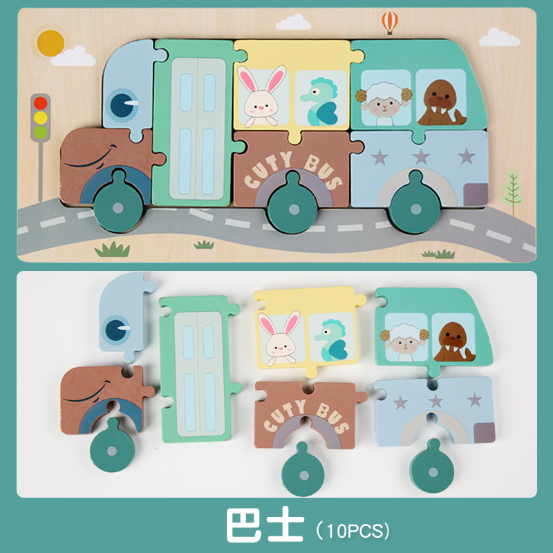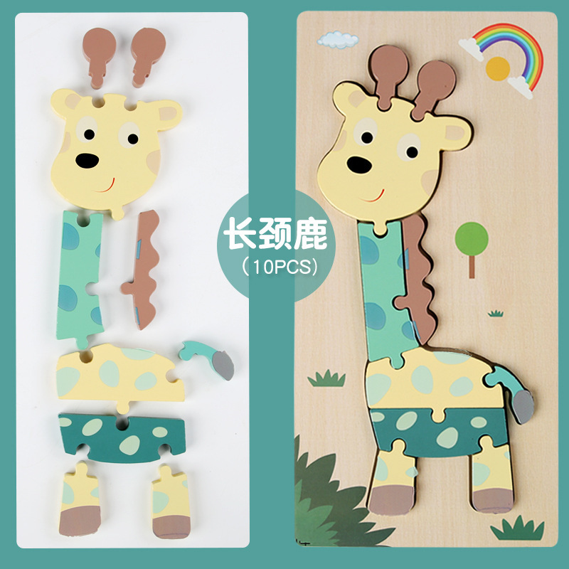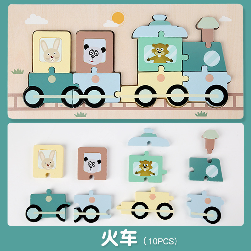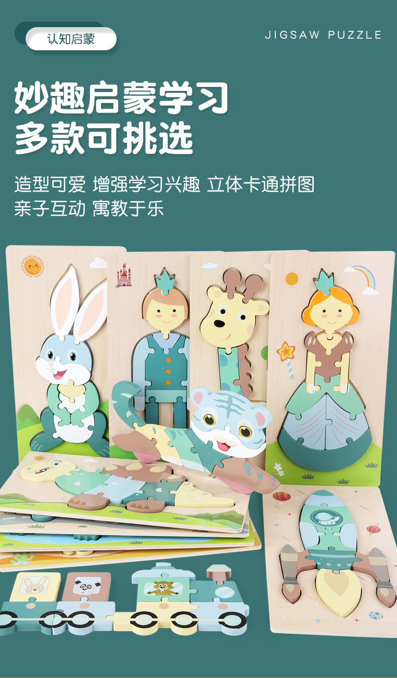 어린이 나무 입체 퍼즐 3D 만화 대형 재미있는 조기 교육 퍼즐 모양 일치 교육 장난감 사용자 정의스토어 가기