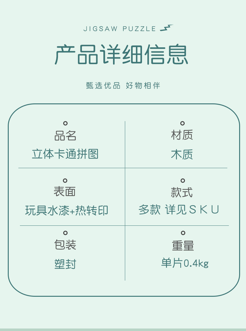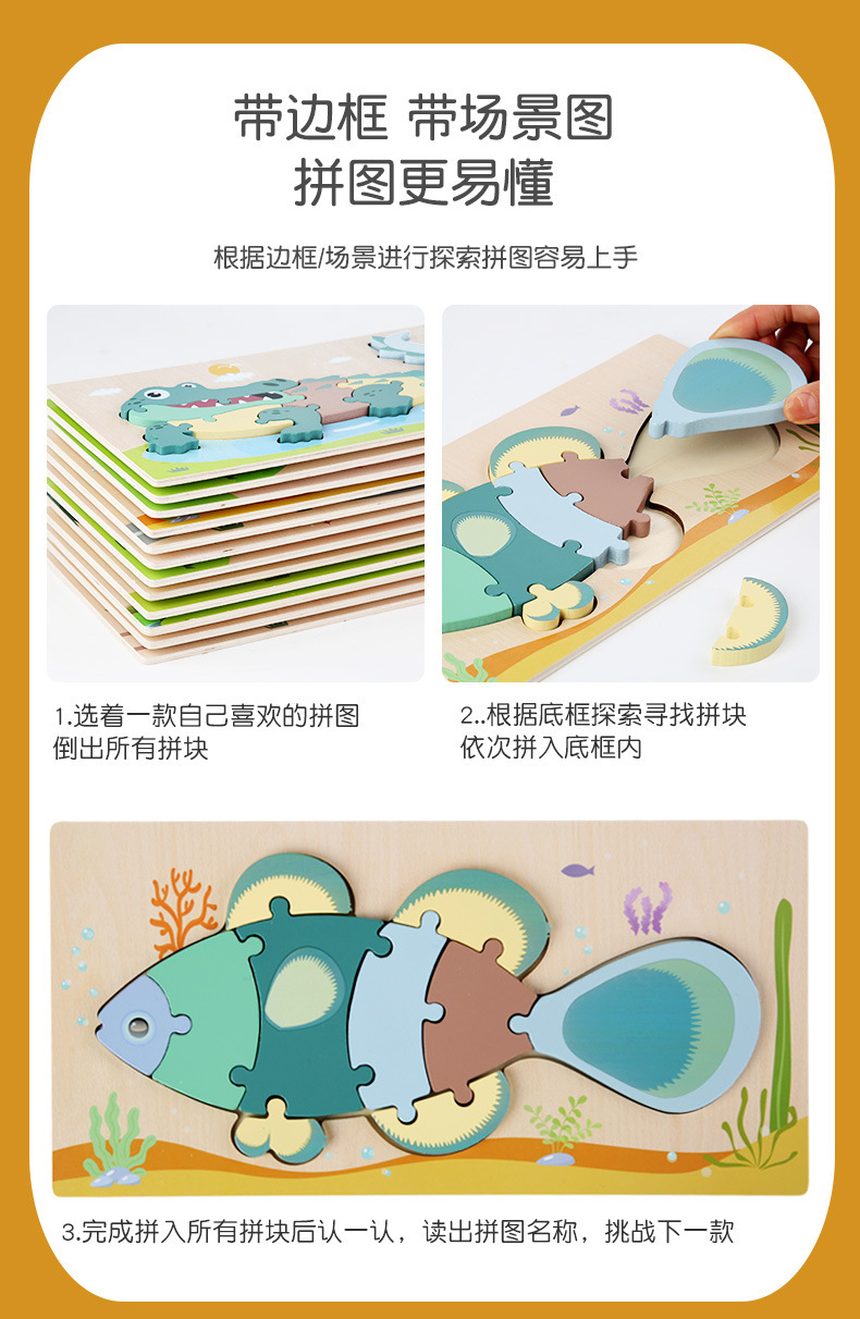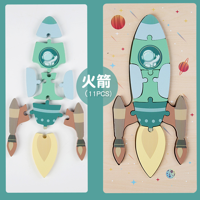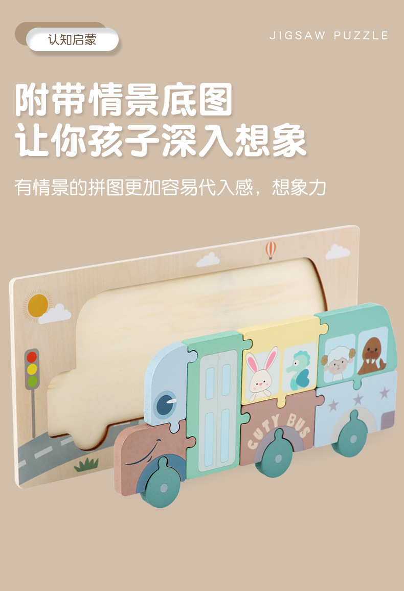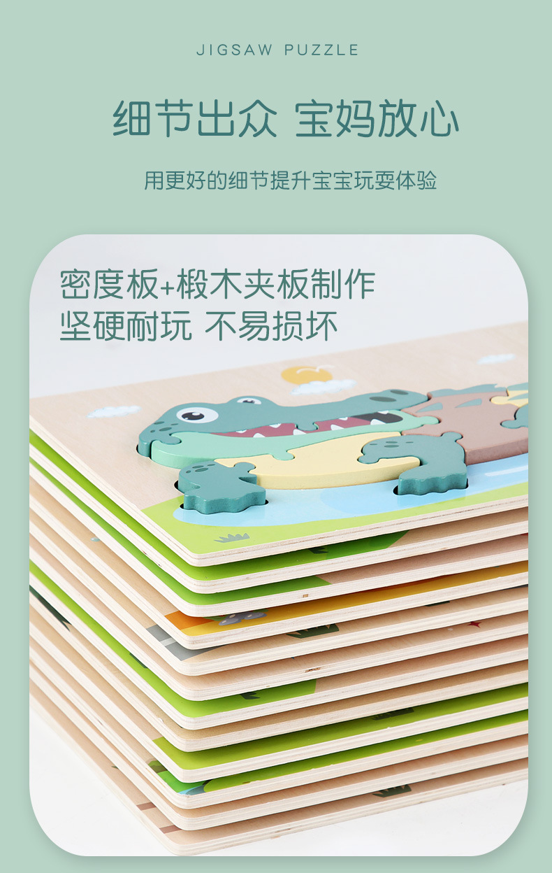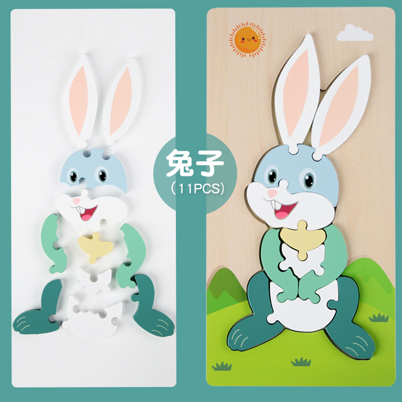 어린이 나무 입체 퍼즐 3D 만화 대형 재미있는 조기 교육 퍼즐 모양 일치 교육 장난감 사용자 정의스토어 가기