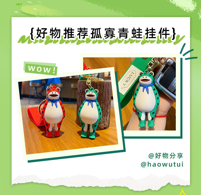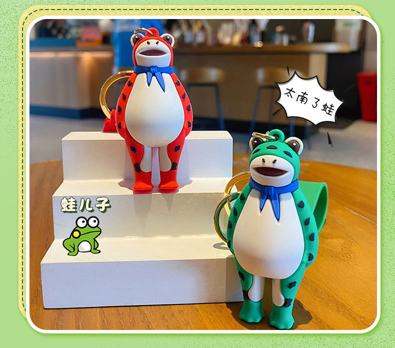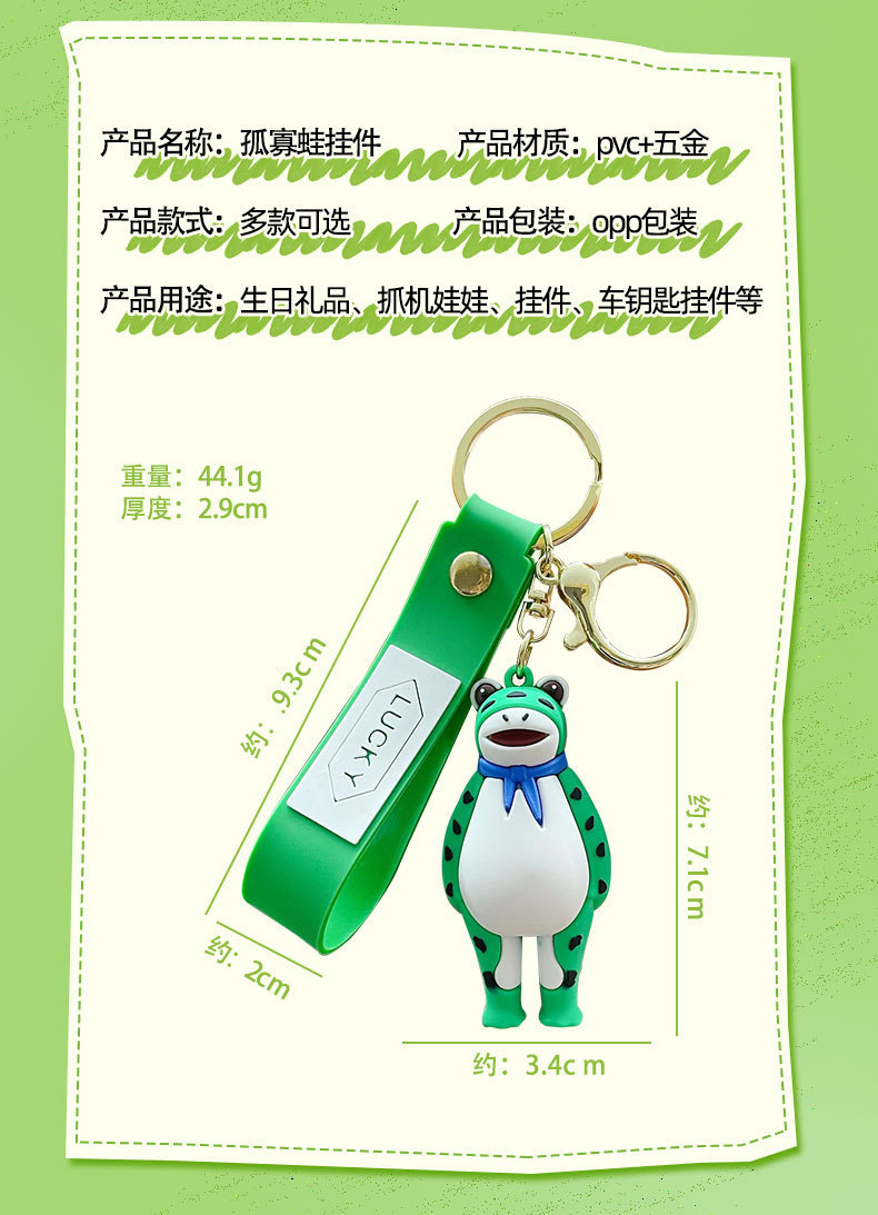 인터넷 축하 외로운 개구리 PVC 키 체인 귀여운 개구리 펜던트 자동차 키 체인 남성과 여성의 가방 교수형 선물