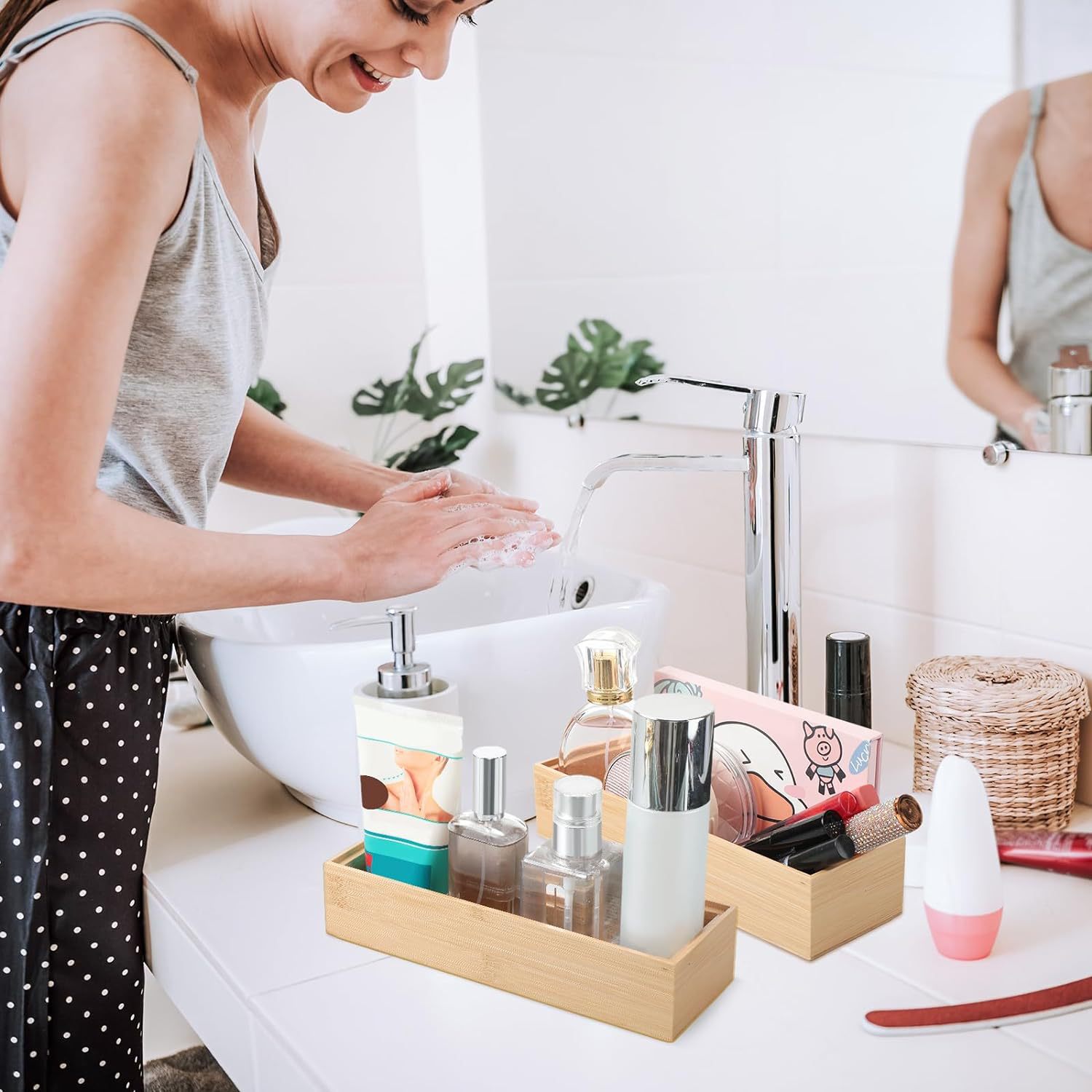 나무 간단한 서랍 저장 상자 가정용 주방 식기 서랍 쌓을 수있는 대나무 저장 상자