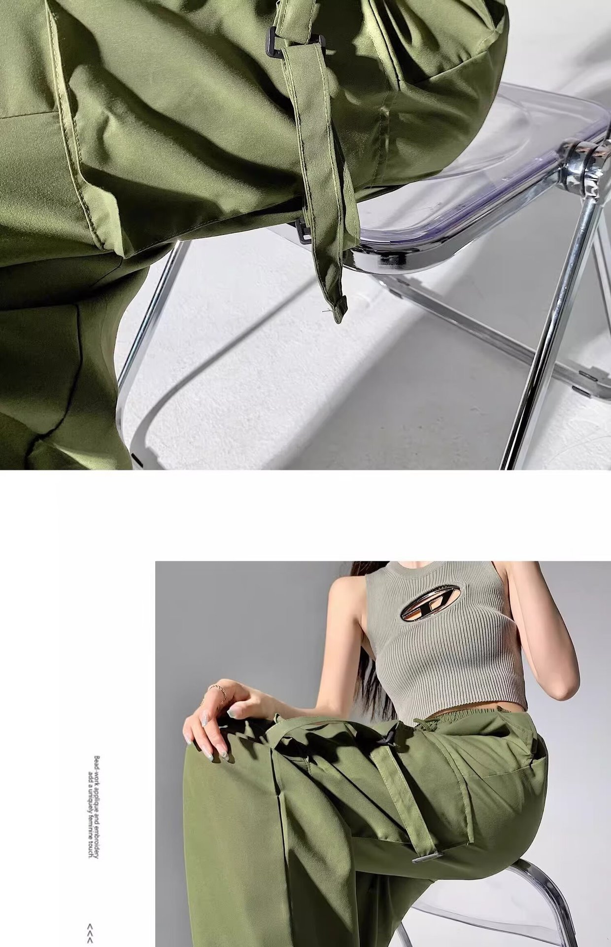 미국식 바지 여성 여름 2024 새로운 등산 스포츠 캐주얼 바지 멀티 포켓 작은 와이드 레그 바지