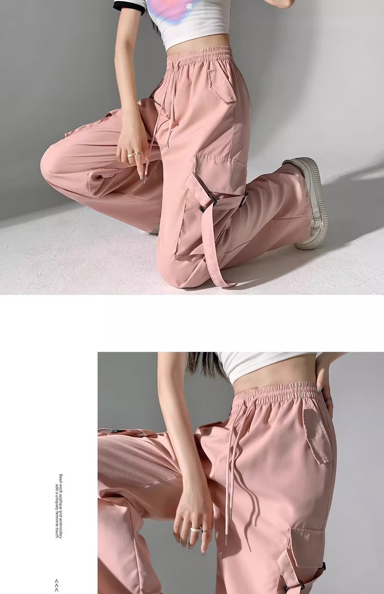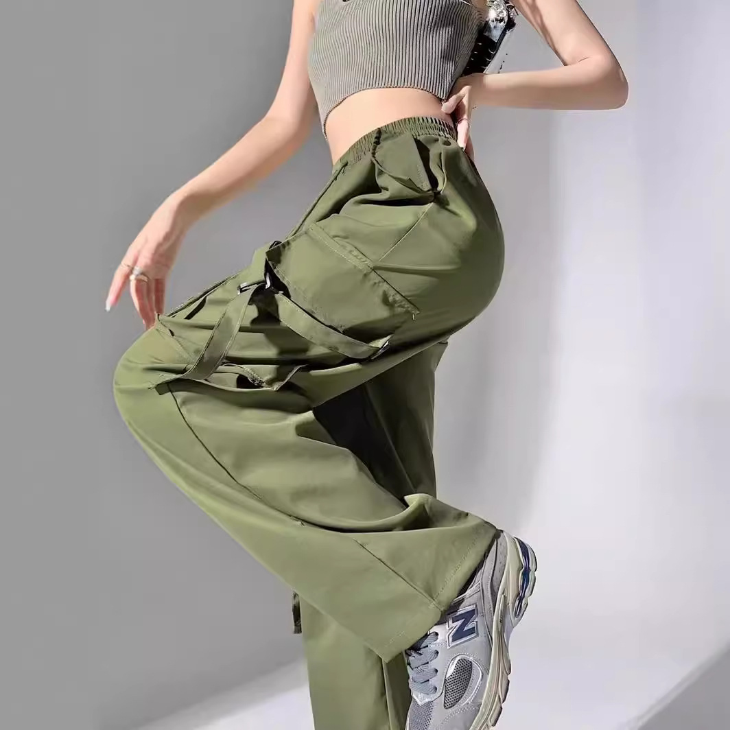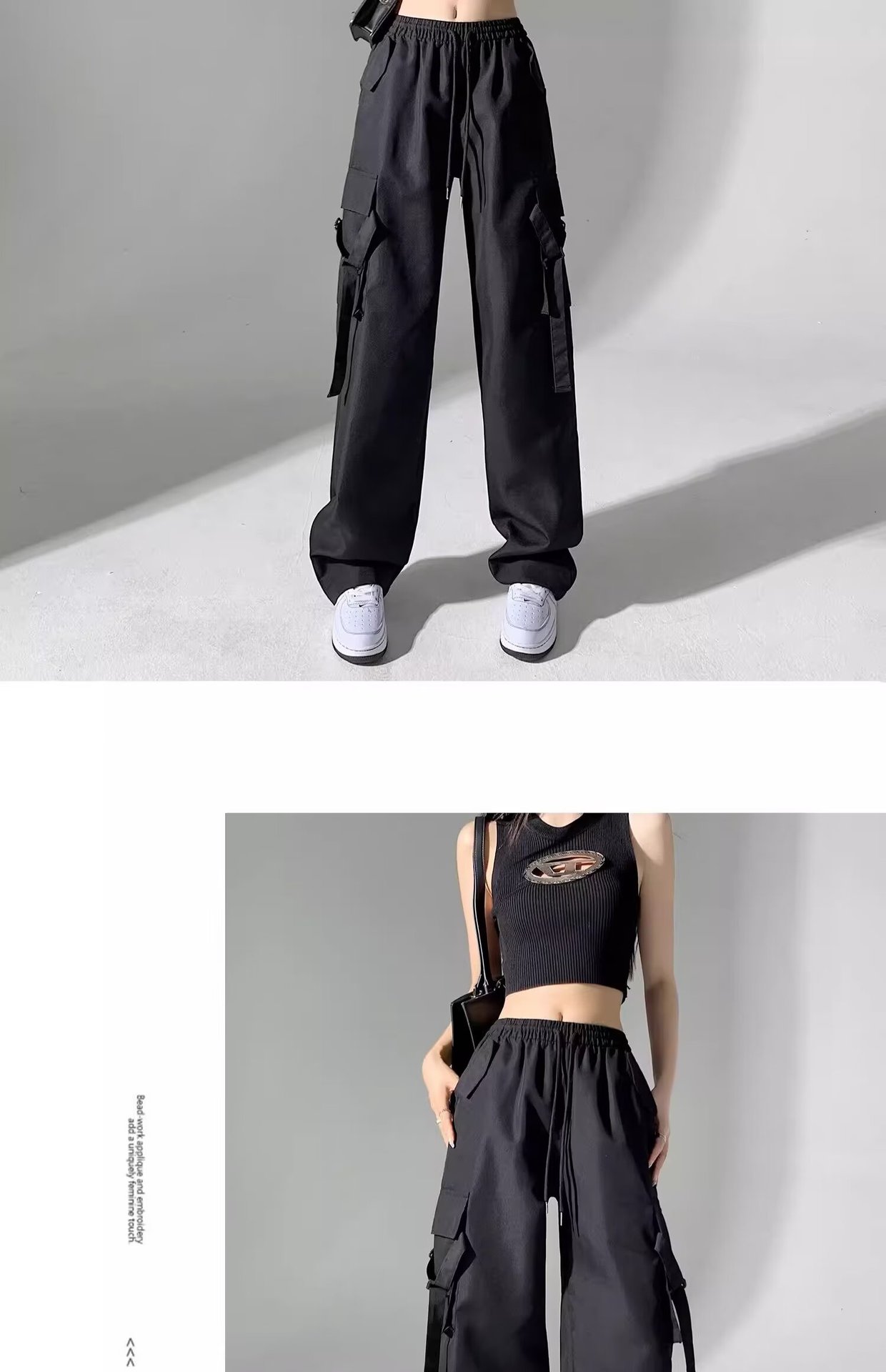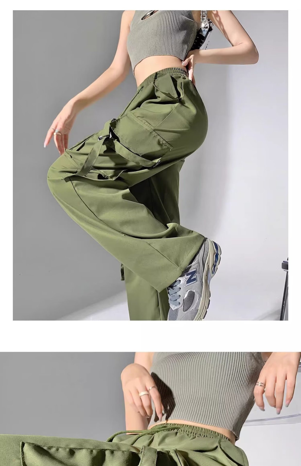 미국식 바지 여성 여름 2024 새로운 등산 스포츠 캐주얼 바지 멀티 포켓 작은 와이드 레그 바지스토어 가기