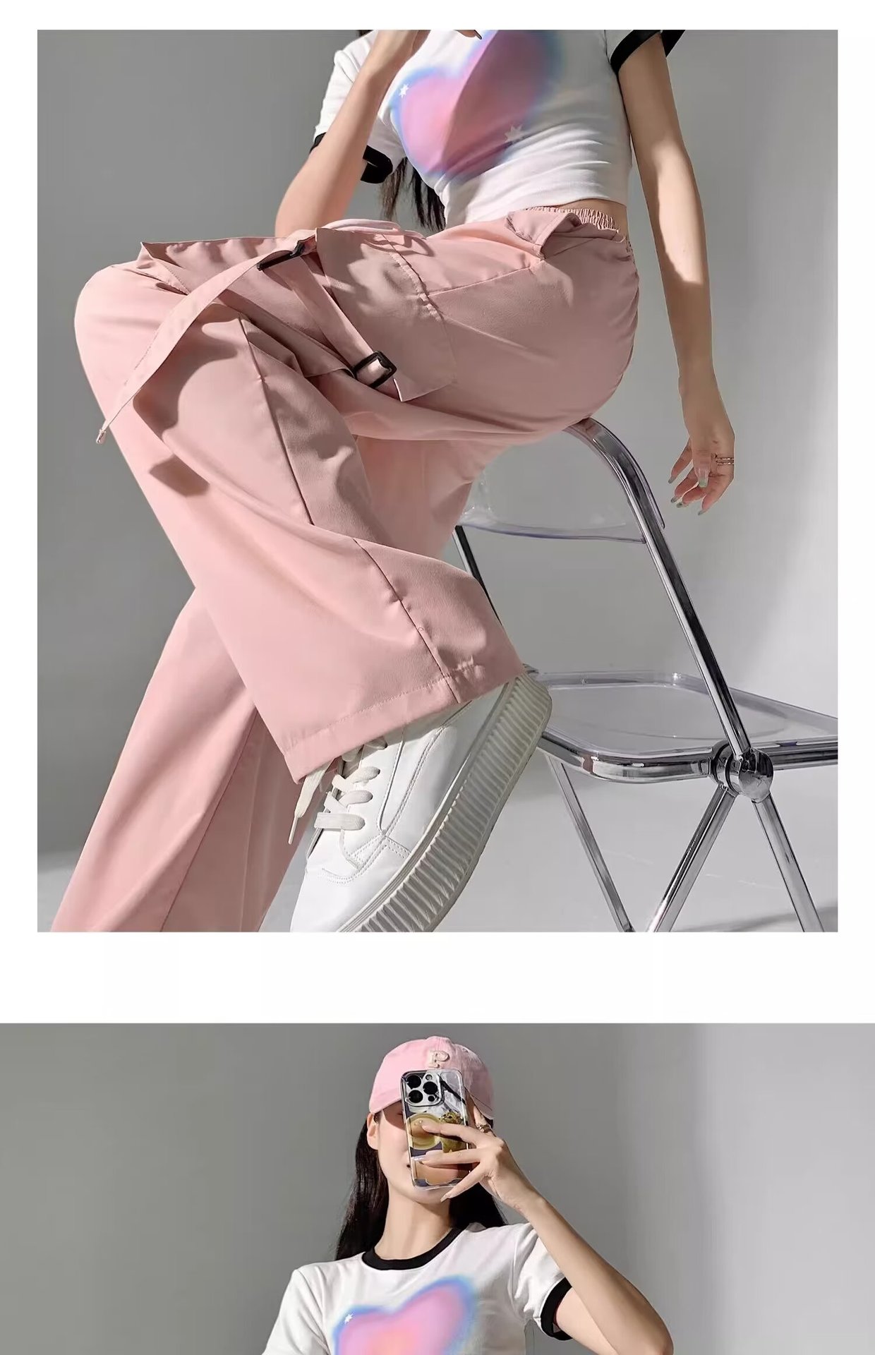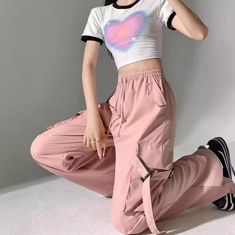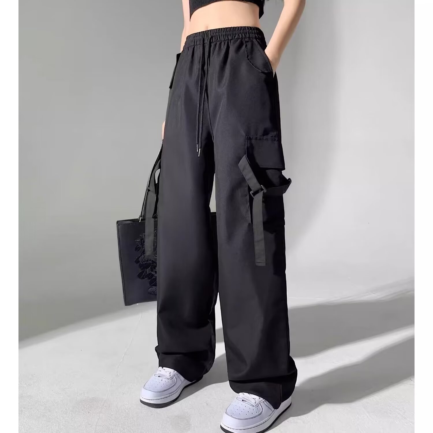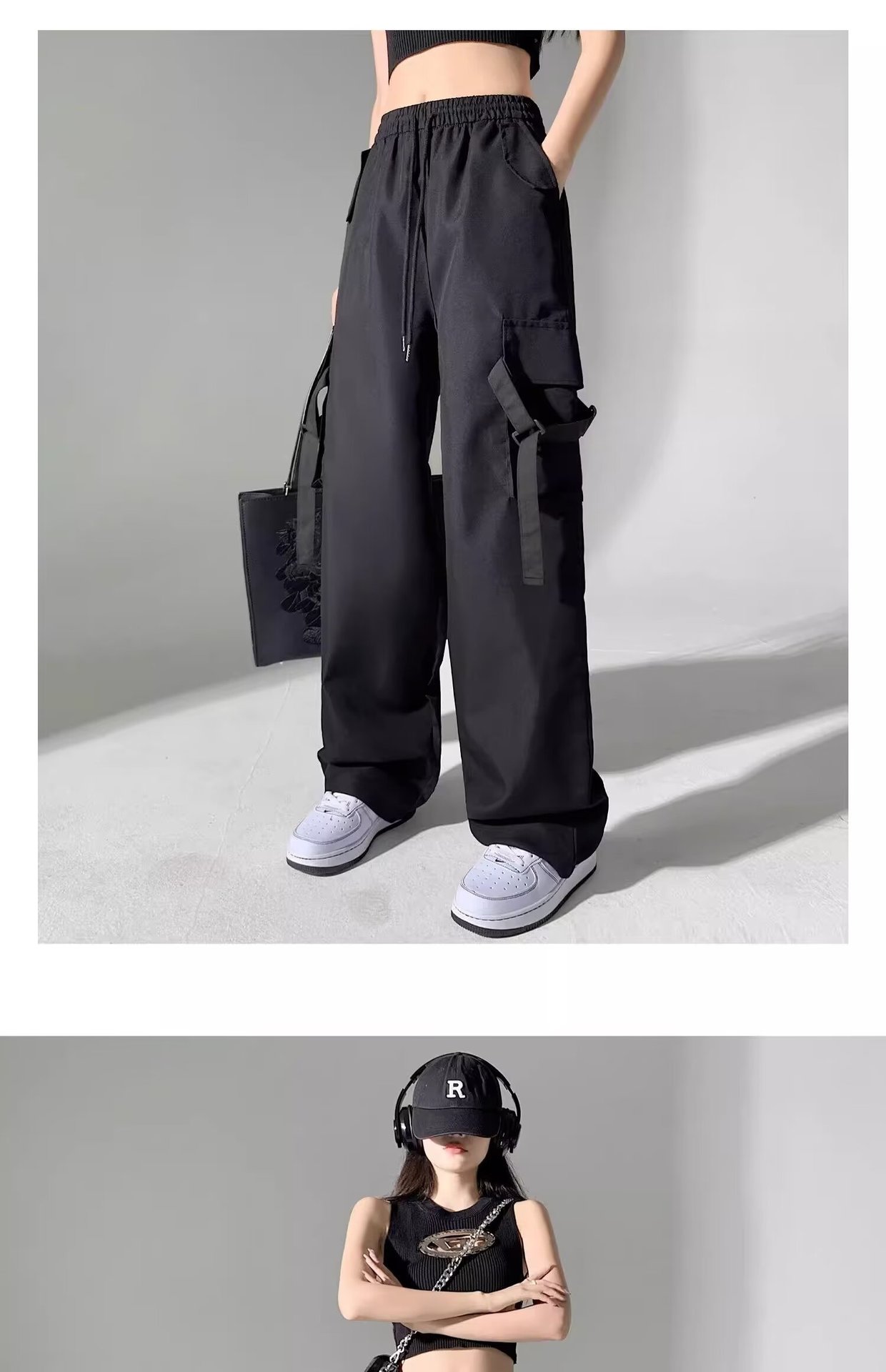 미국식 바지 여성 여름 2024 새로운 등산 스포츠 캐주얼 바지 멀티 포켓 작은 와이드 레그 바지스토어 가기