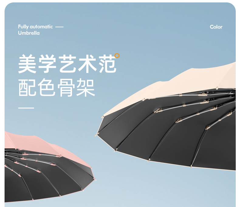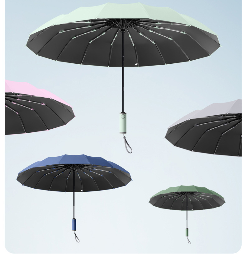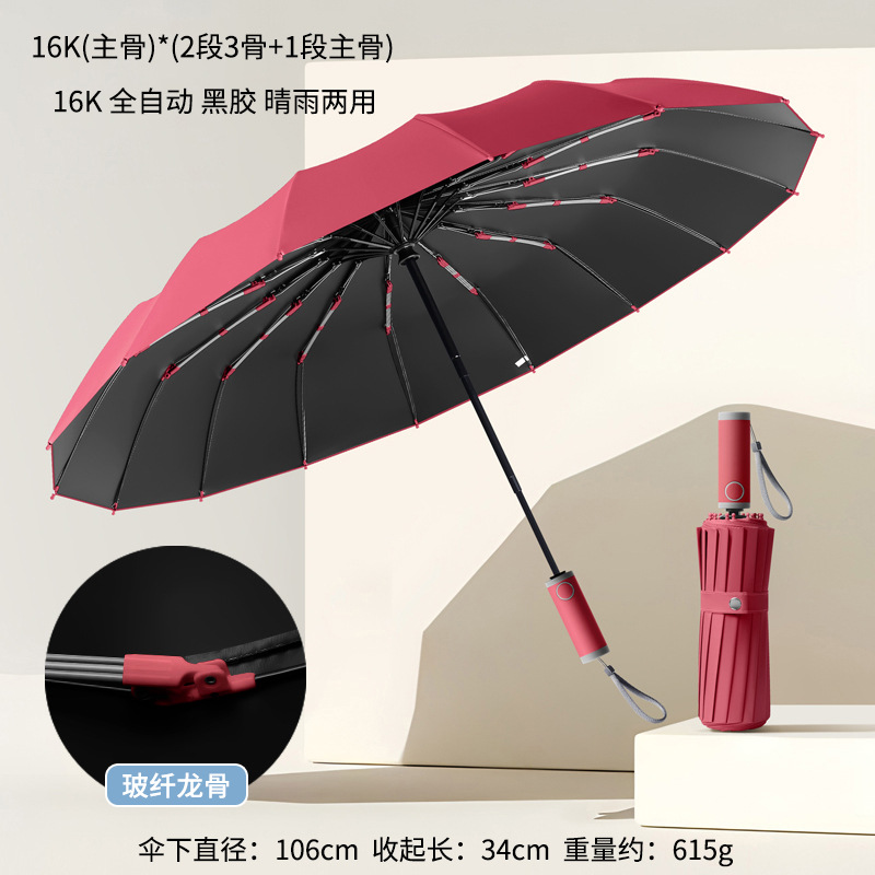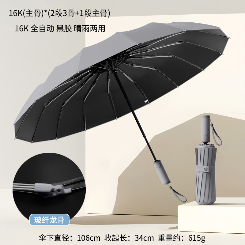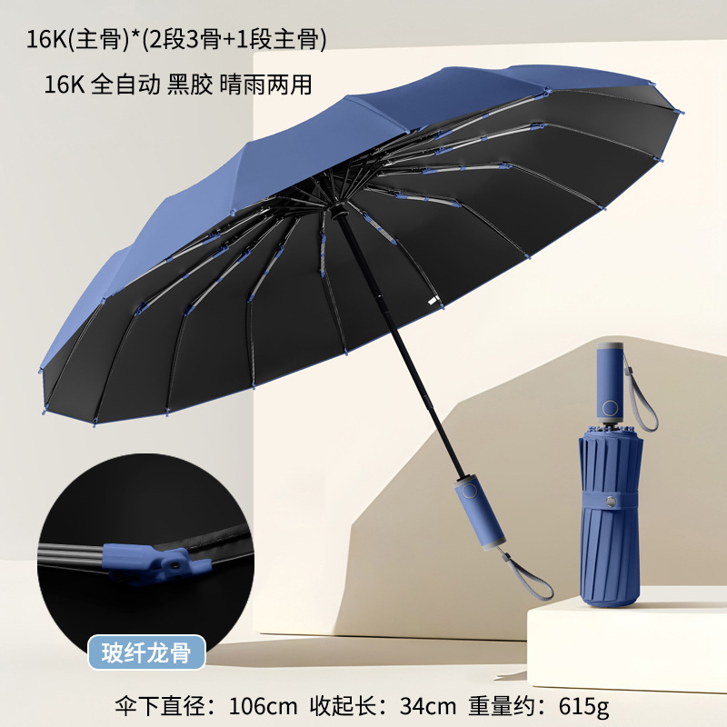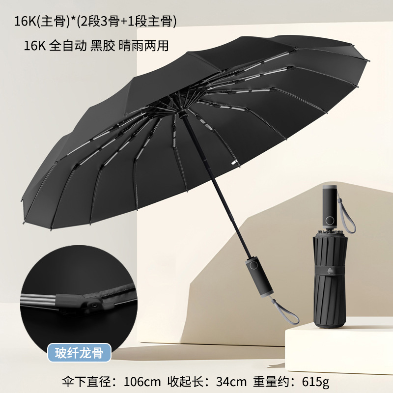 16본 112본 강화 및 두꺼운 남성용 비즈니스 단색 자외선 차단 우산 자동 접이식 양용 우산스토어 가기