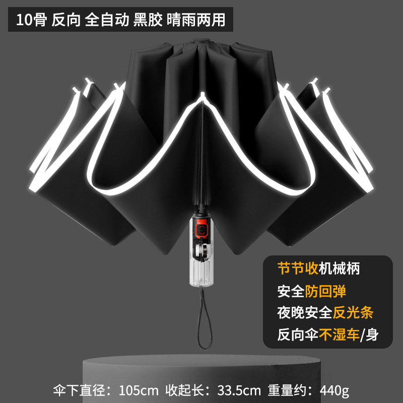 • [완전 자동 10k 리버스 비닐 링 버클 핸들 27 인치] 비즈니스 블랙