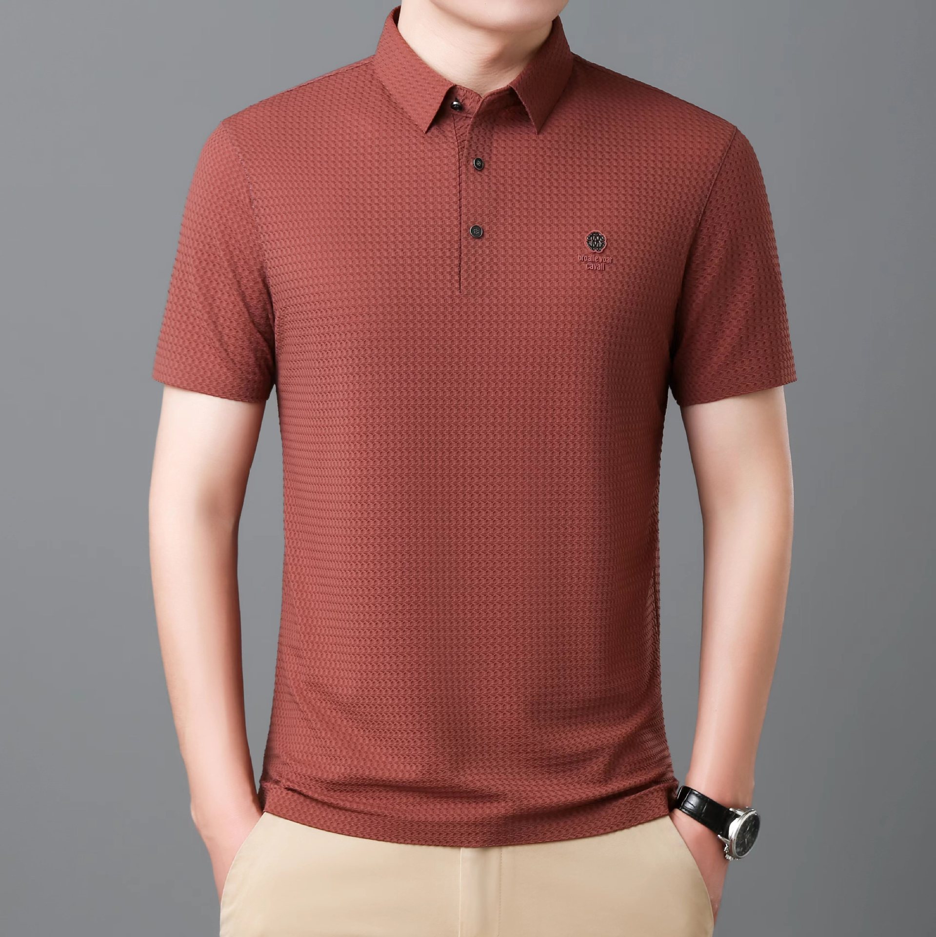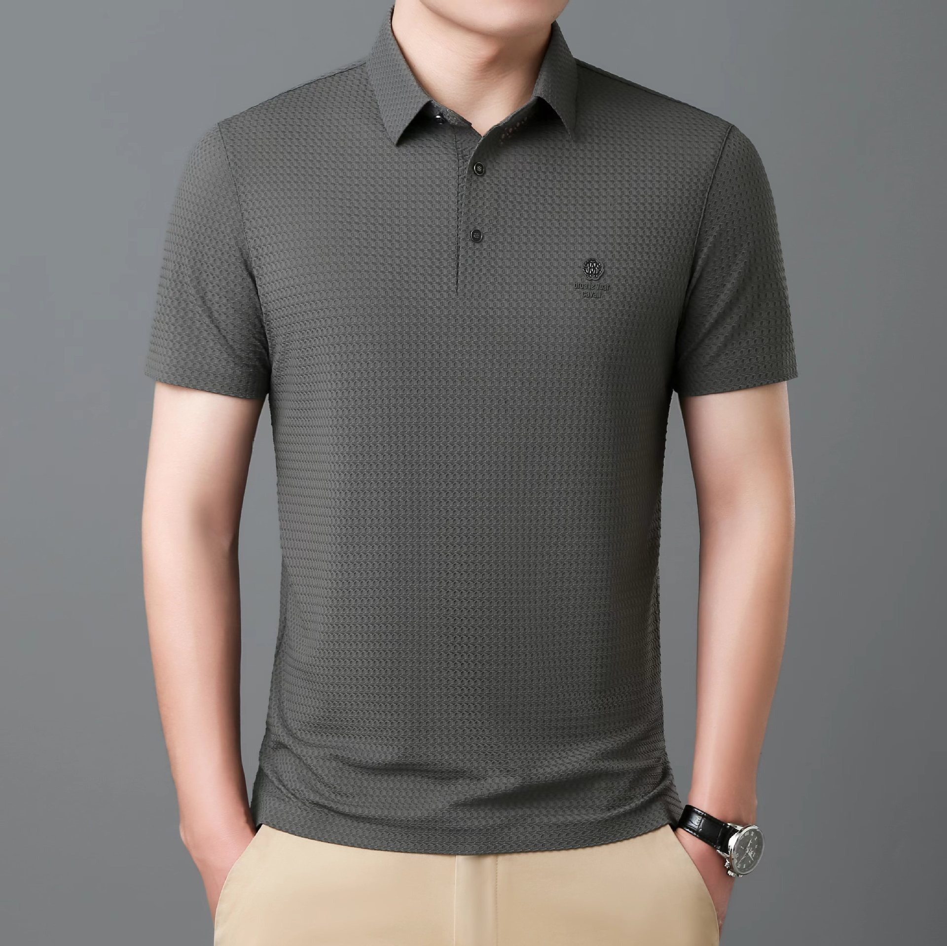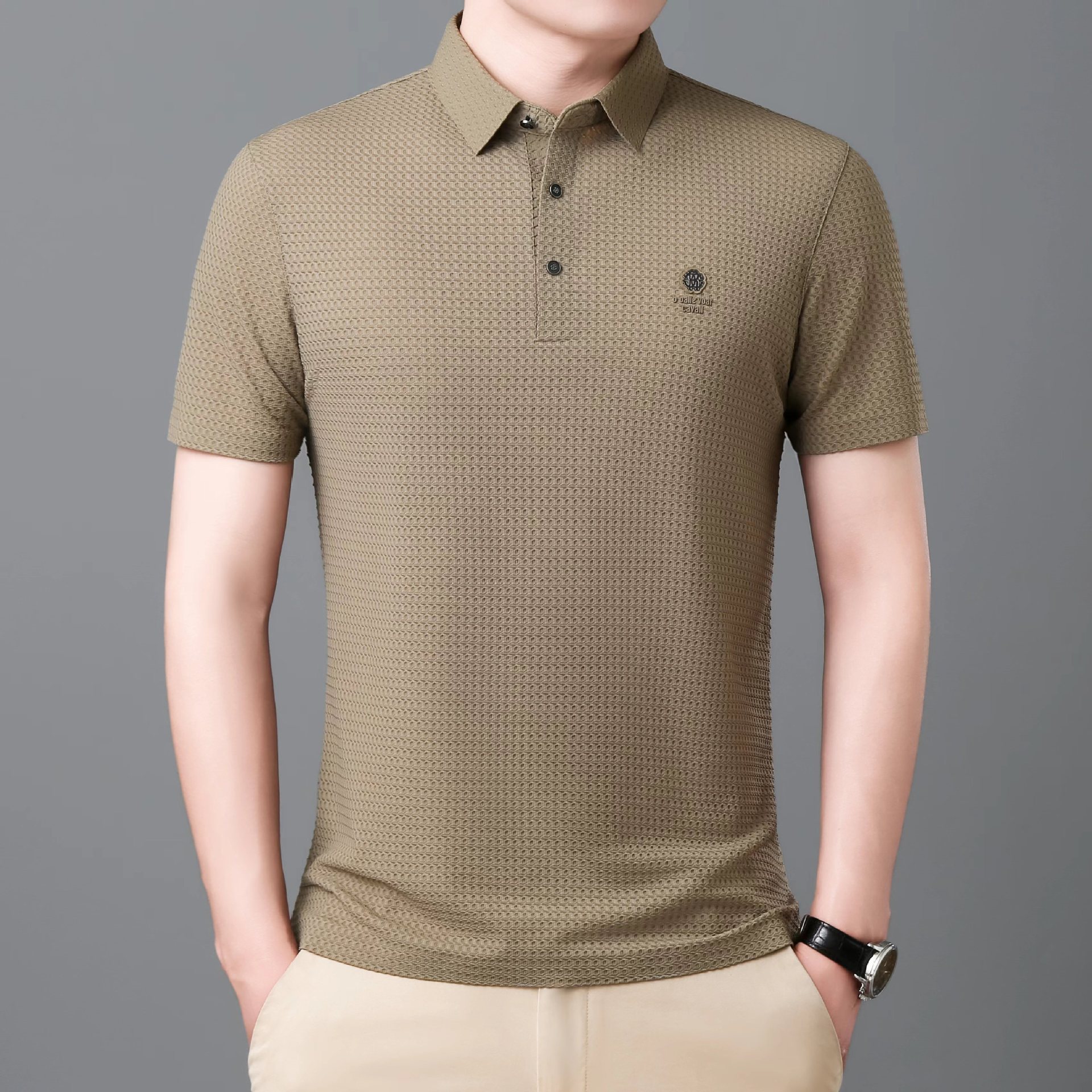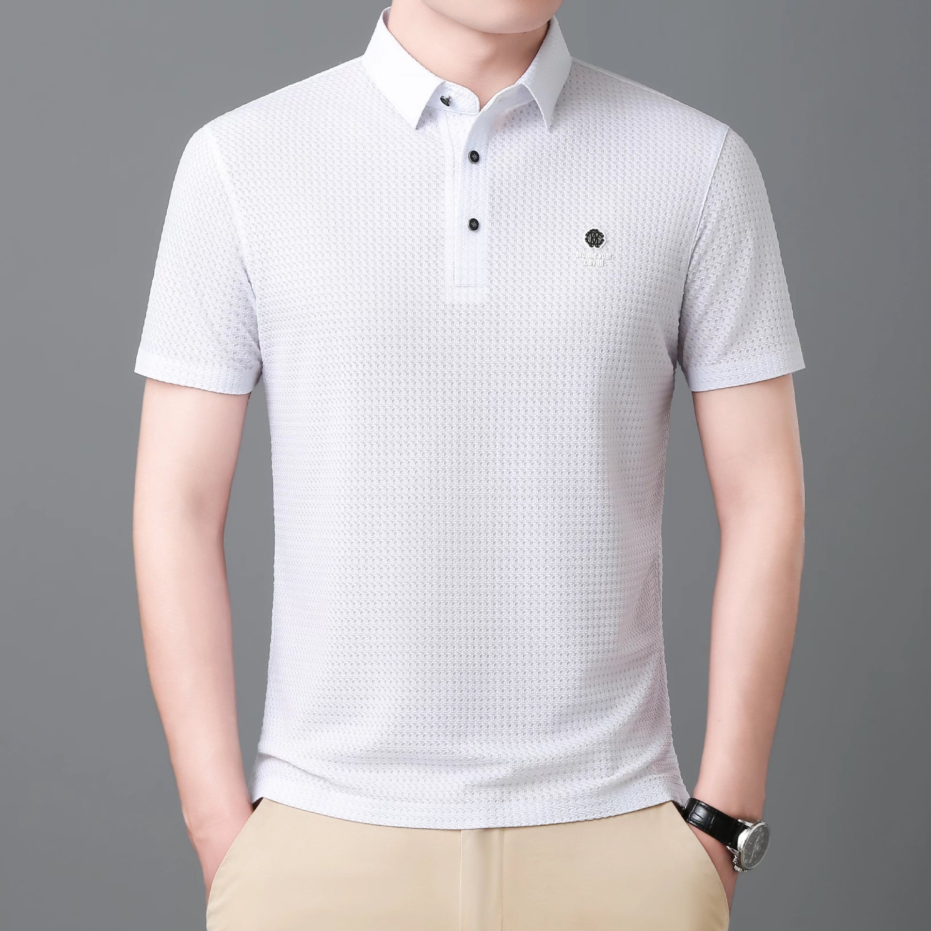 남자의 원활한 반팔 티셔츠 남성 비즈니스 캐주얼 셔츠 칼라 POLO 셔츠 2024 새로운 여름 헤어 세대