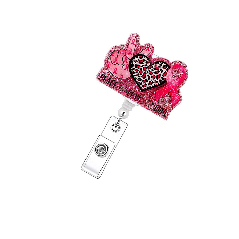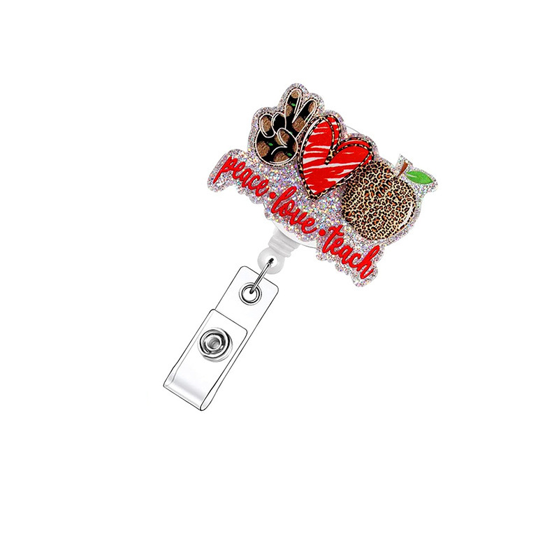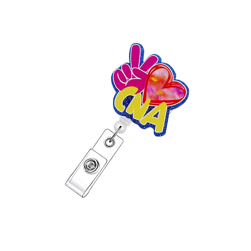 아크릴 반짝이 가루 사랑 손가락 플라스틱 배지 릴 학생 버스 단일 카드 인증서 개폐식 쉬운 풀 버클
