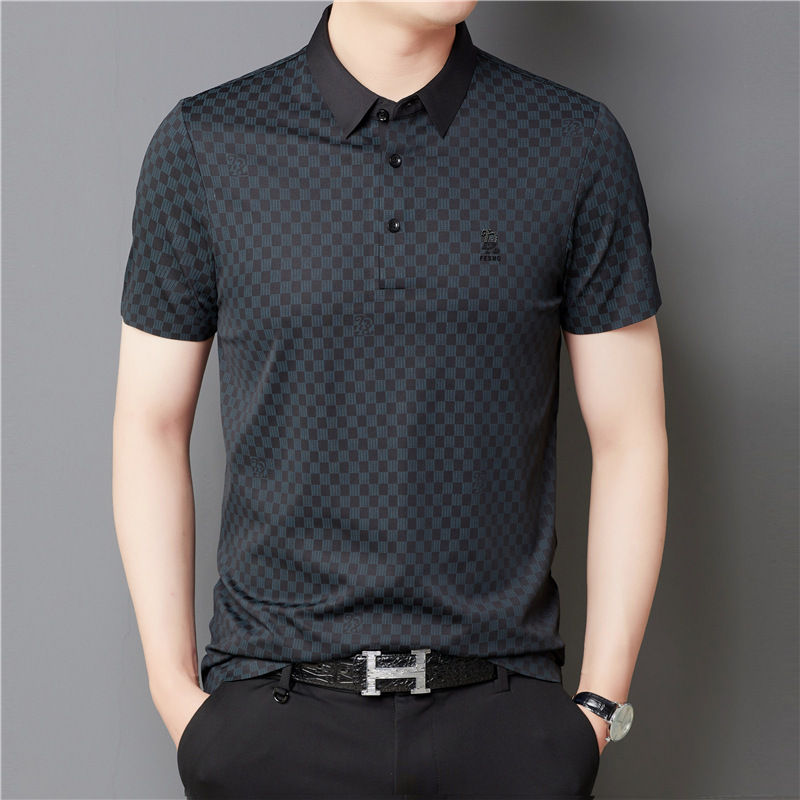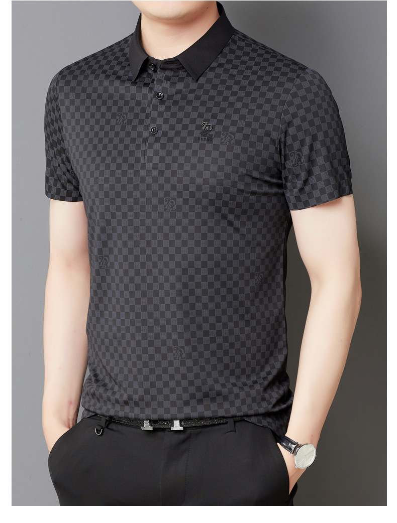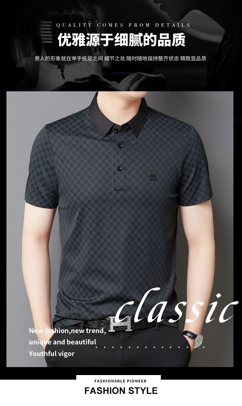夏季新款短袖男商务格子印花中年polo衫男时尚潮流休闲t恤男