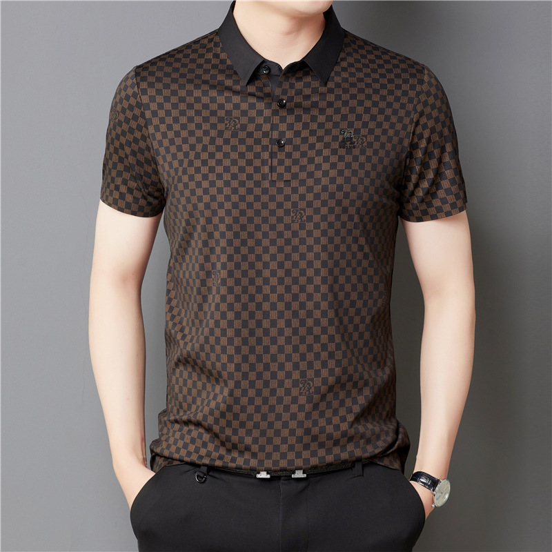 여름 새로운 반팔 남성 비즈니스 격자 무늬 인쇄 중년 폴로 셔츠 남성 패션 유행 캐주얼 티셔츠 남성
