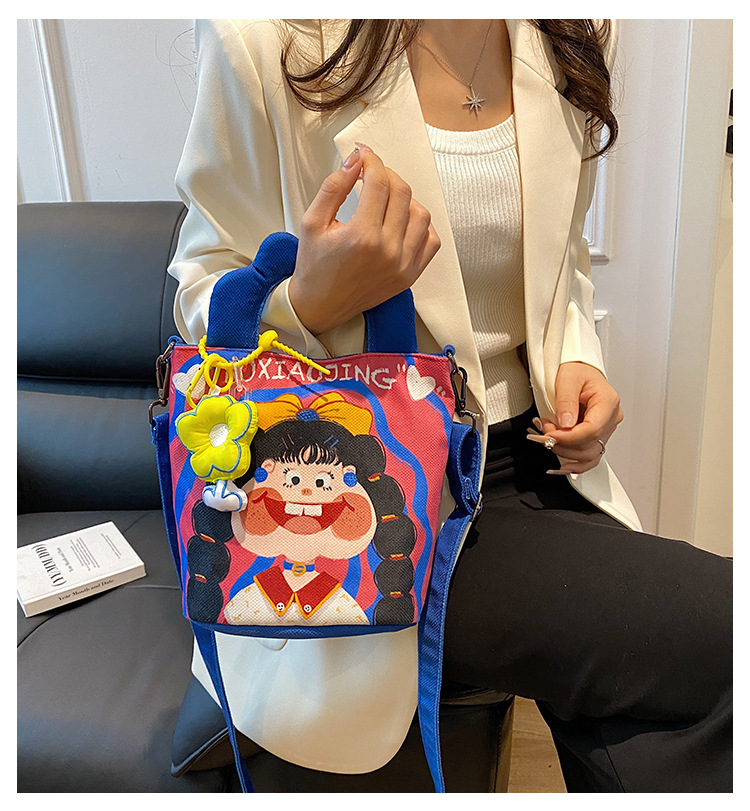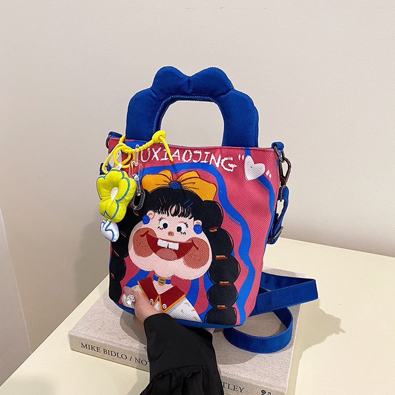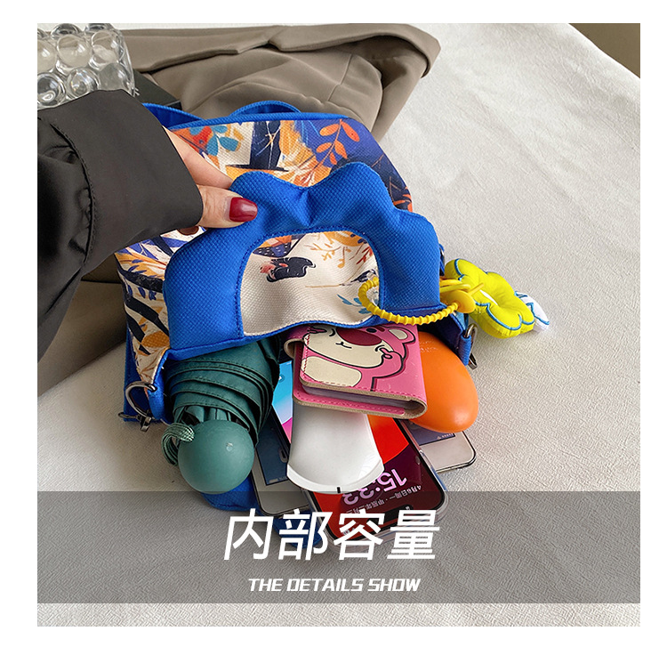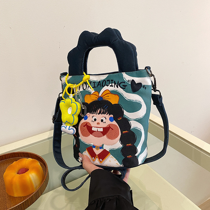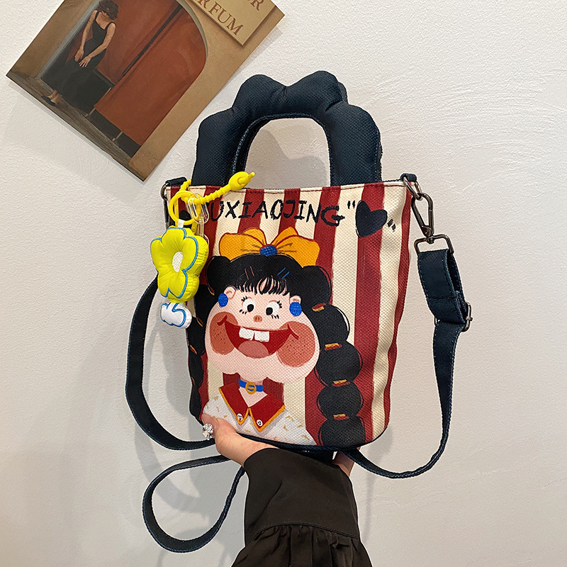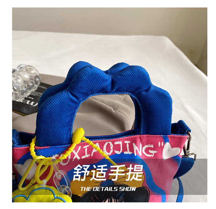 여자 가방 2024 새로운 낙서 시리즈 캔버스 인쇄 된 어깨 가방 구름 현장에있는 여자를위한 핸드백