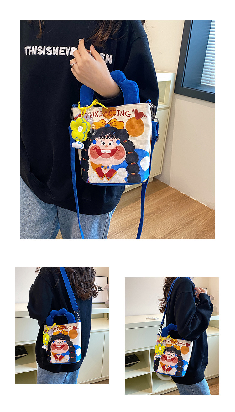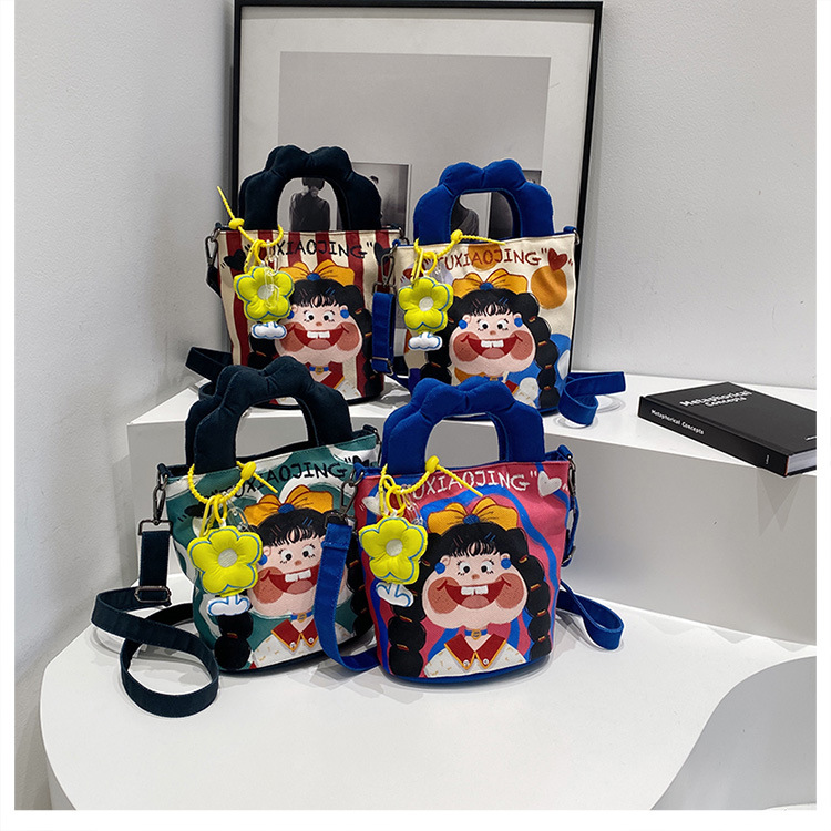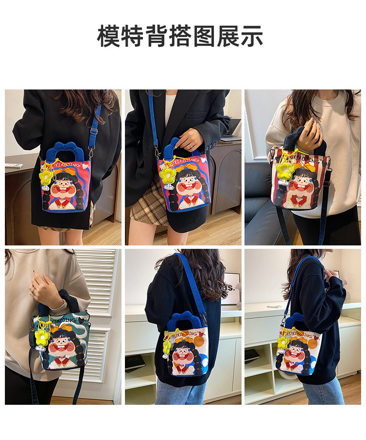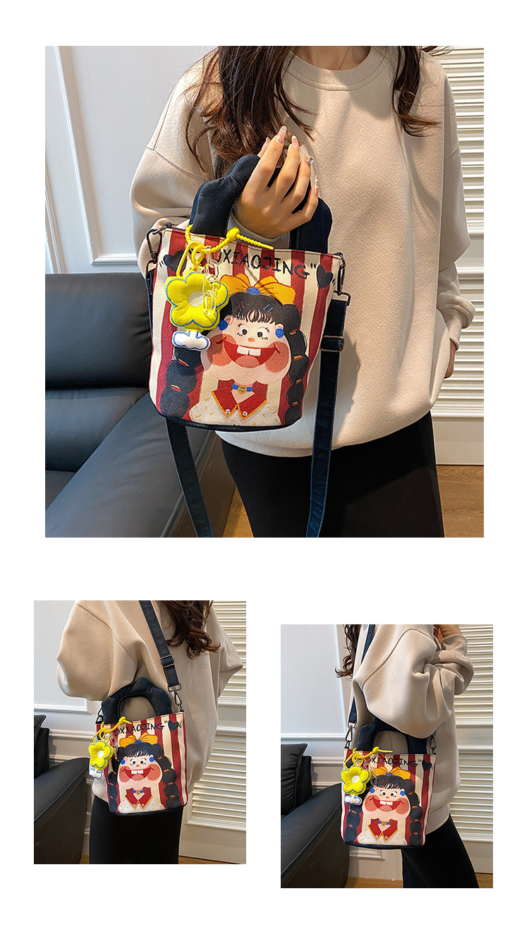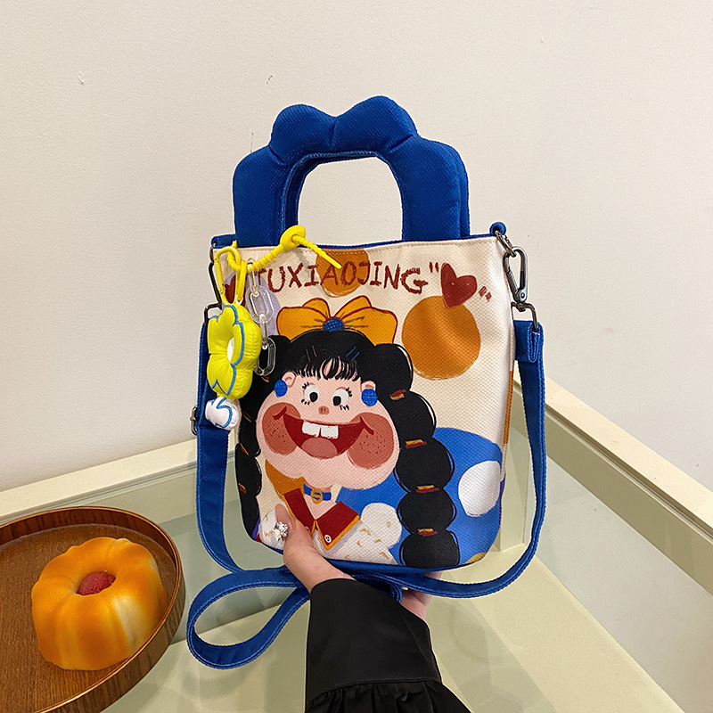 여자 가방 2024 새로운 낙서 시리즈 캔버스 인쇄 된 어깨 가방 구름 현장에있는 여자를위한 핸드백