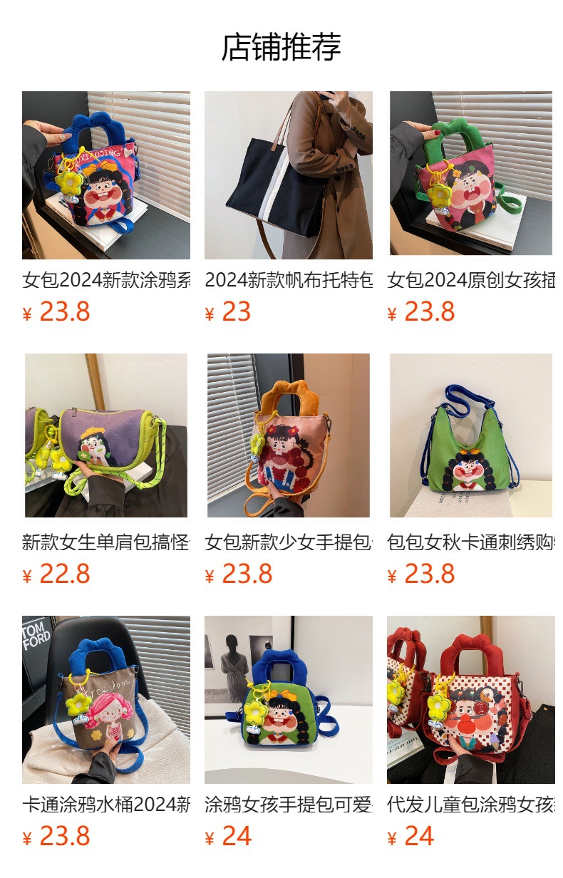 여자 가방 2024 새로운 낙서 시리즈 캔버스 인쇄 된 어깨 가방 구름 현장에있는 여자를위한 핸드백스토어 가기