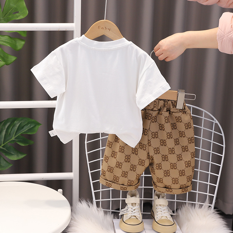 대외 무역 어린이 여름 세트 유행 2024 소년 소녀를위한 새로운 어린이 반팔 투피스 트렌디 옷스토어 가기