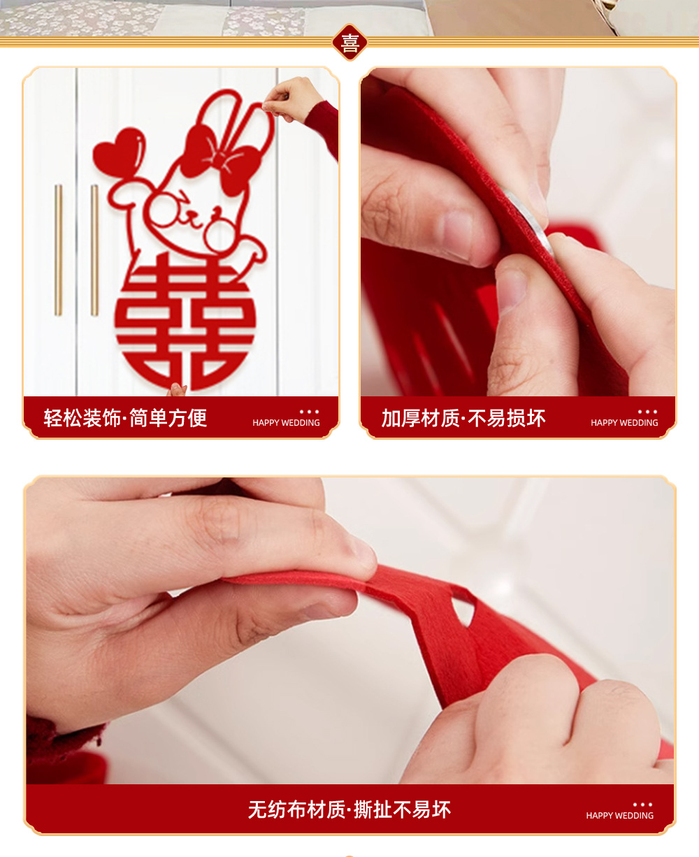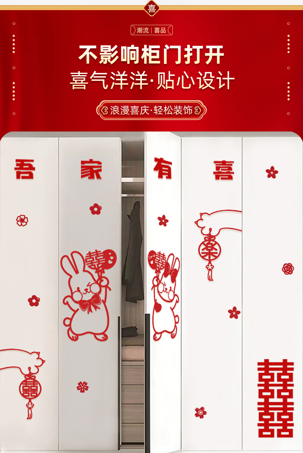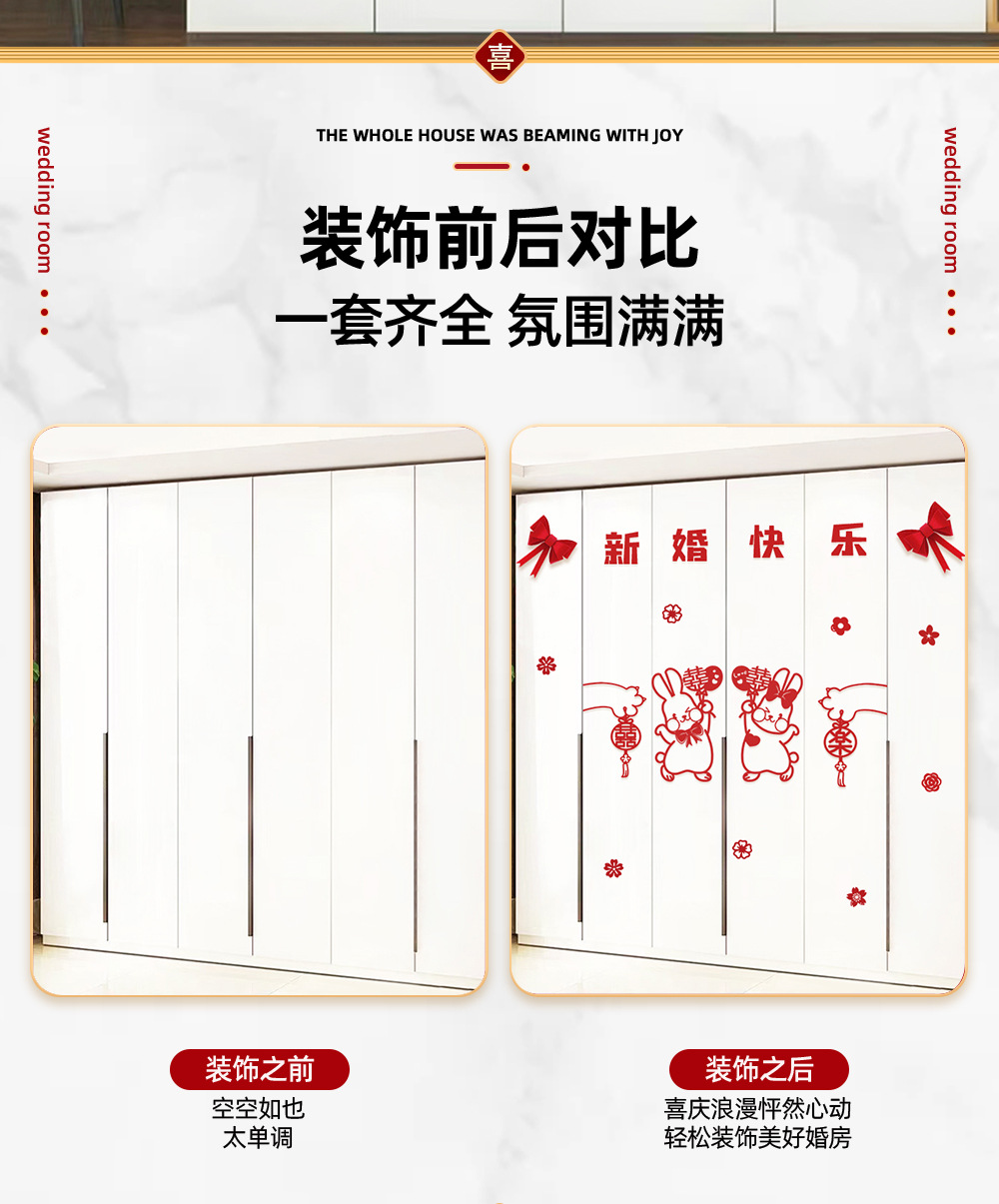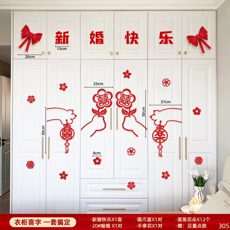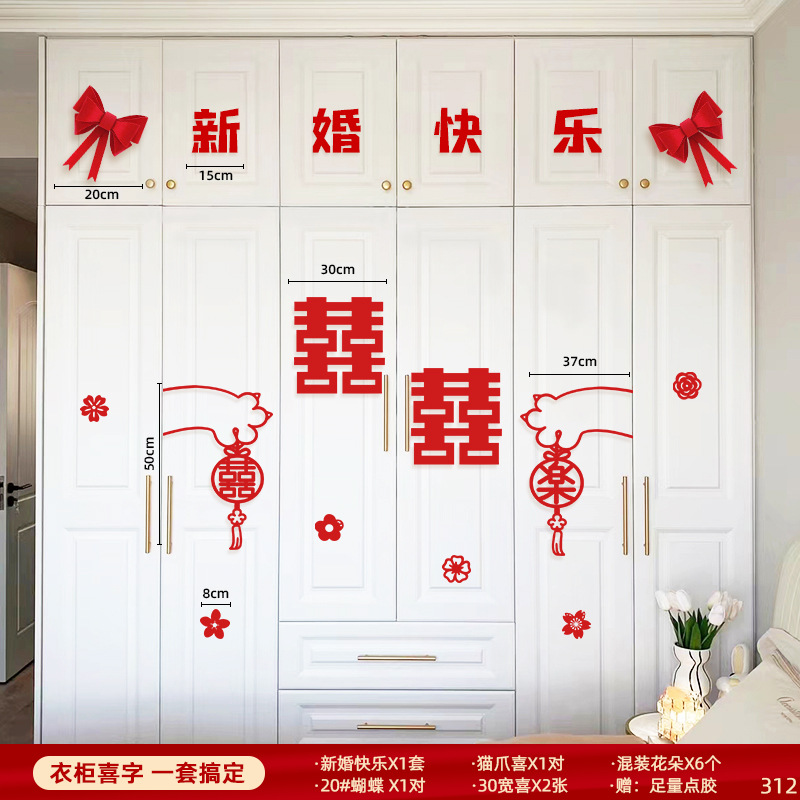 웨딩 룸 레이아웃 세트 옷장 장식 행복 한 단어 스티커 새 집 방 거실 침실 캐비닛 웨딩 용품스토어 가기