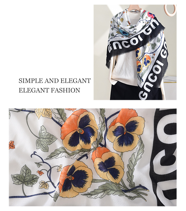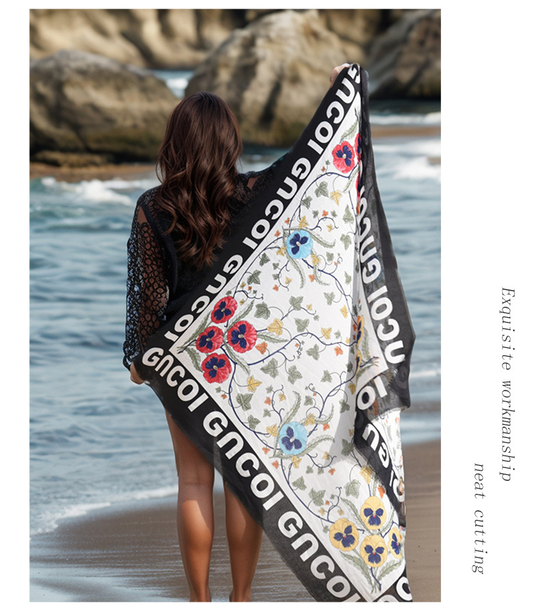 국경 간 뜨거운 판매 패션 편지 여성의 대형 스퀘어 스카프 여행 햇살 스카프 목도리 해변 스카프 여성