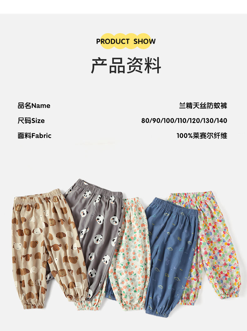 새로운 어린이 란징 텐셀 안티 모기 바지 여름 소녀 쿨 Lyocell 바지 한국식 만화 얇은 선 스크린 바지