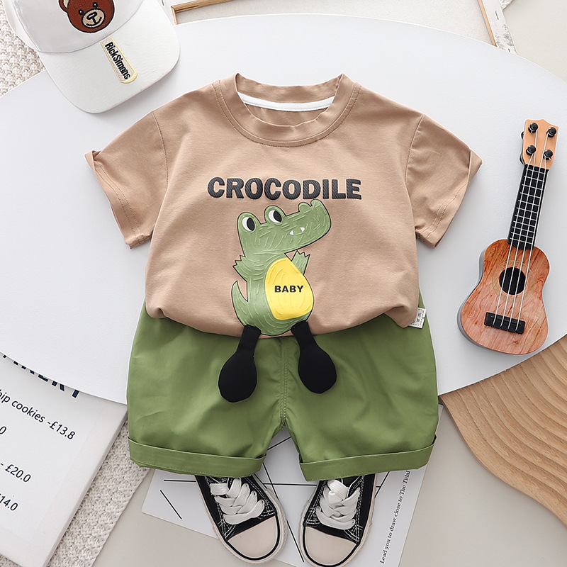 여름 아동복 세트 반팔 투피스 세트 어린이 1-2-3 세 만화 어린이 티셔츠 서양식 소년 여름 패션