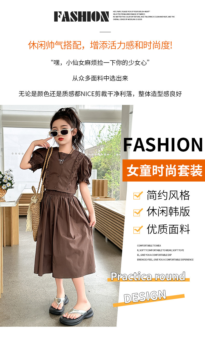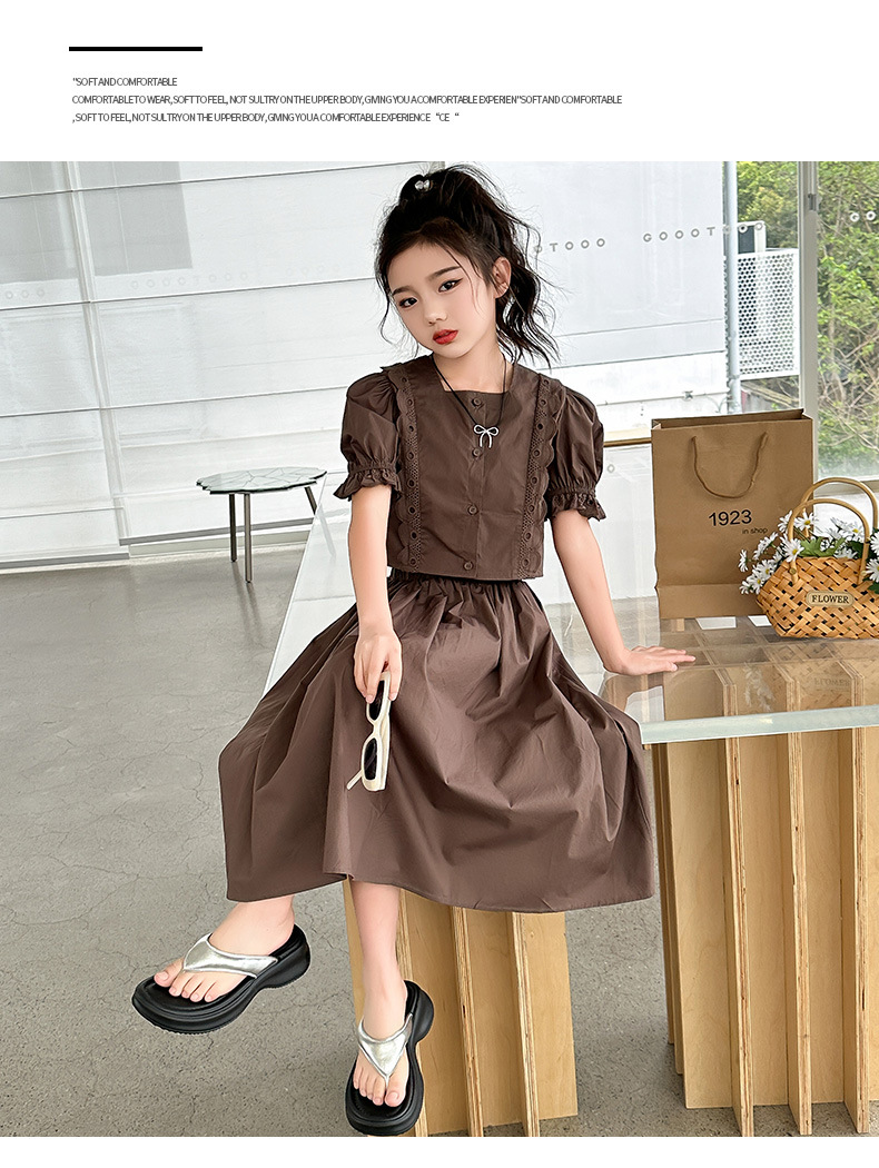 소녀 롱 스커트 세트 여름 하이 엔드 퍼프 슬리브 스커트 2024 새로운 스타일 원피스 오버 더 무릎 미드 빅 어린이 여름 원피스스토어 가기