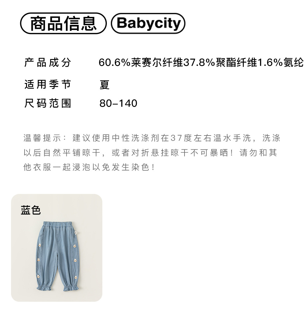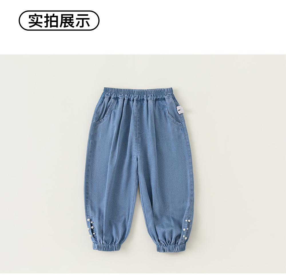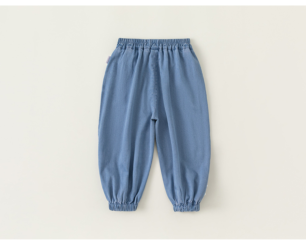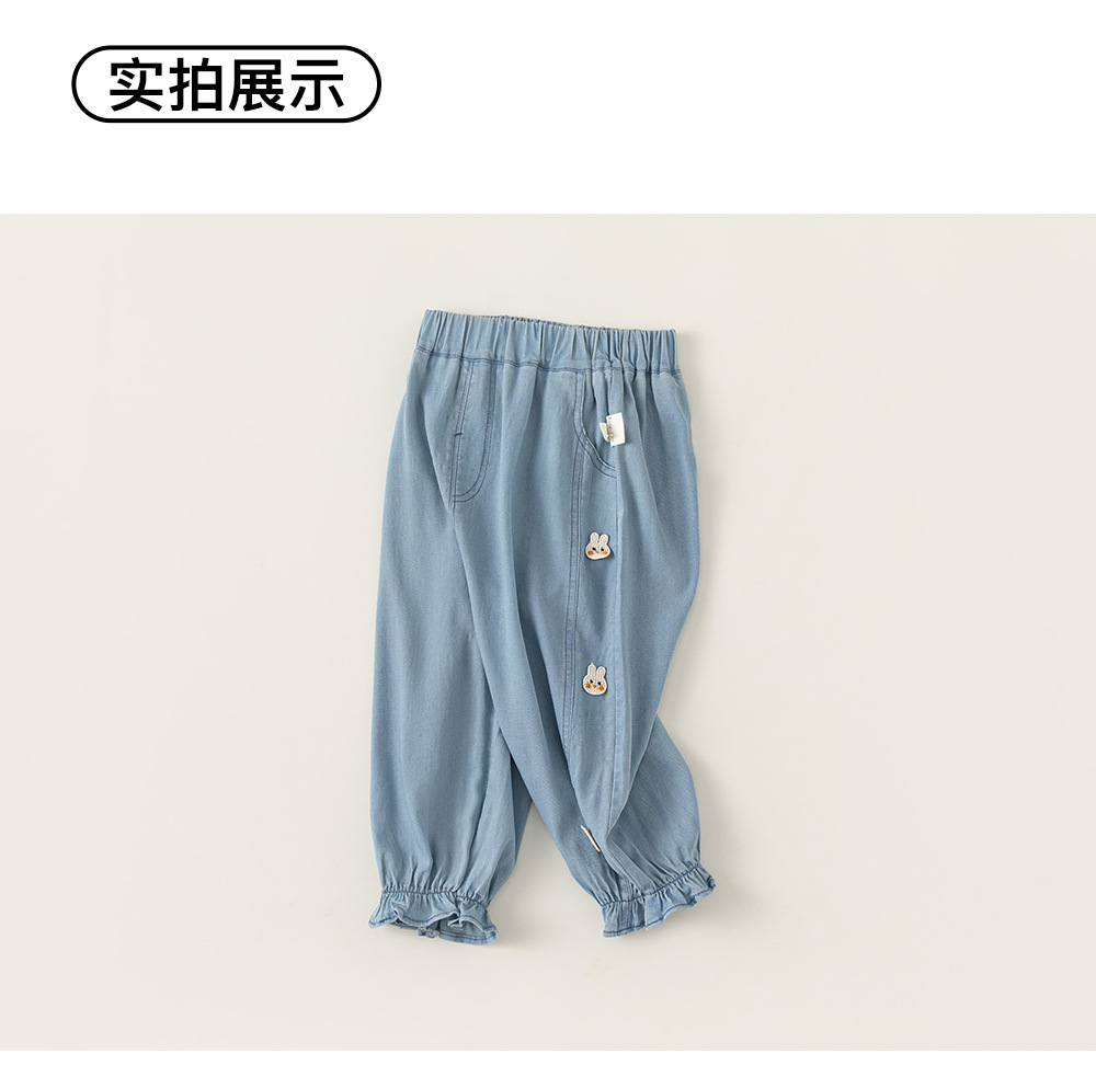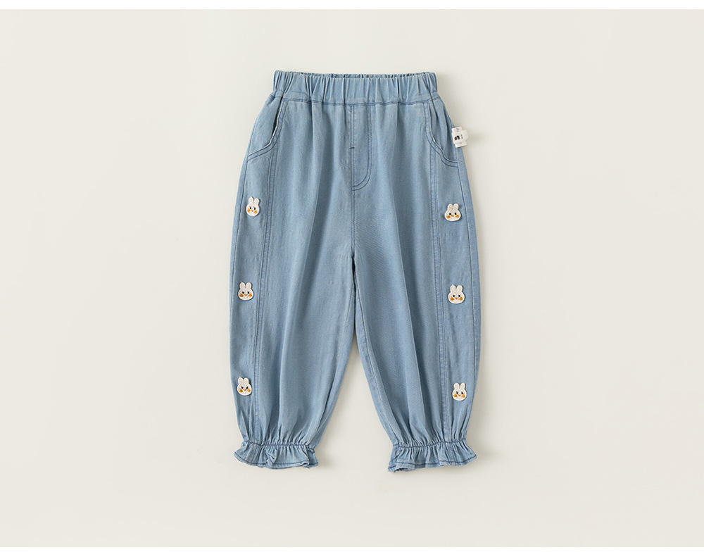 Bangxuan 여름 아기 바지 한국 스타일 어린이 토끼 수 놓은 꽃다발 바지 소녀 청바지 XK24022
