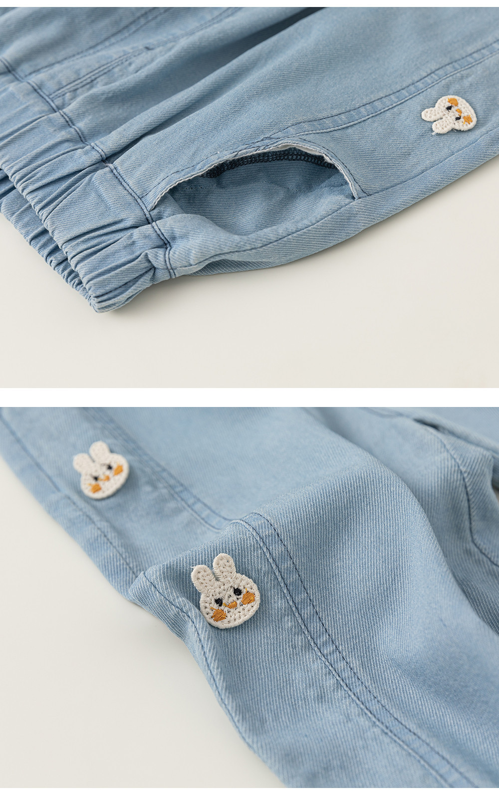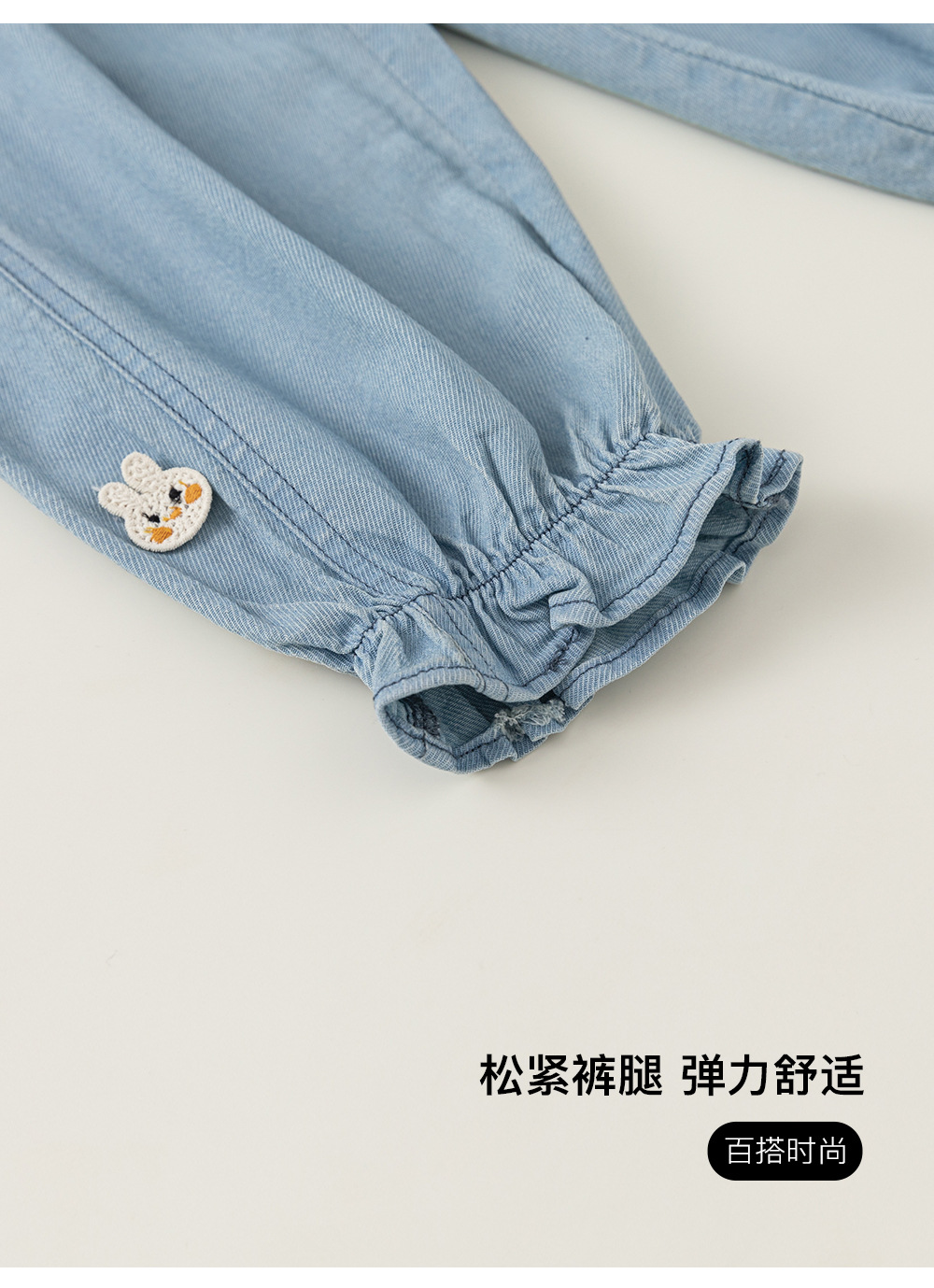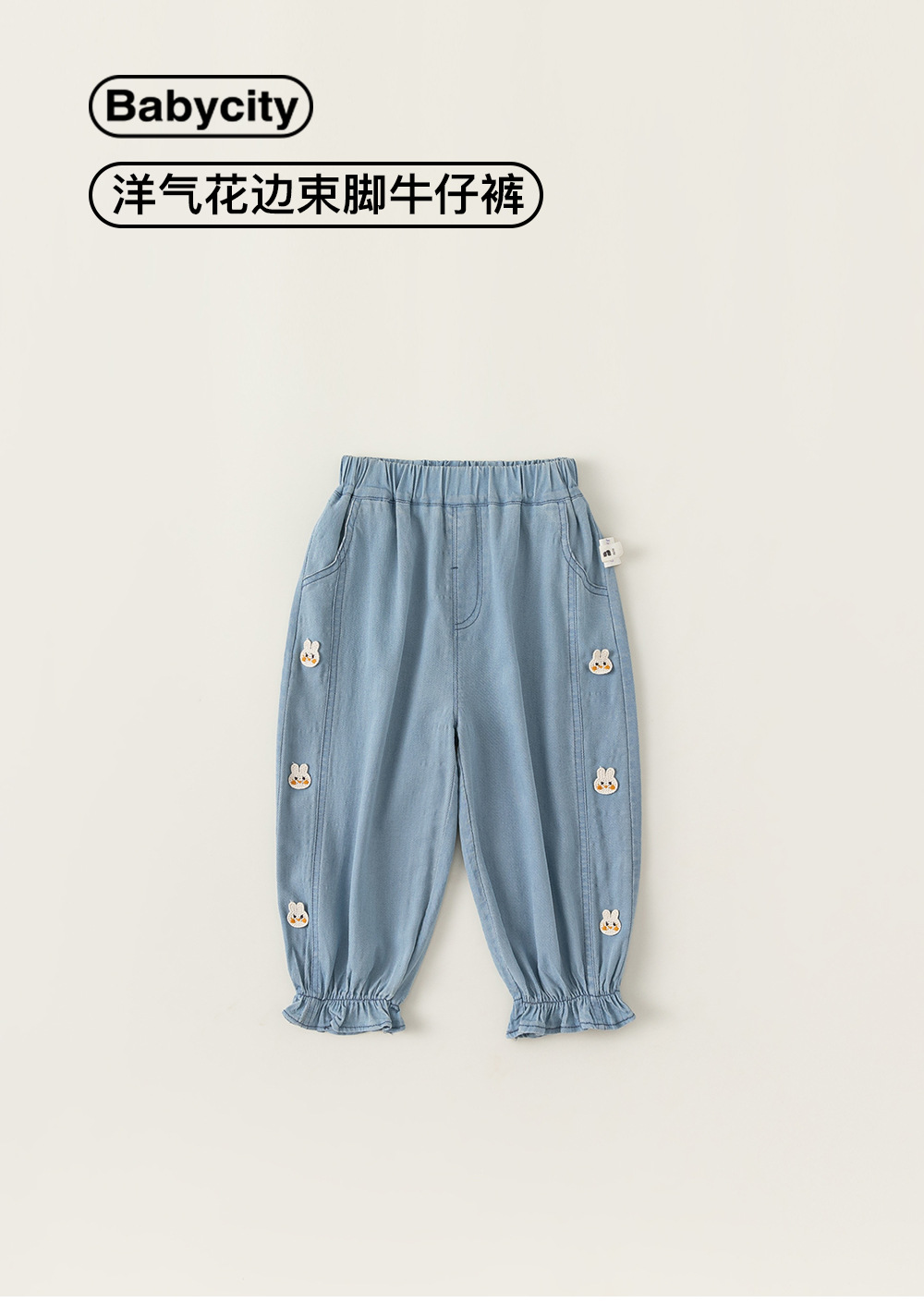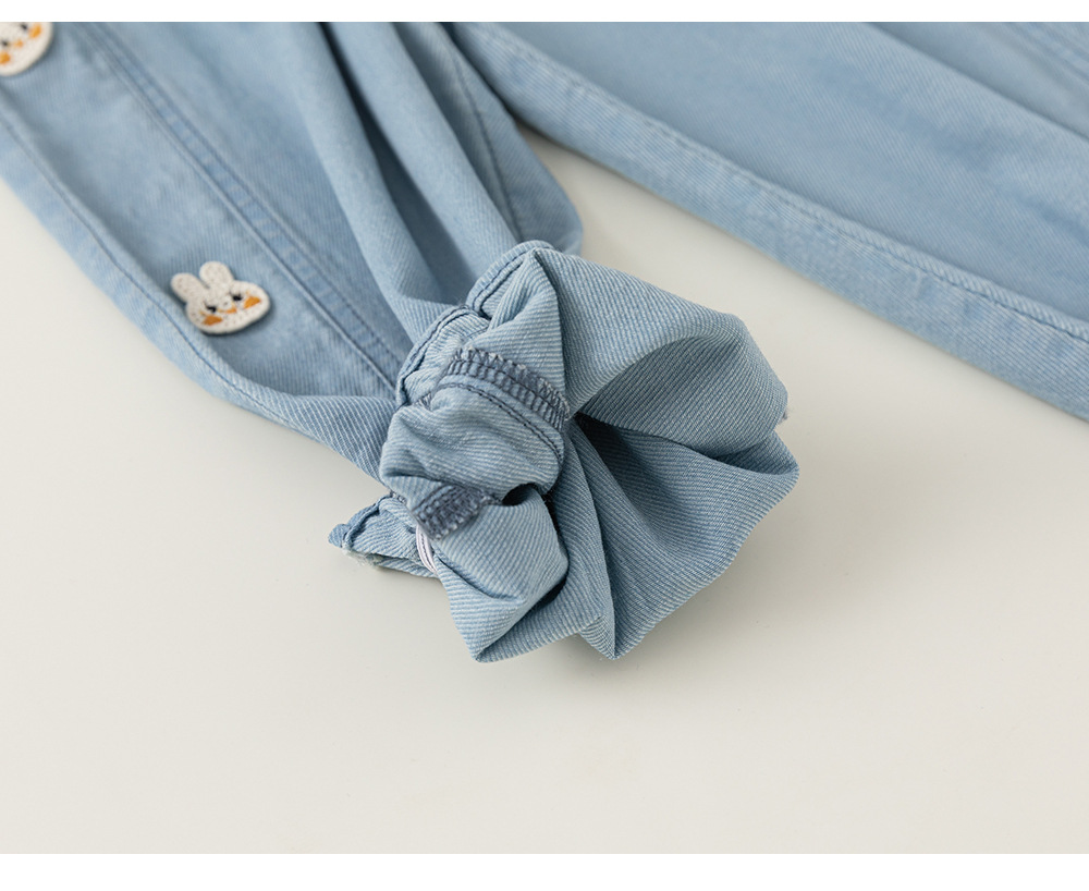 Bangxuan 여름 아기 바지 한국 스타일 어린이 토끼 수 놓은 꽃다발 바지 소녀 청바지 XK24022스토어 가기