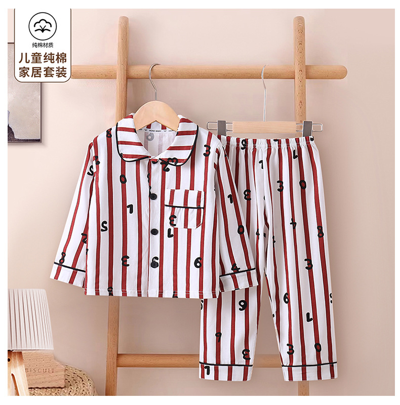 아동복 봄, 가을 중대형 아동 라펠 잠옷, 가정복, 순면 A형 긴팔 양복, 트렌디하고 귀여운 스타일