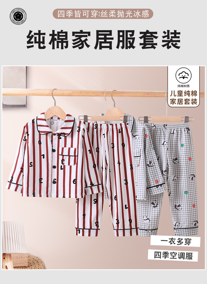 아동복 봄, 가을 중대형 아동 라펠 잠옷, 가정복, 순면 A형 긴팔 양복, 트렌디하고 귀여운 스타일스토어 가기