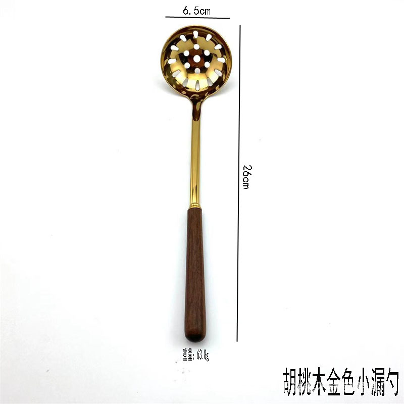 • 대나무 손잡이가 있는 스테인레스 스틸 골드 7, 3cm 소쿠리 스푼