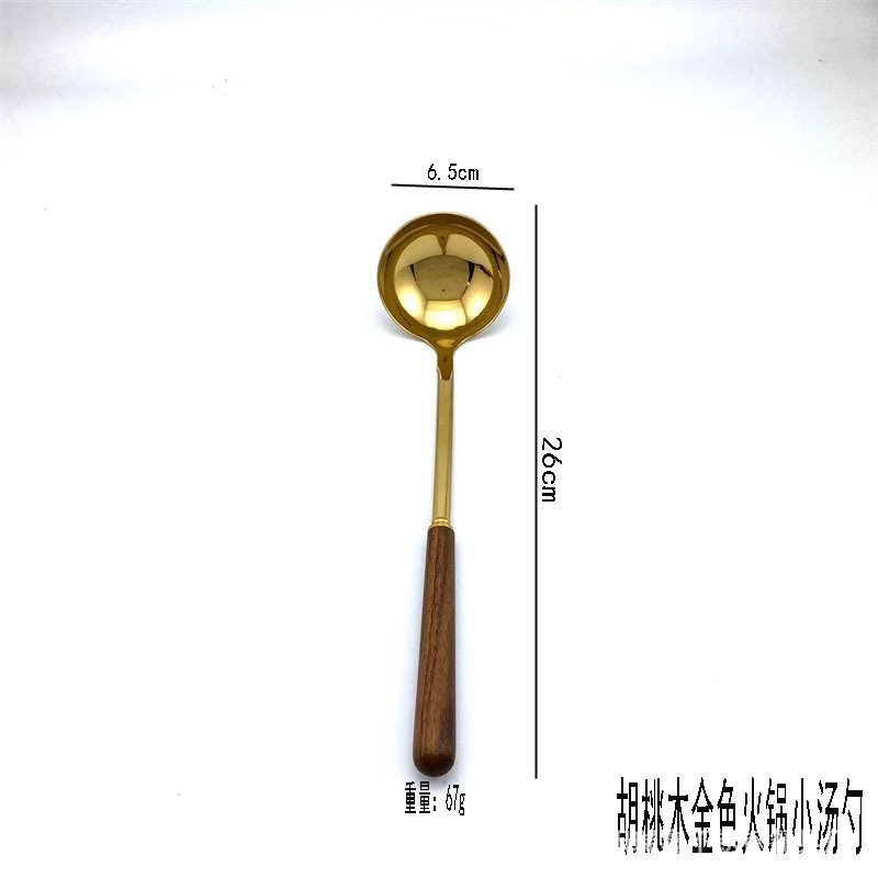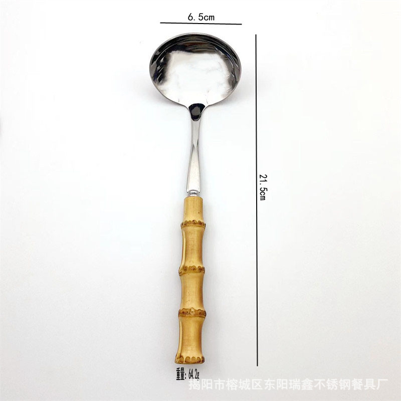 스테인레스 스틸 황금 작은 수프 스푼 작은 색소 대나무 손잡이 뜨거운 냄비 숟가락 주방 가제트 호텔 레스토랑 공공 숟가락
